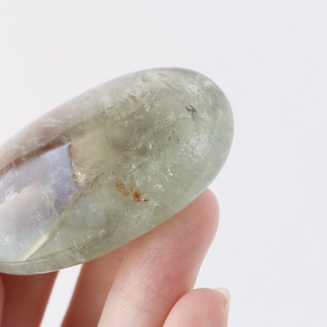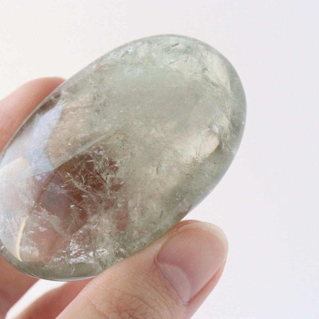 透明な美しい結晶を手に取り眺めると淡いグリーンの輝きが疲れてしまったこころを優しく包み、リラックスさせてくれます。