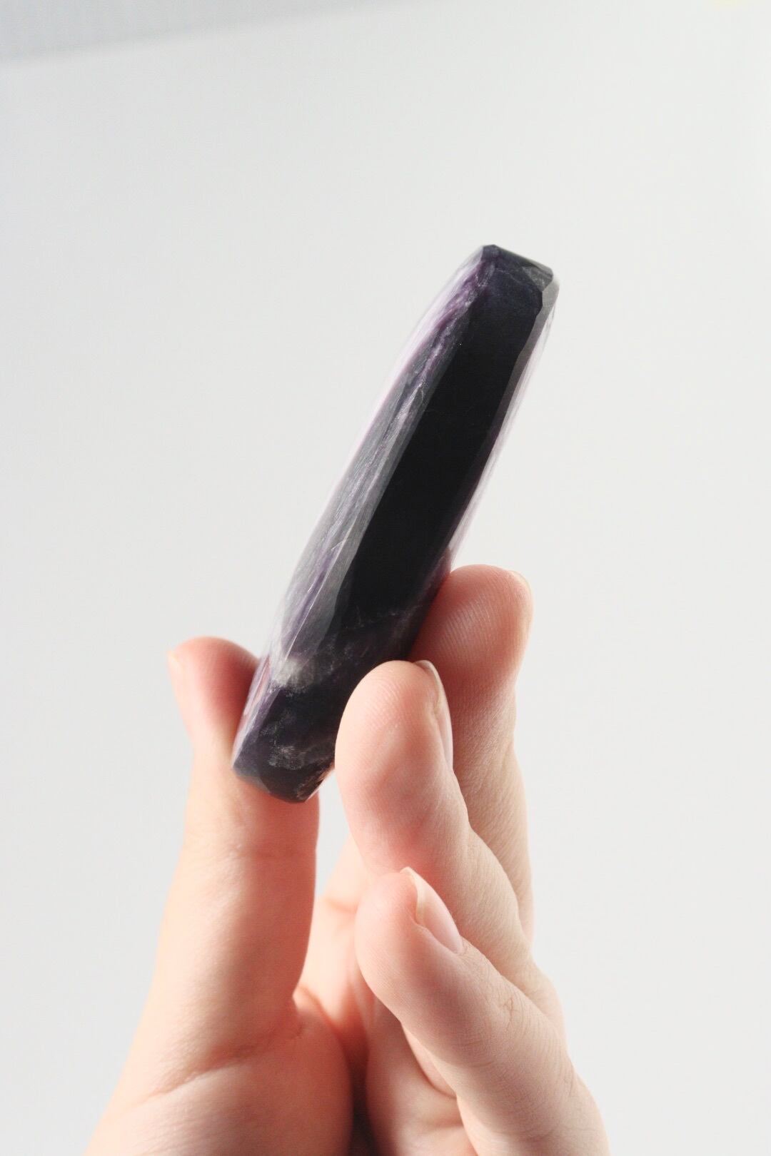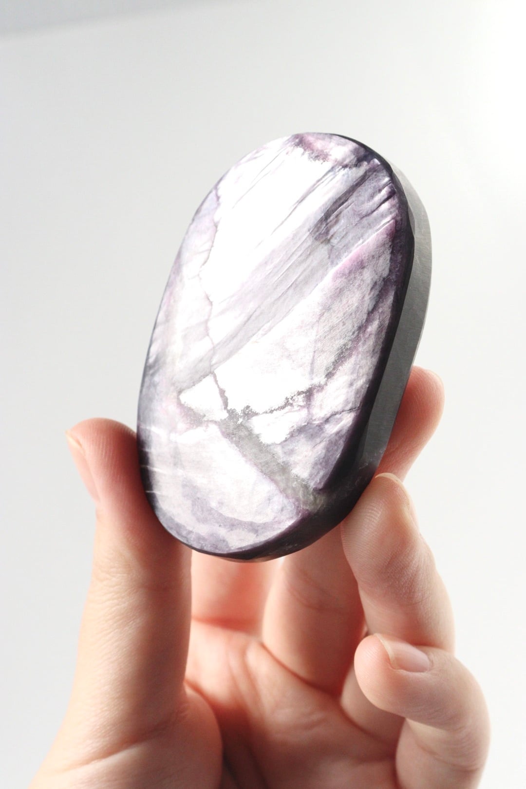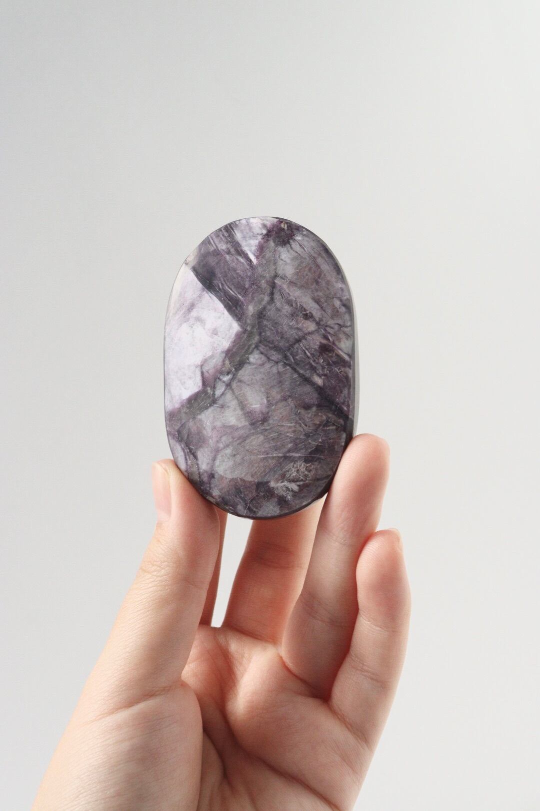 夜の静けさを切り裂く稲妻のような、パープルマイカの握り石。