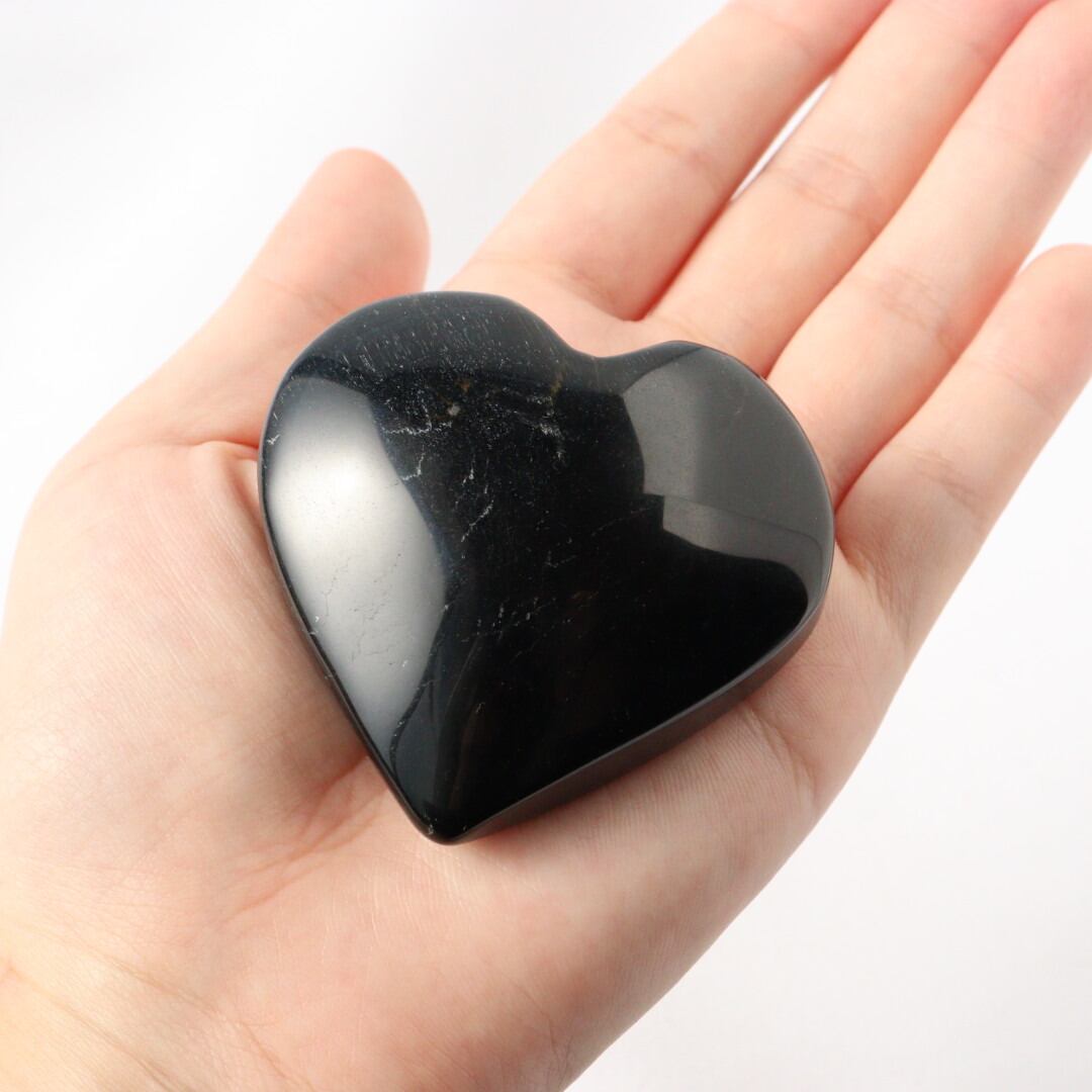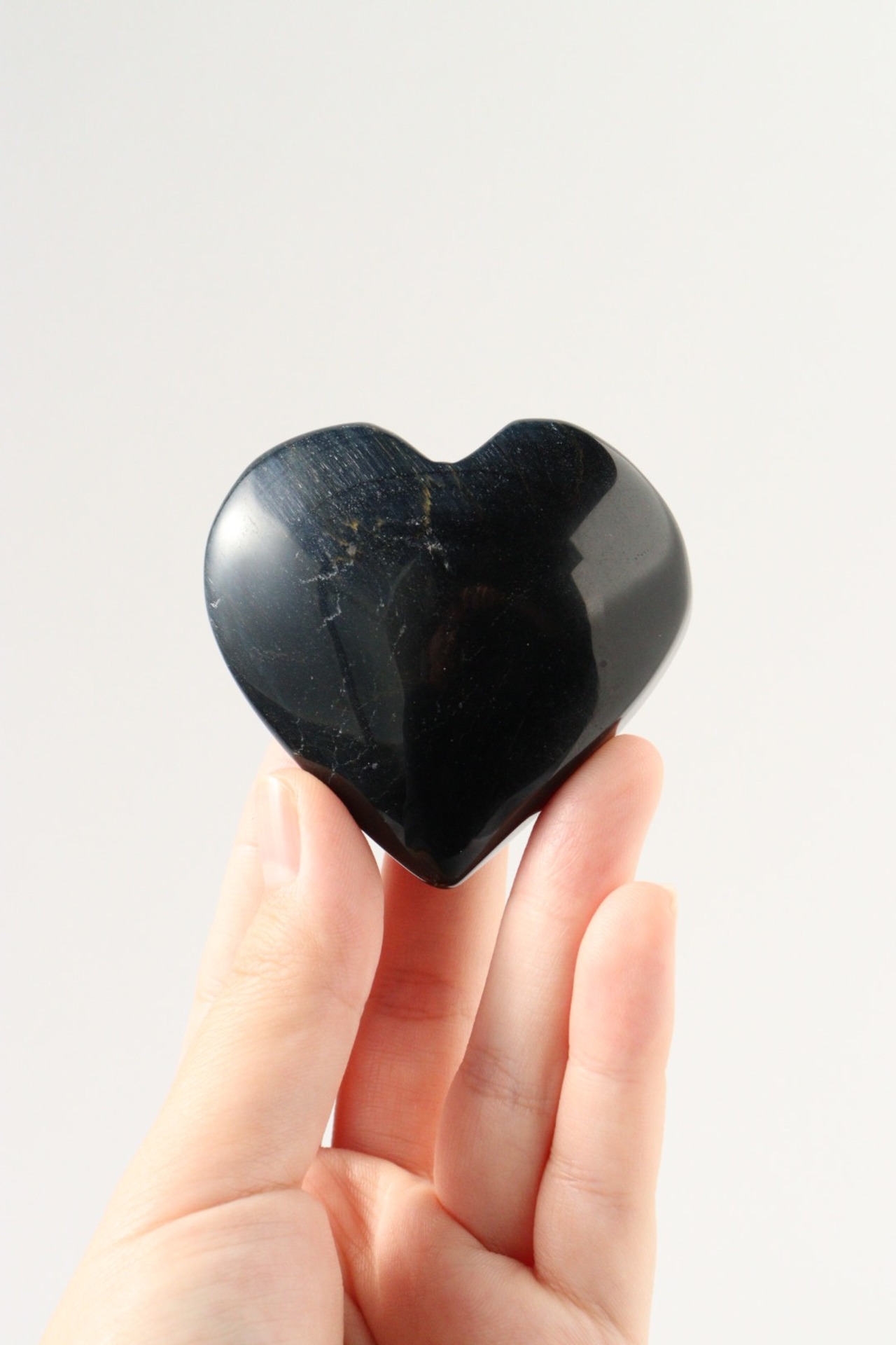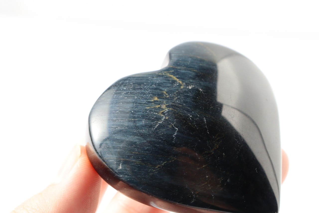 漆黒に浮かび上がるブルーのシラーが美しいブルータイガーアイのハート。