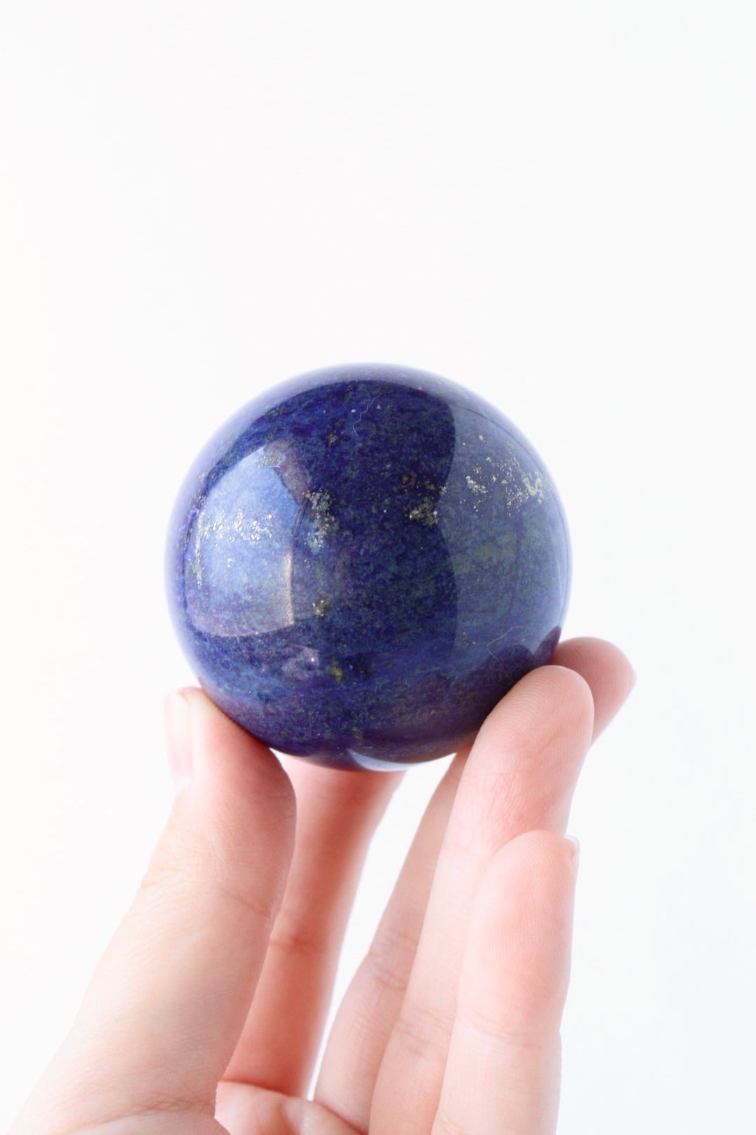 静けさの中に壮大な美しさを秘めた、神秘的なラピスラズリのスフィアです。