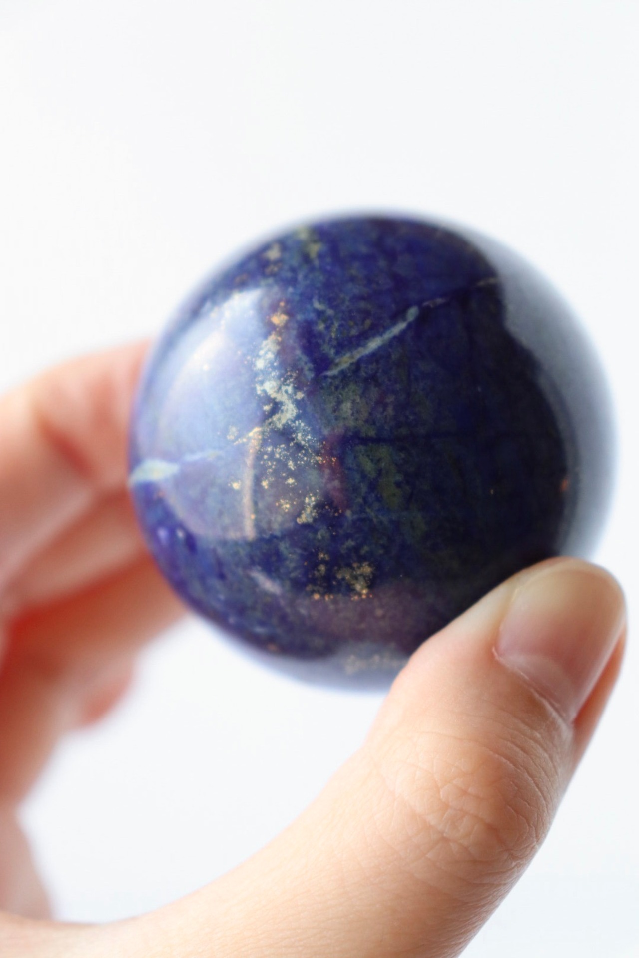 深く濃いブルーと柔らかなブルーが複雑に溶け合ったような、ラピスラズリのスフィア。