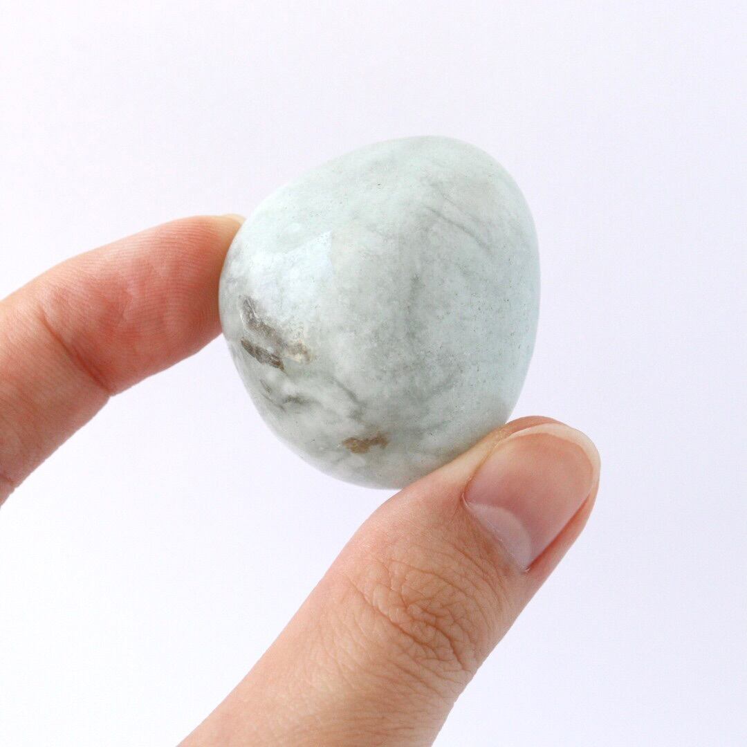 こちらは、グレイッシュなスカイブルーのアクアマリン。大きめのタンブルです。