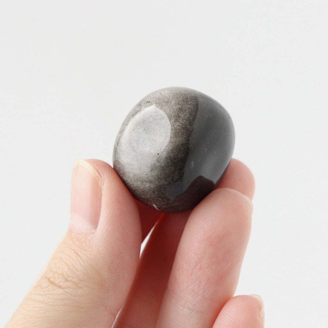 月の光のような優しいシラーを内包したシルバーオブシディアンのタンブル。