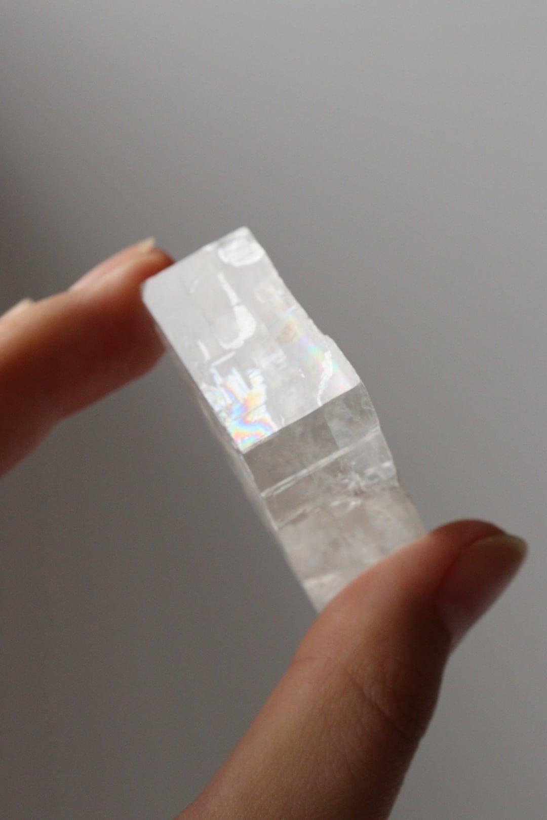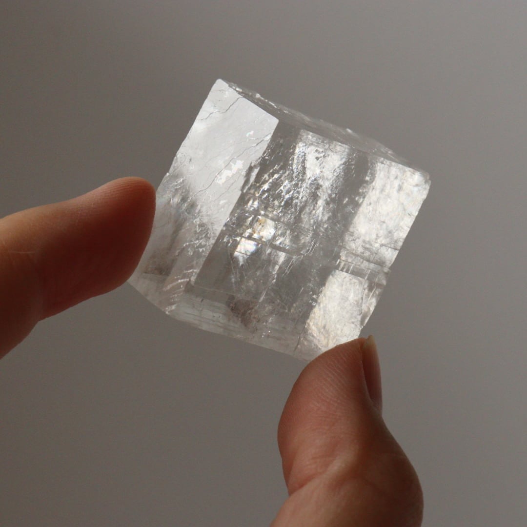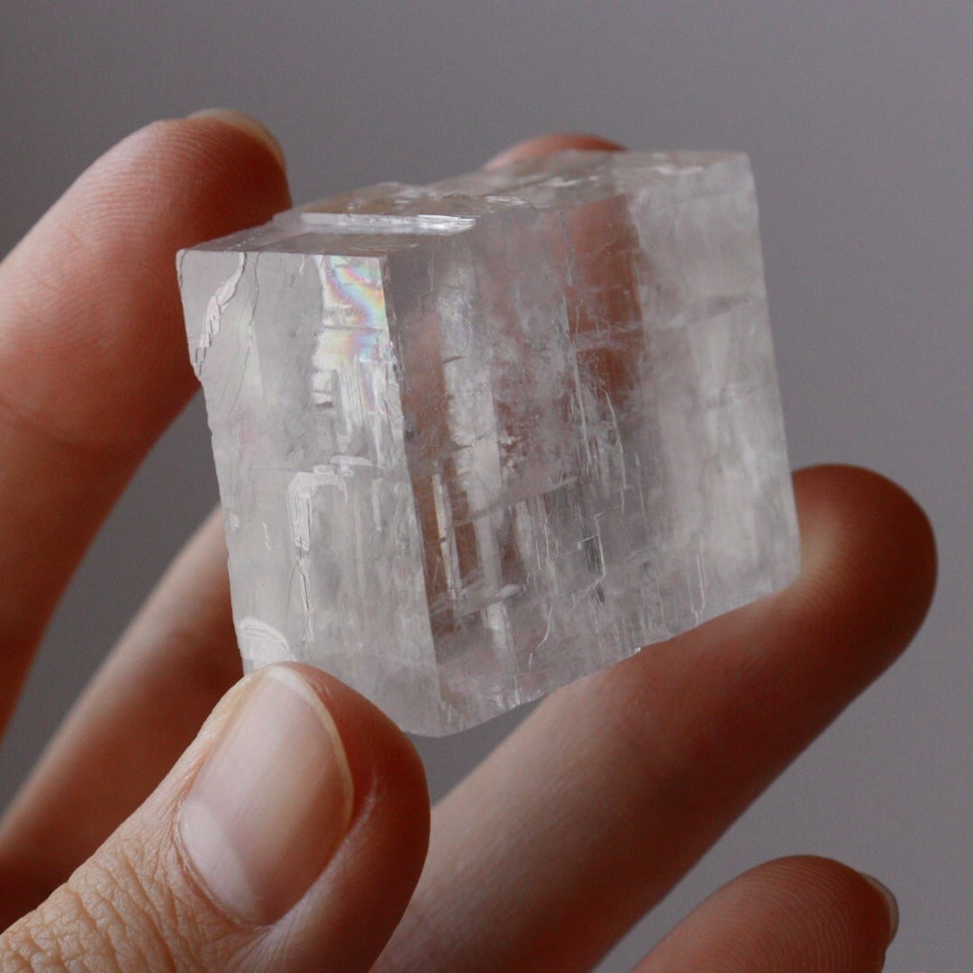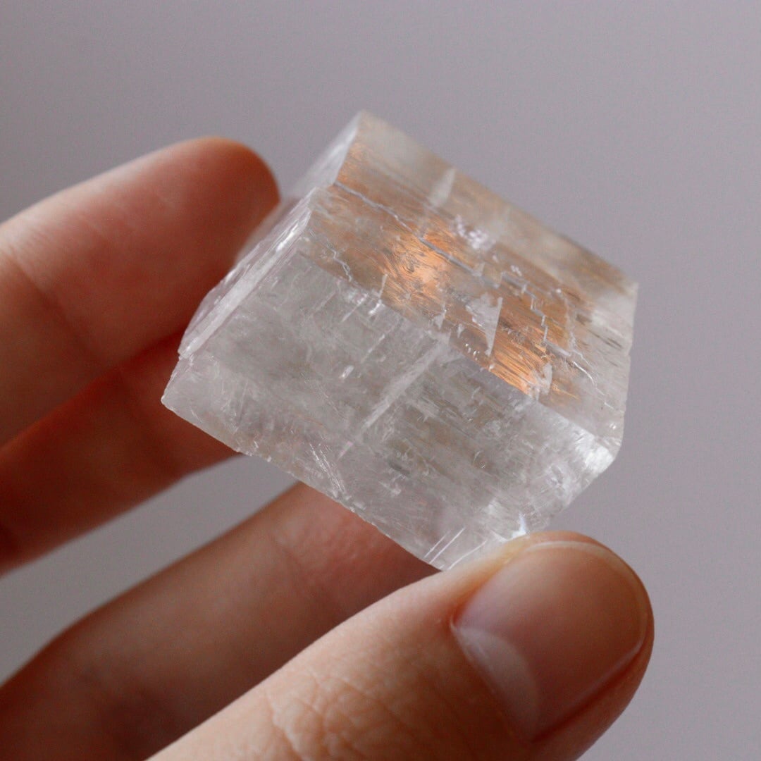 淡くやさしい光を放つ、オプティカルカルサイトの原石。