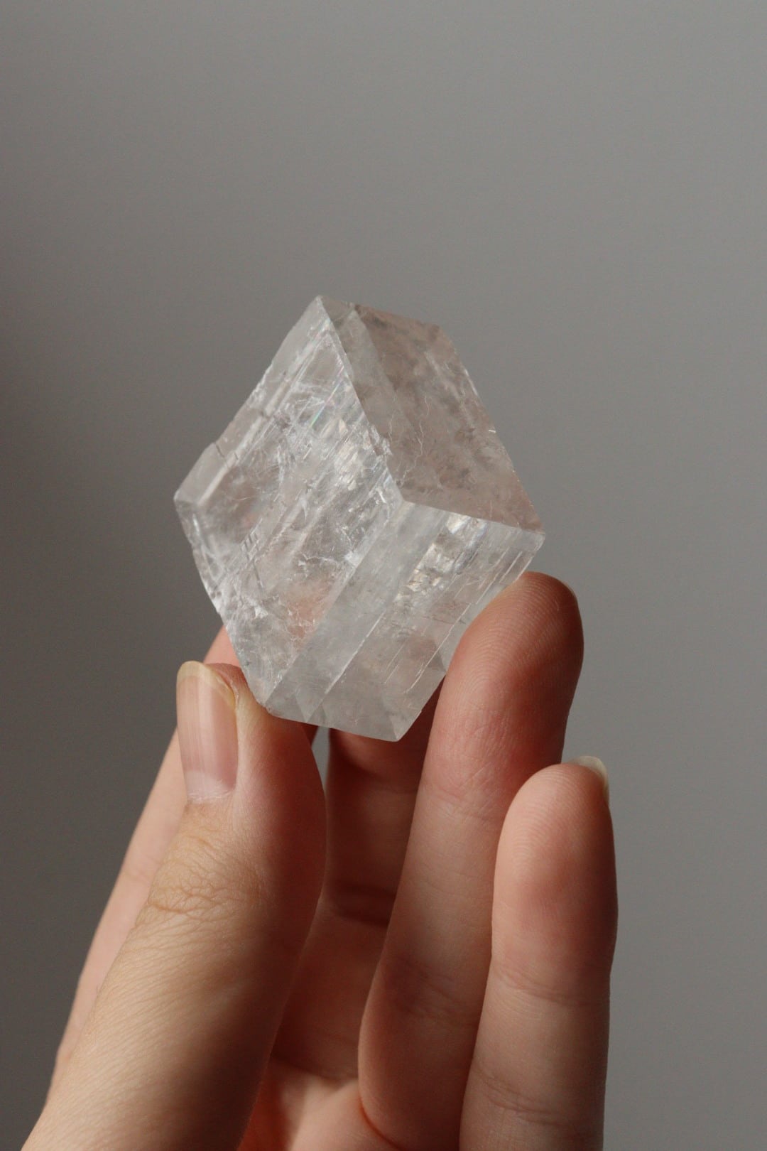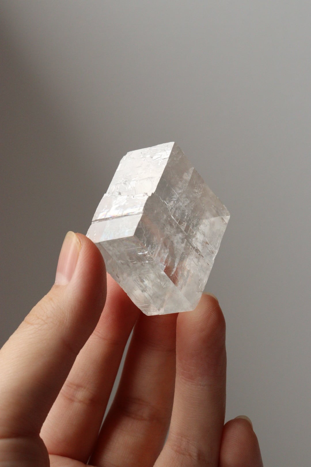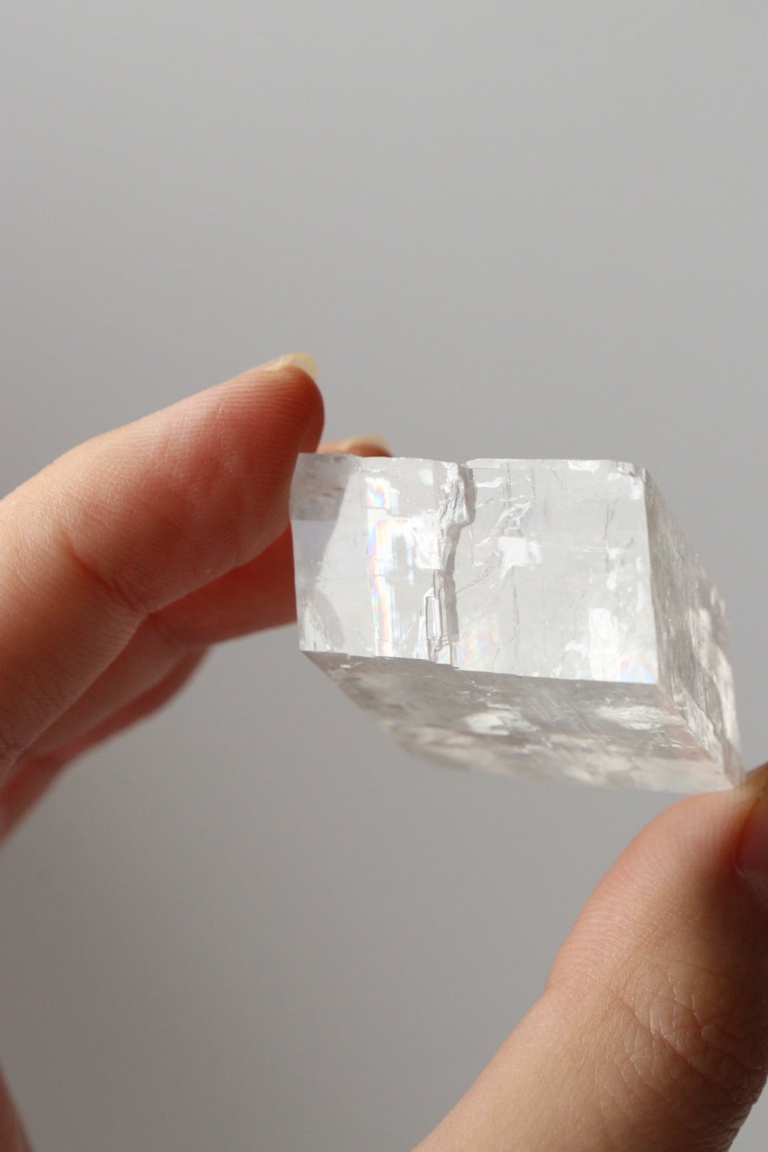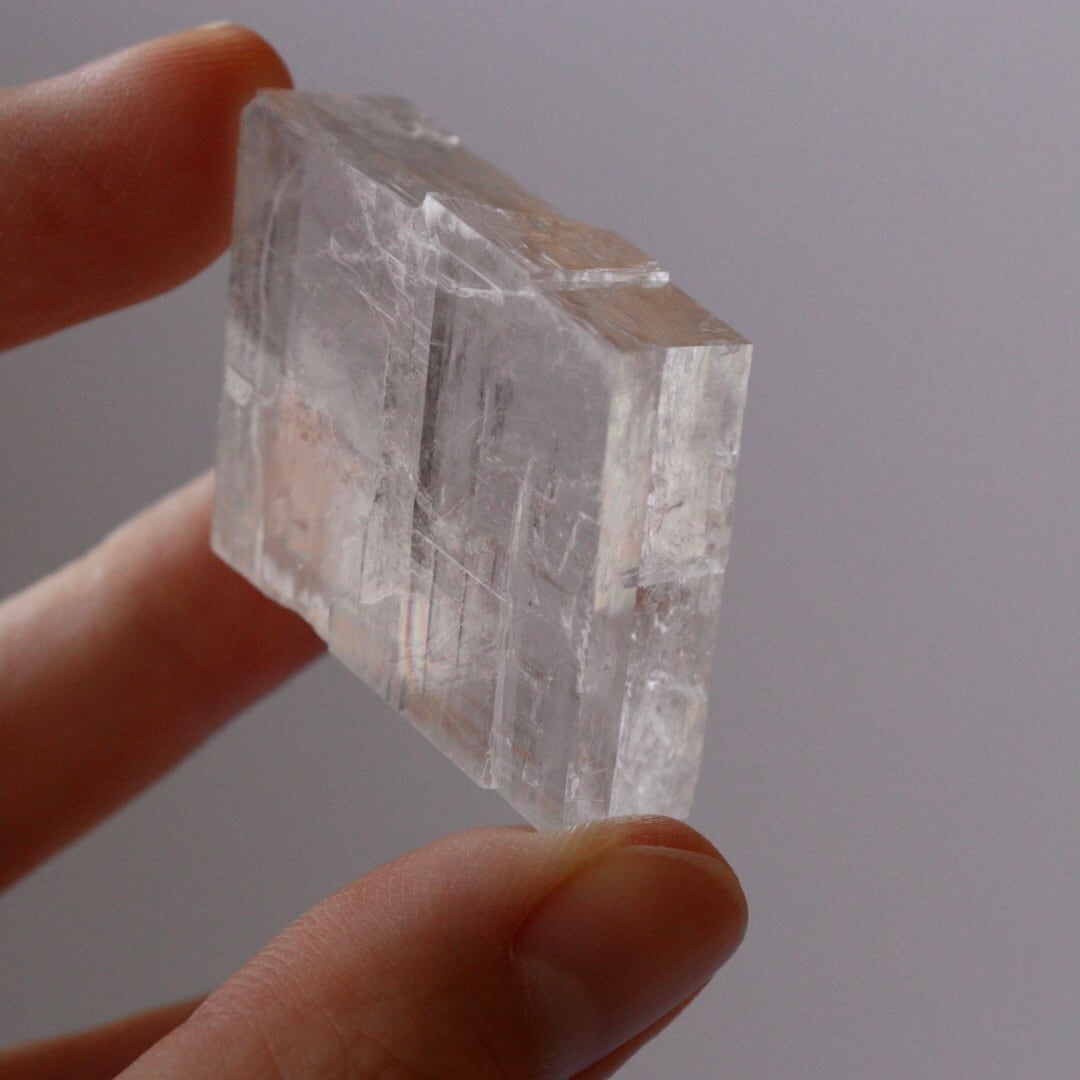 淡くやさしい光を放つ、オプティカルカルサイトの原石。