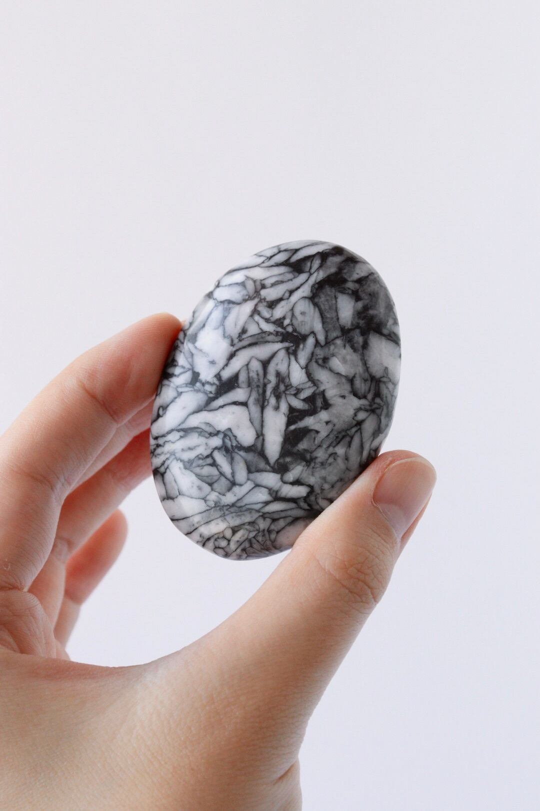 ピノライトは、白色のマグネサイトと黒色のドロマイトから成る天然石で、日本では取り扱いの少ない希少な石です。その個性的な美しさから、標本としてコレクションされることも多い存在です。