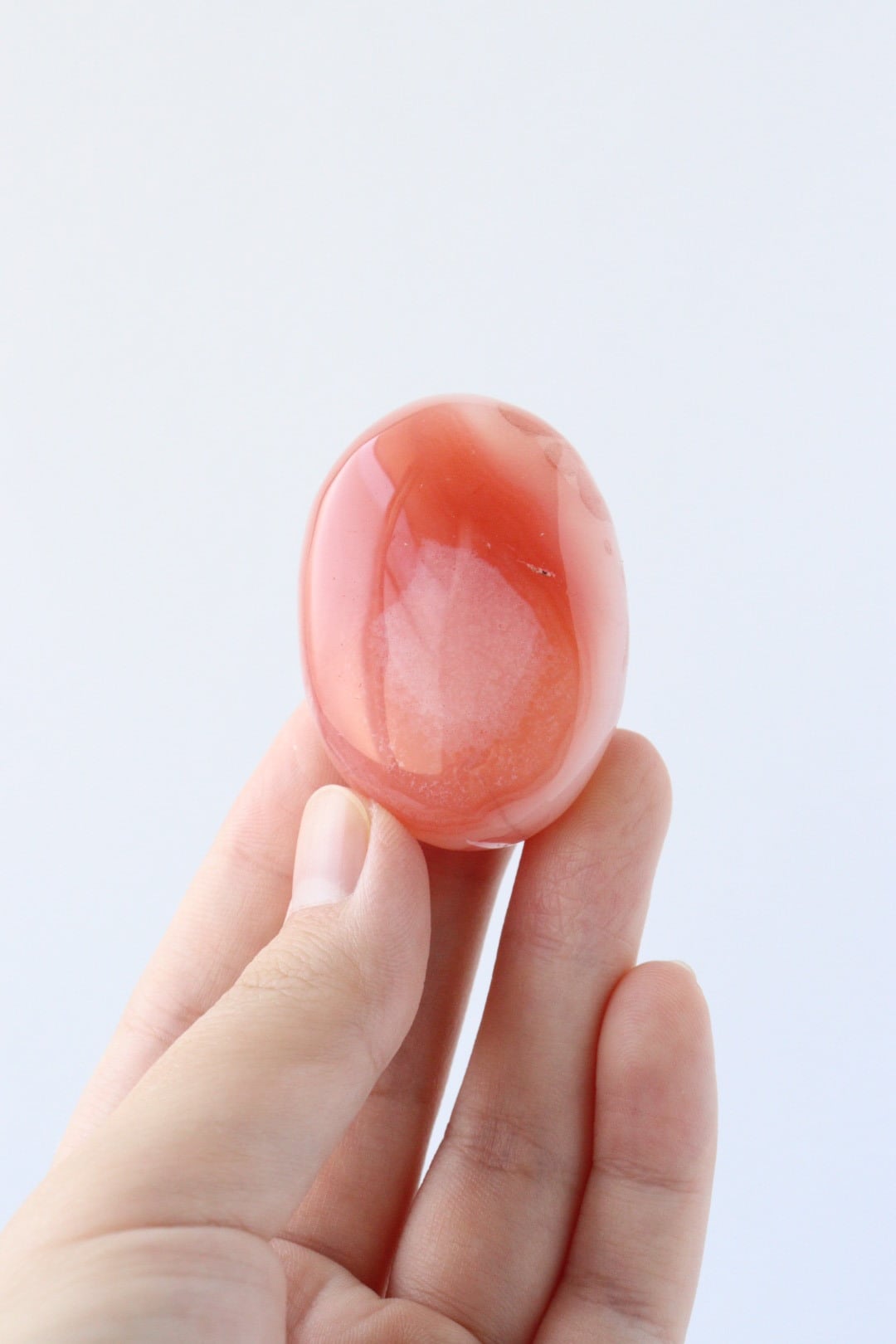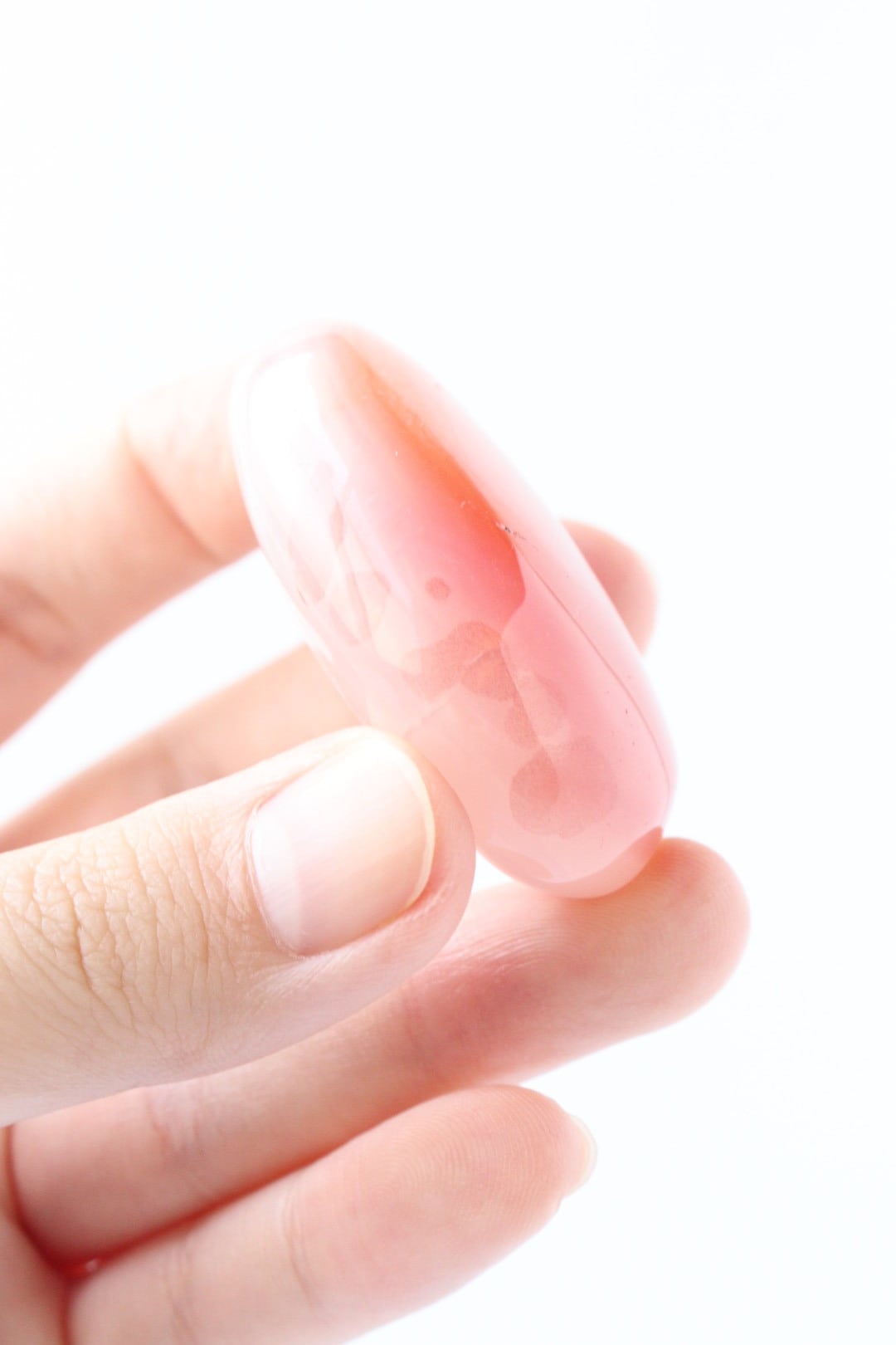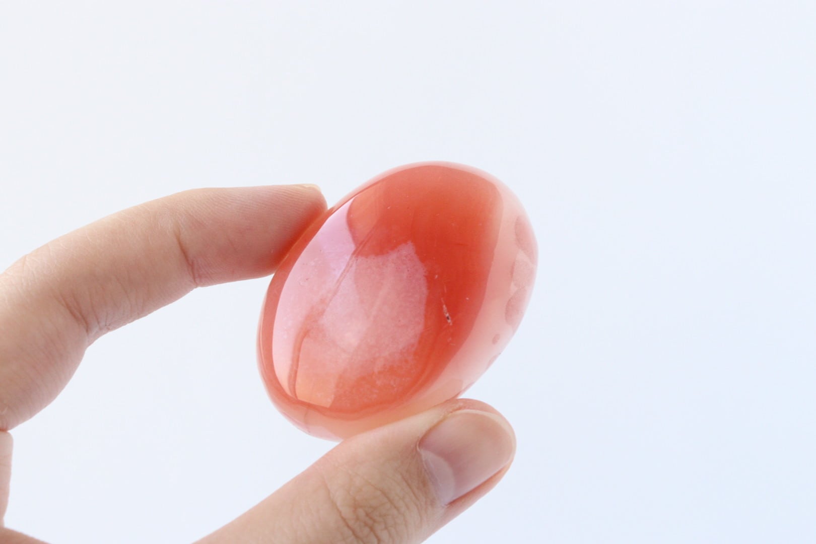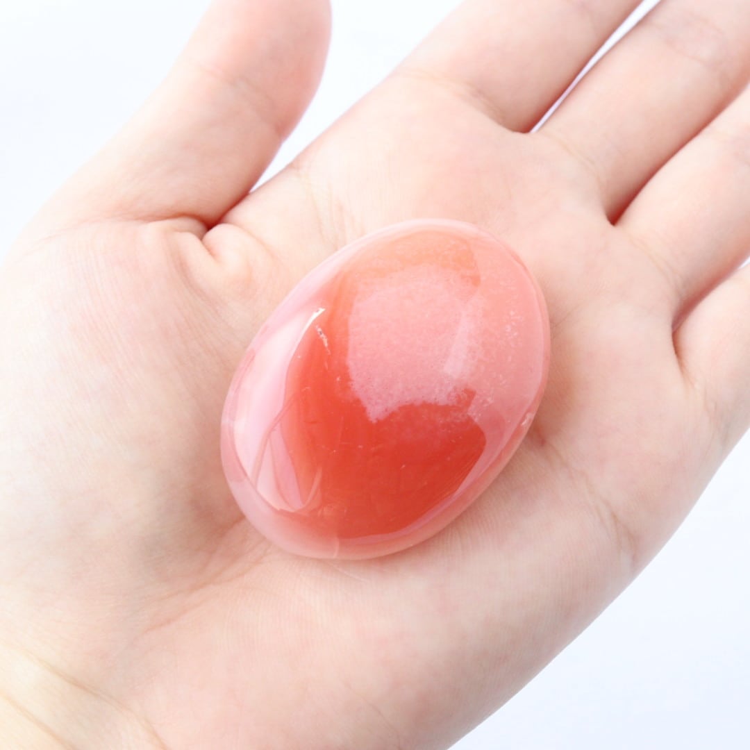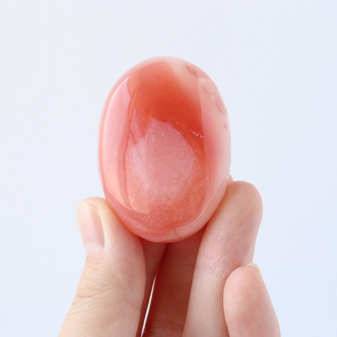 透き通るような赤と白の層が、金魚の尾のようにゆらめくアフリカンサードニクスの握り石。