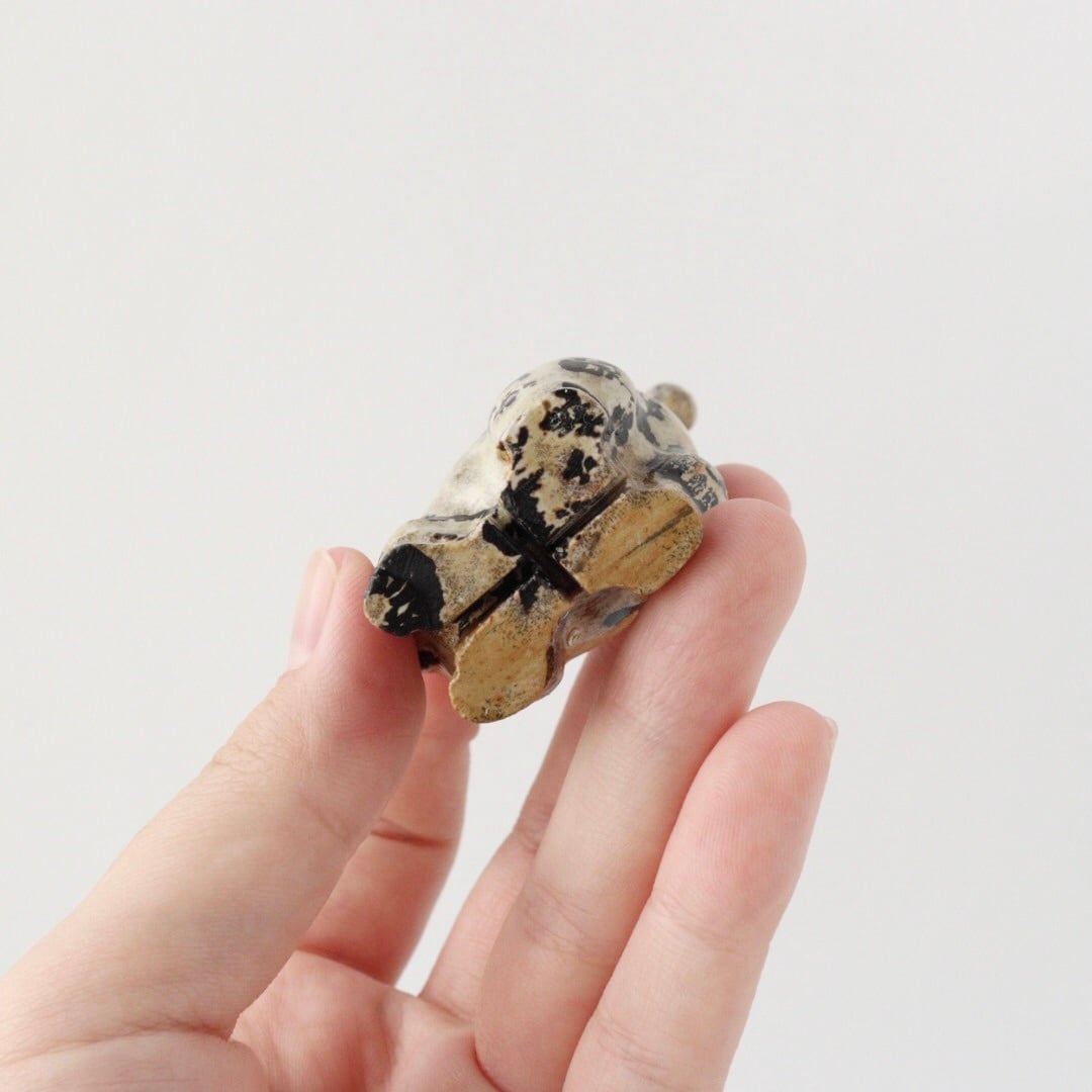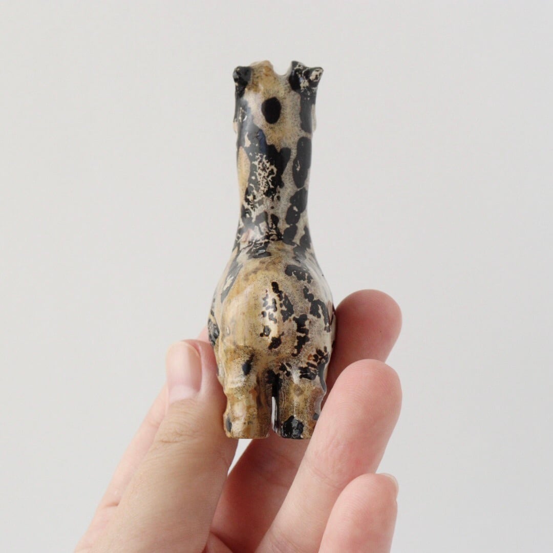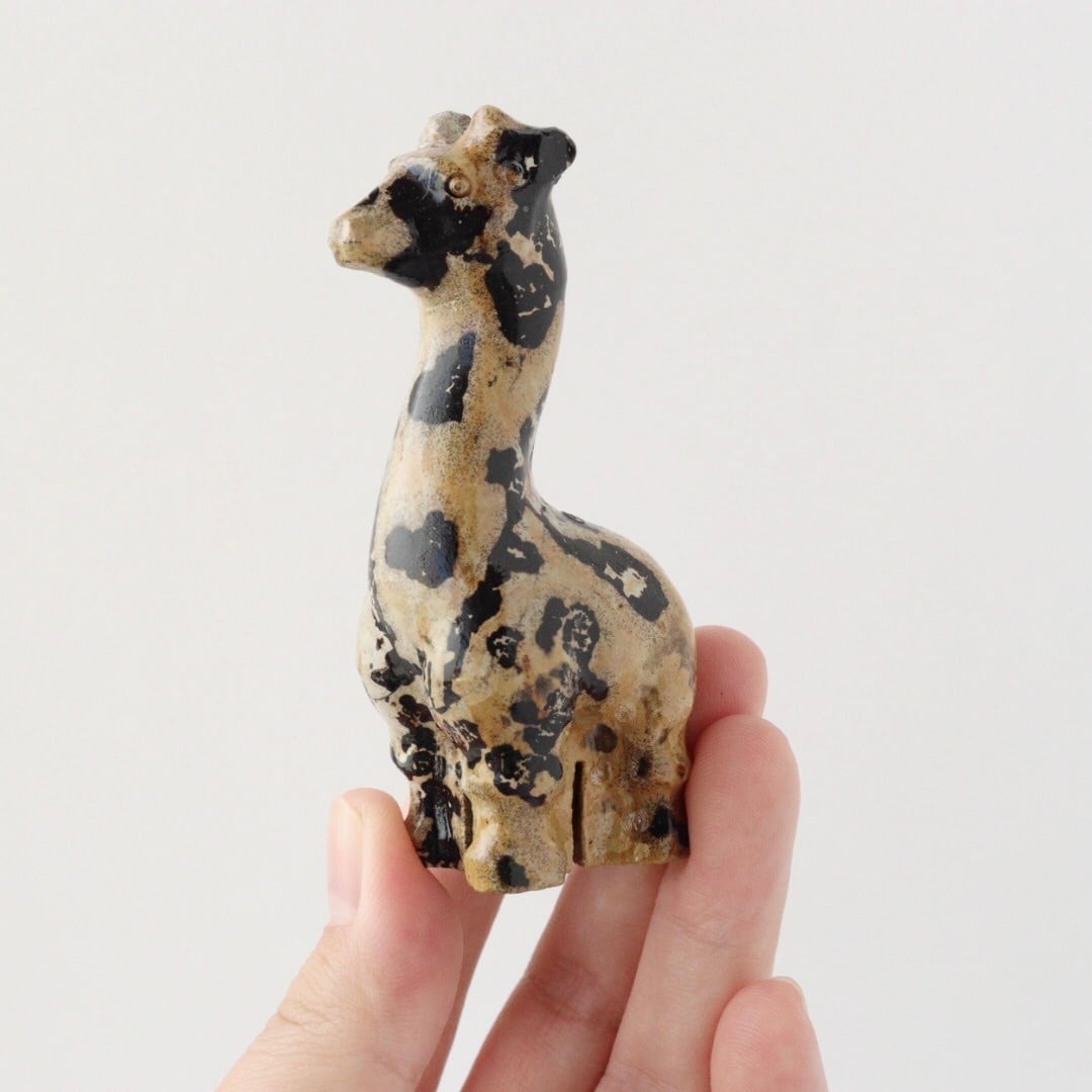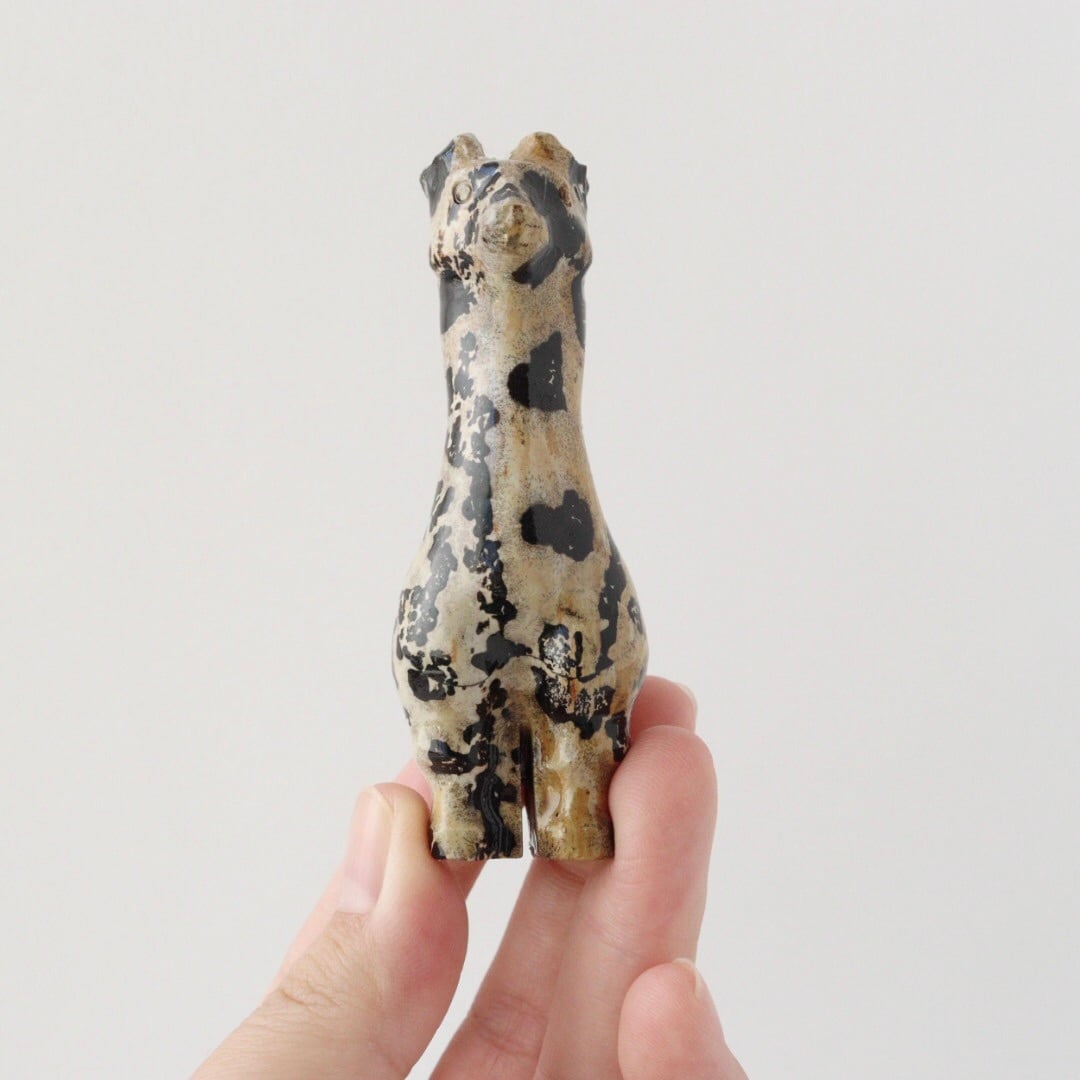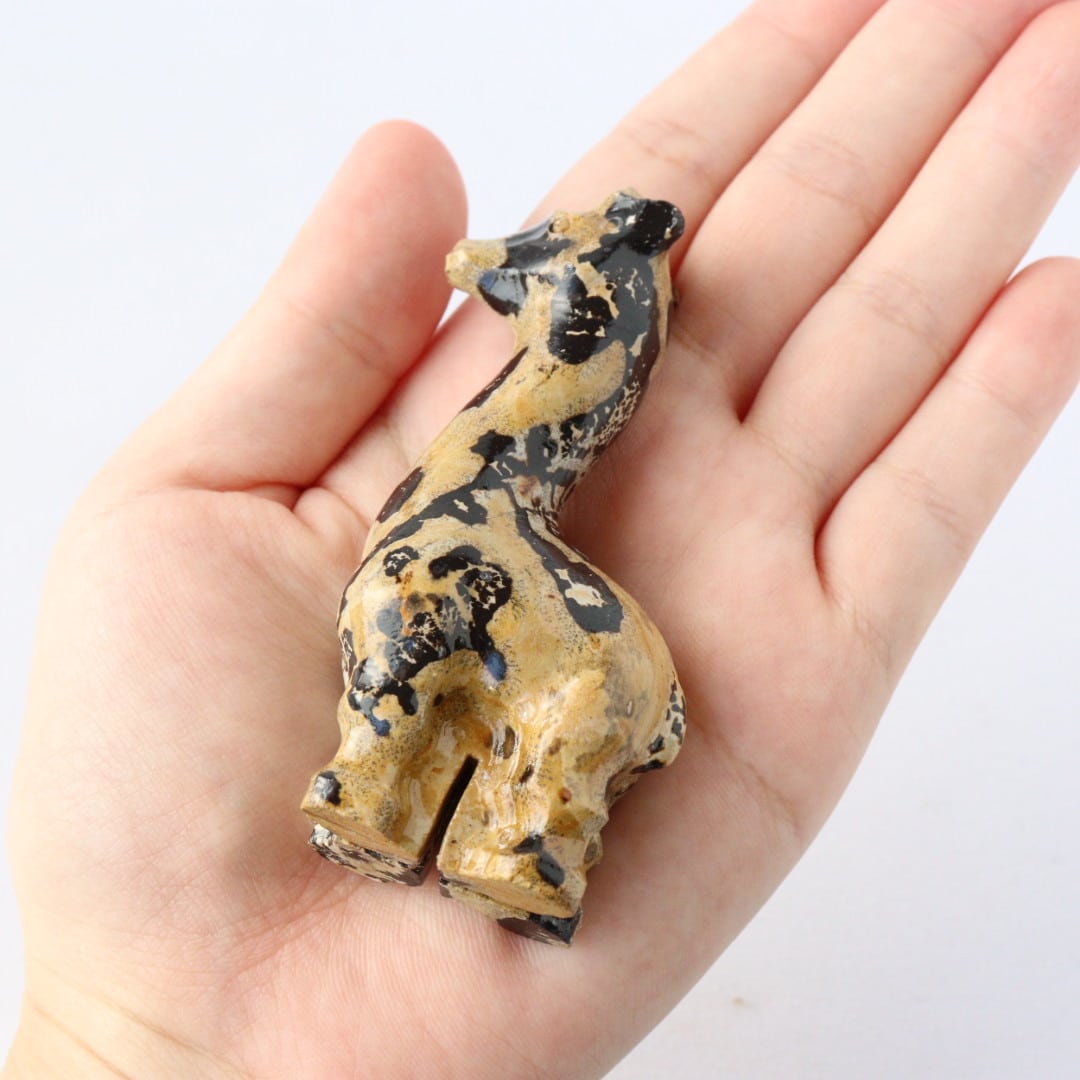 ナチュラルブラウンの素地に、自然で美しいブラックの斑点模様が広がるピクチャージャスパーのキリン。