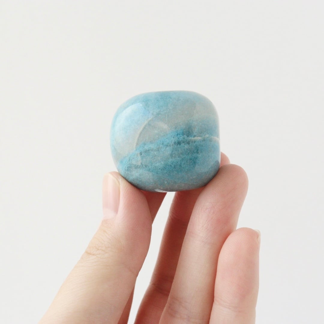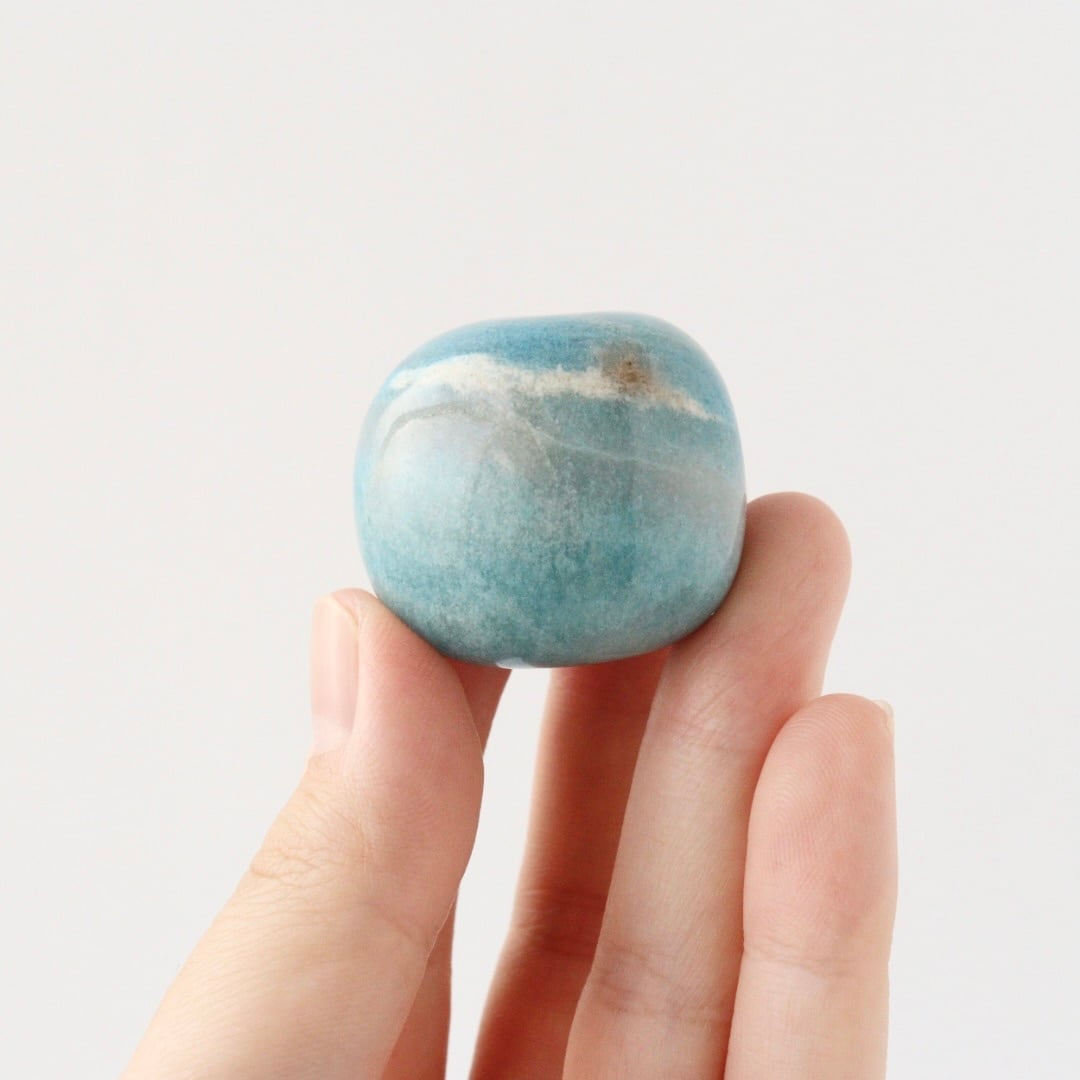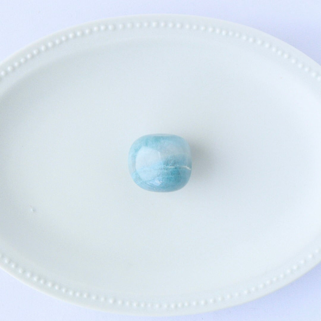 こちらは、スカイブルーをメインにホワイトやグレーの模様が入り込んだトロレアイトのタンブル。