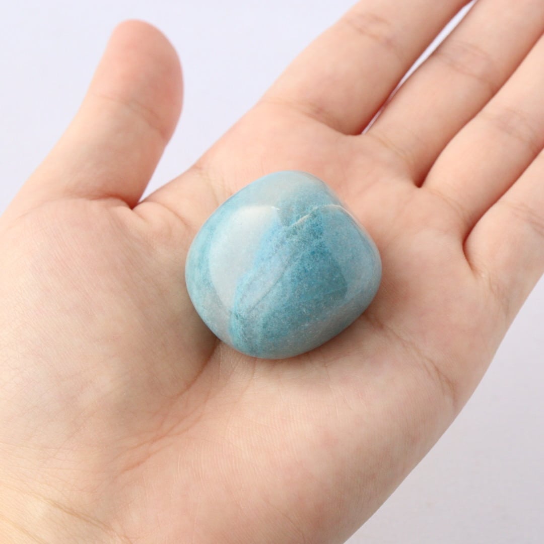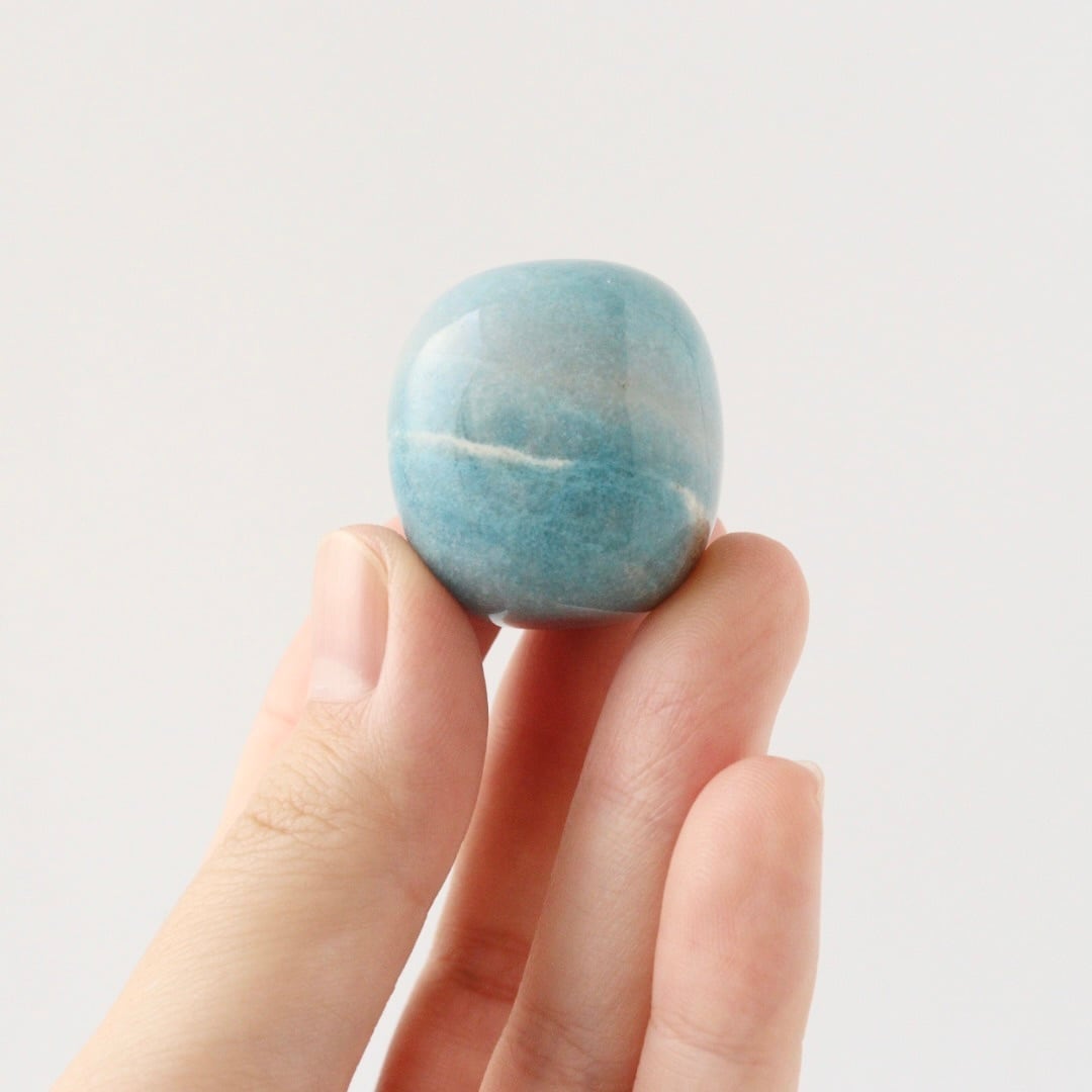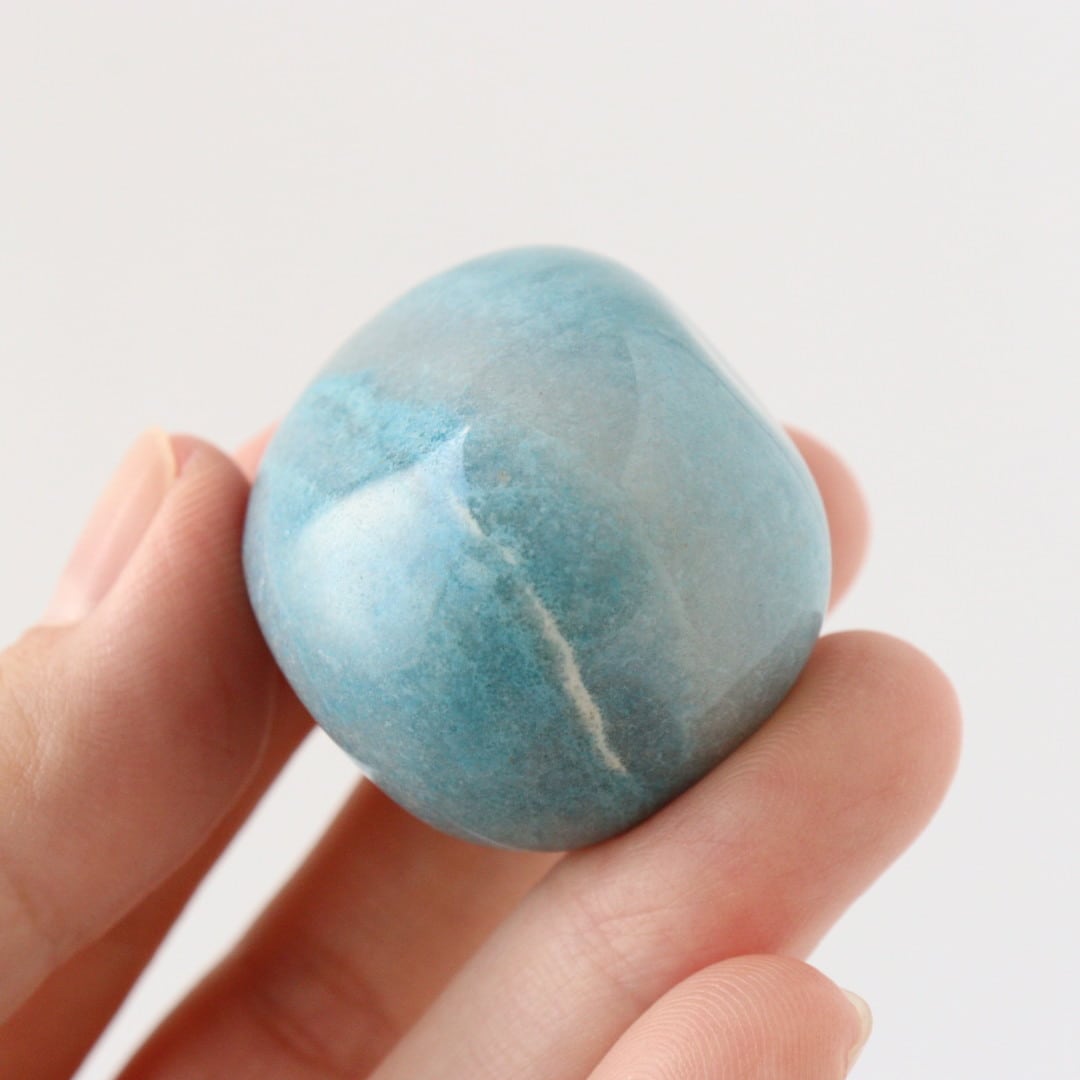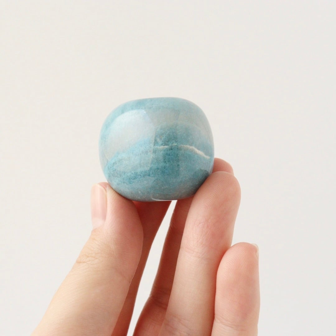 こちらは、スカイブルーをメインにホワイトやグレーの模様が入り込んだトロレアイトのタンブル。