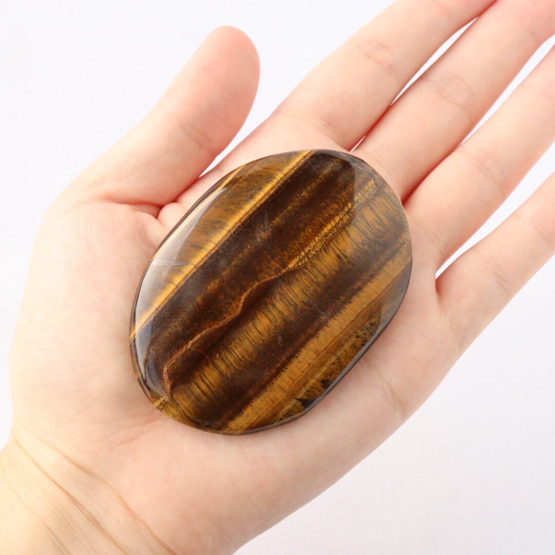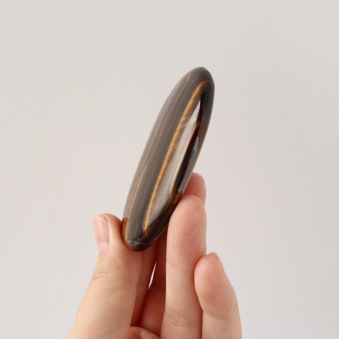 ゴールドとブラウンからーが虎の目のように輝くタイガーアイの握り石。