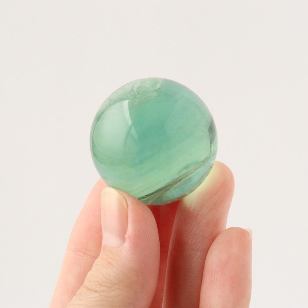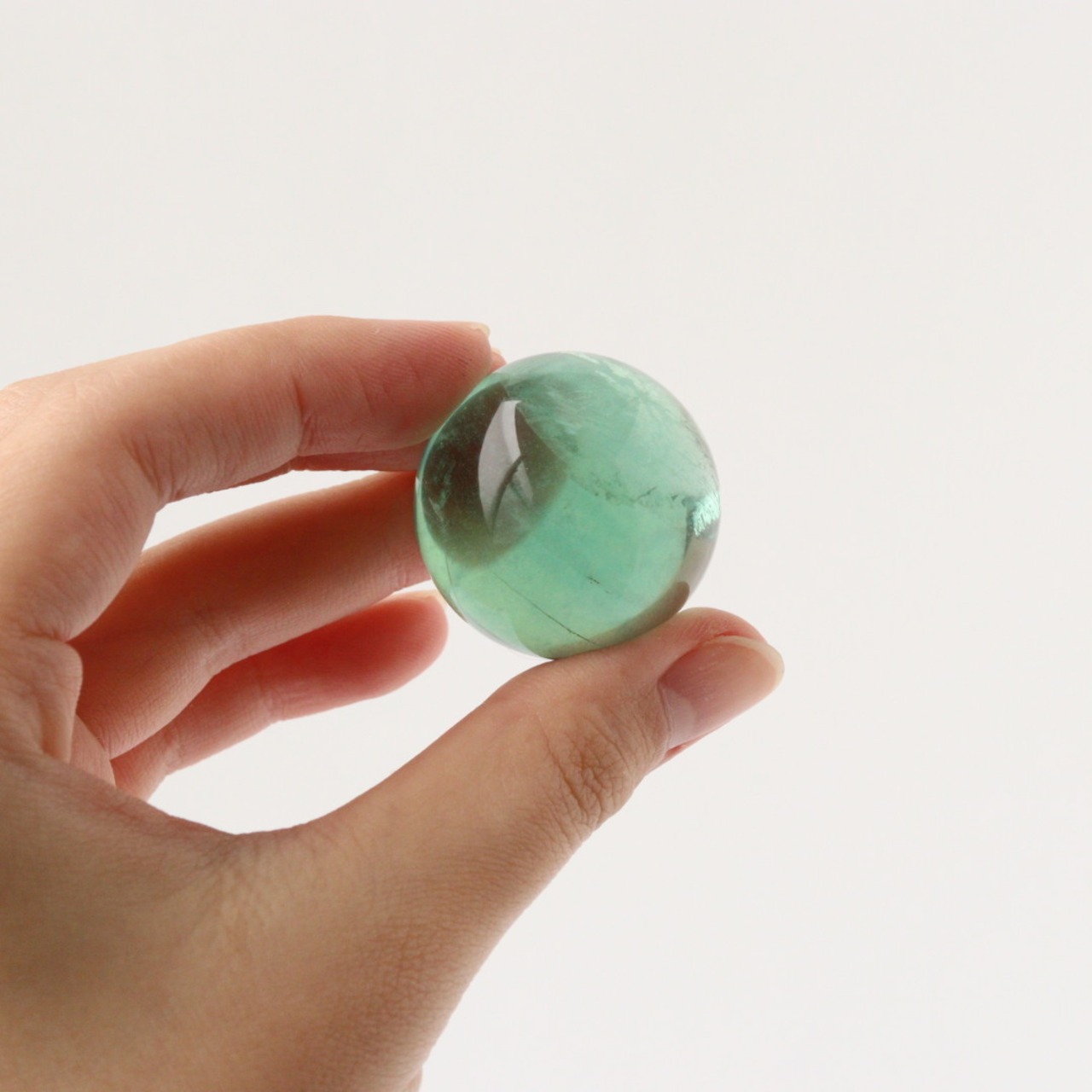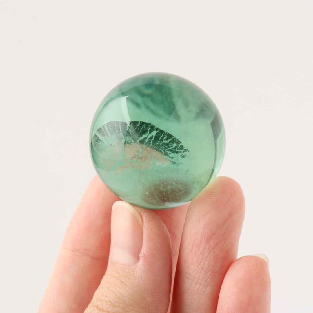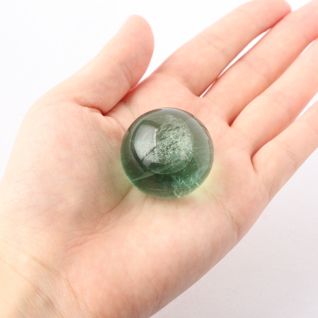 純度の高いエメラルドグリーンが透き通る、グリーンフローライトのスフィア。