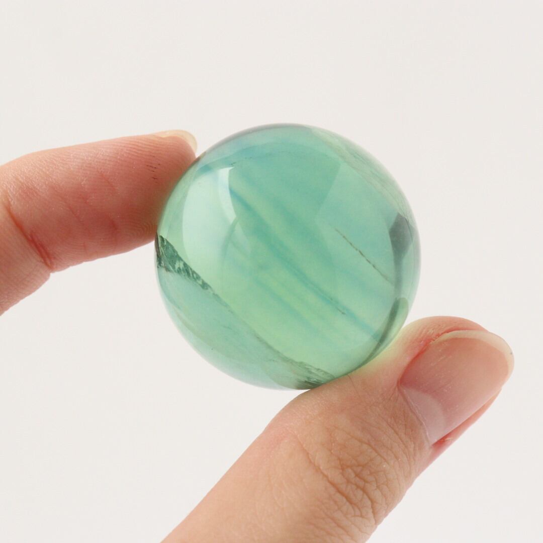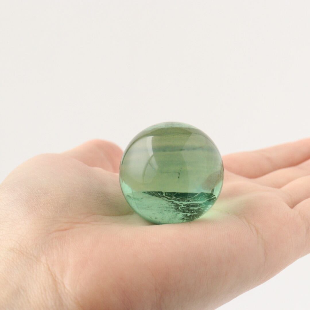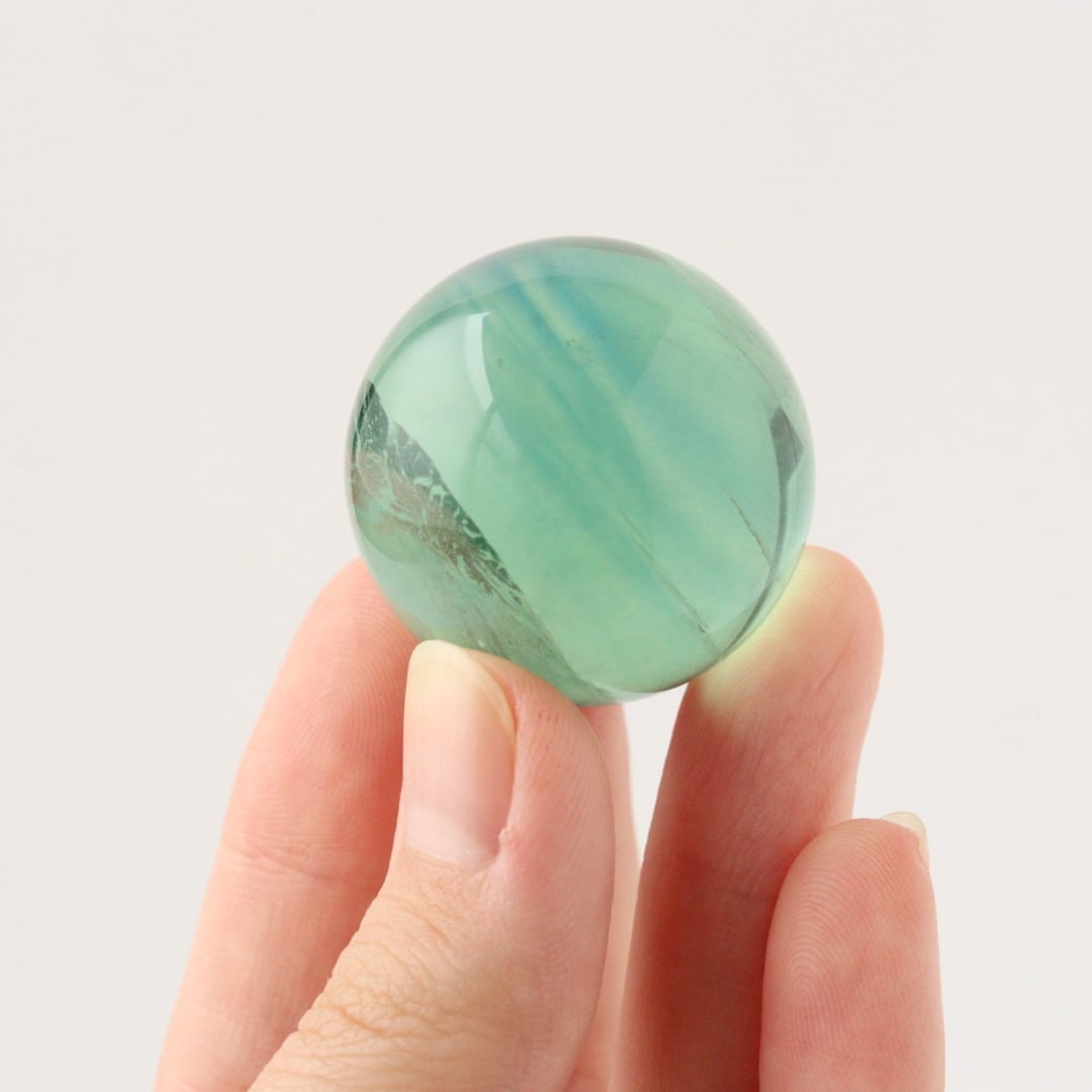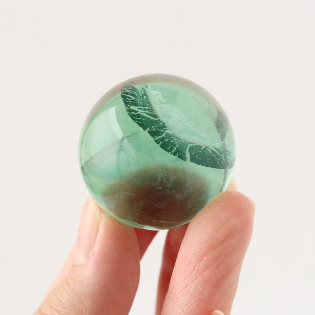 純度の高いエメラルドグリーンが透き通る、グリーンフローライトのスフィア。
