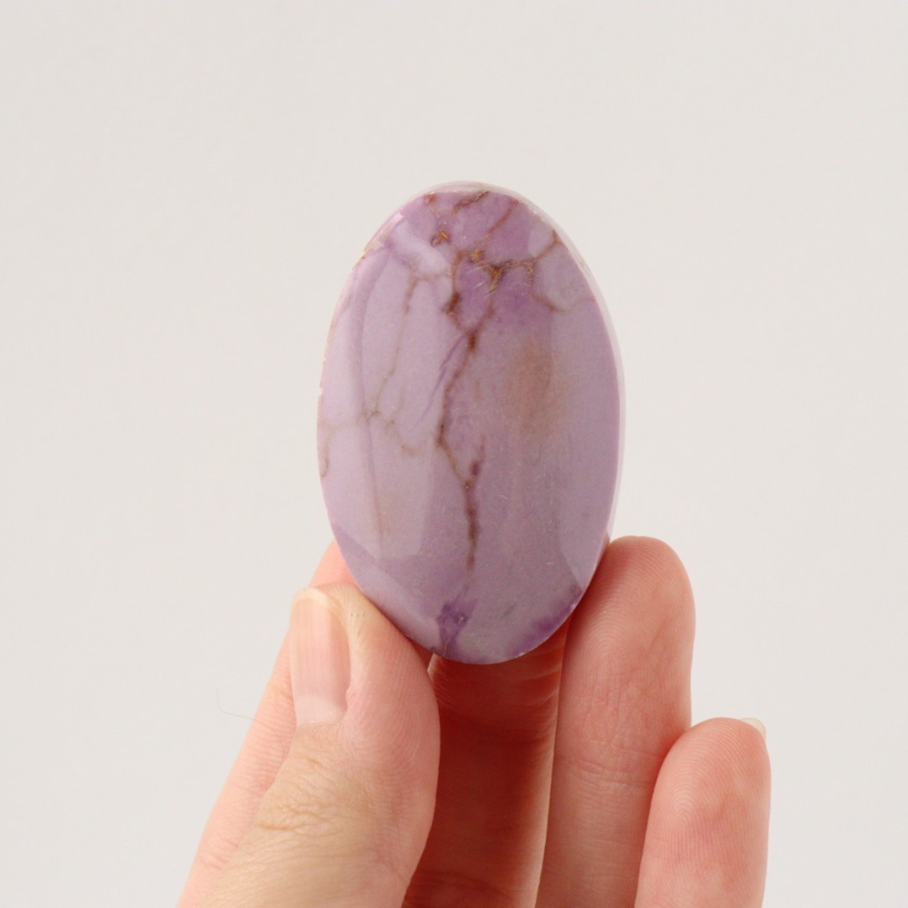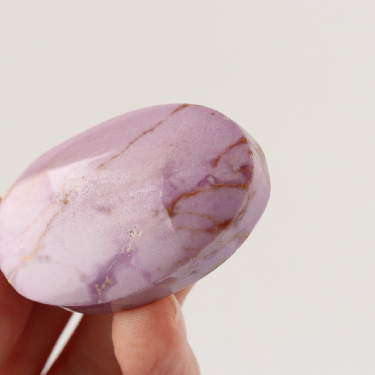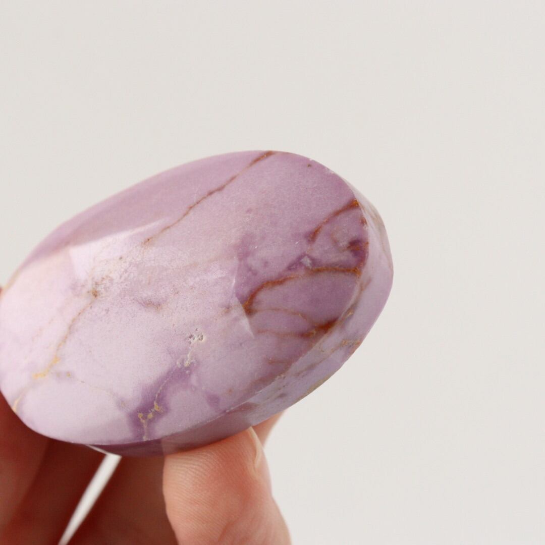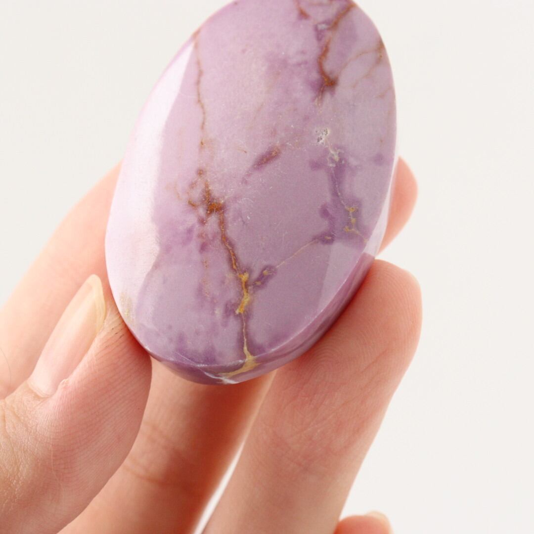 こちらは、柔らかいパープルの色味と模様の美しさが際立つフォスフォシデライトの握り石。