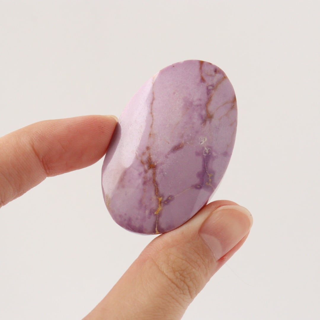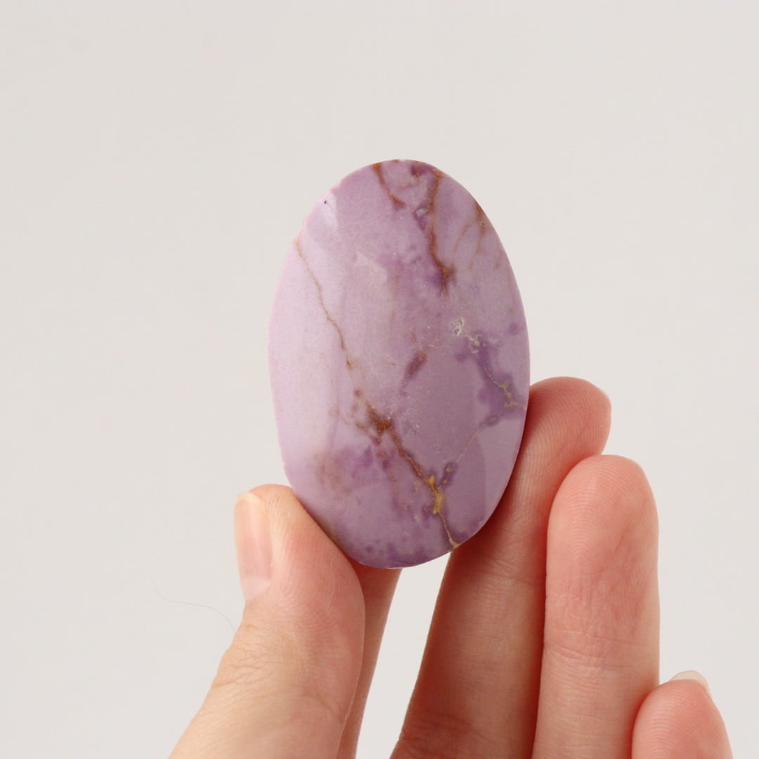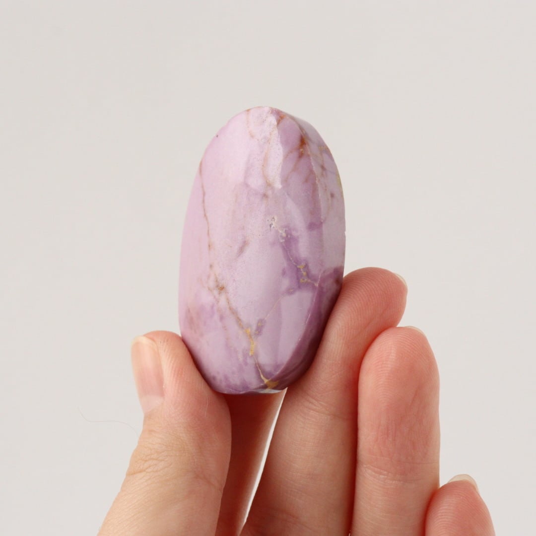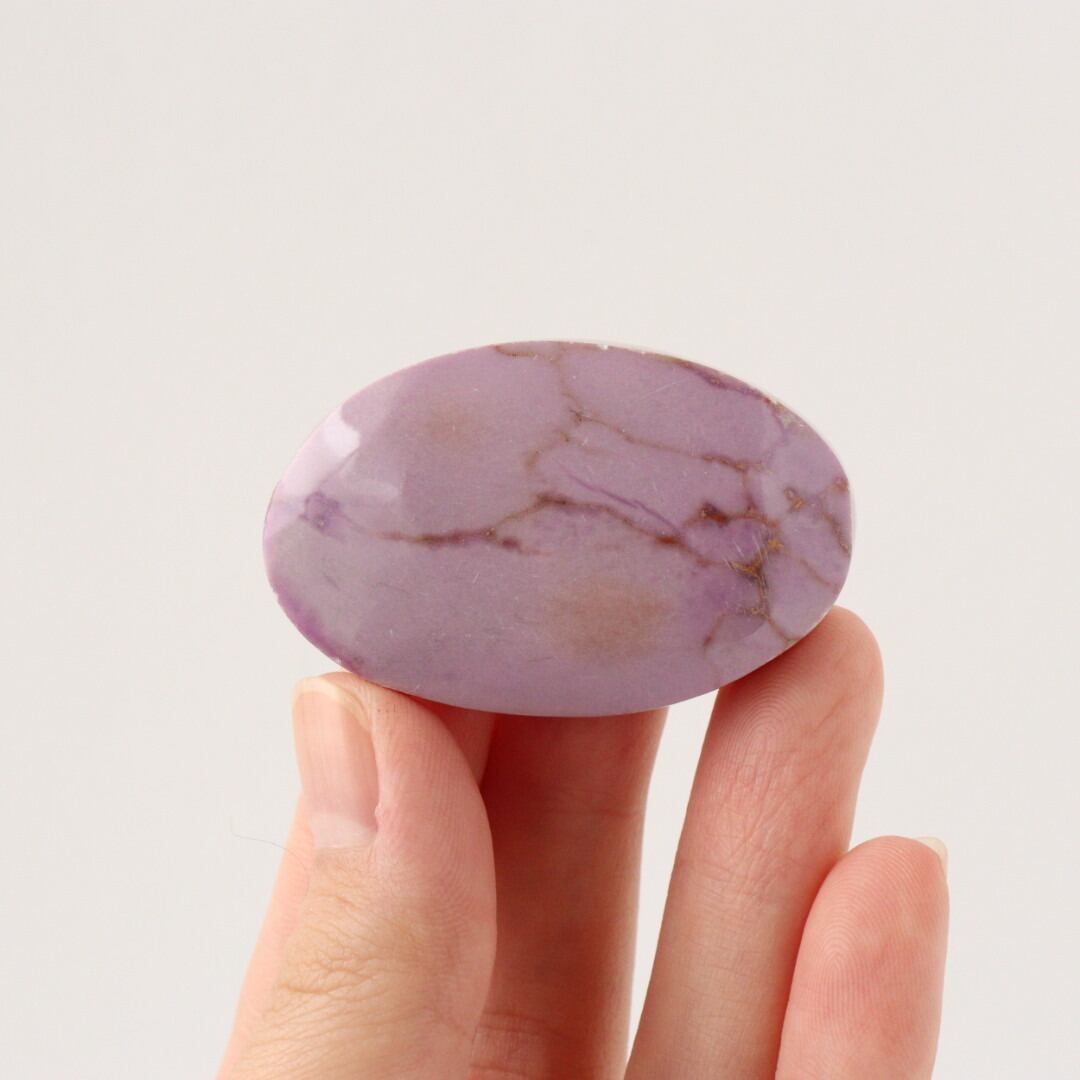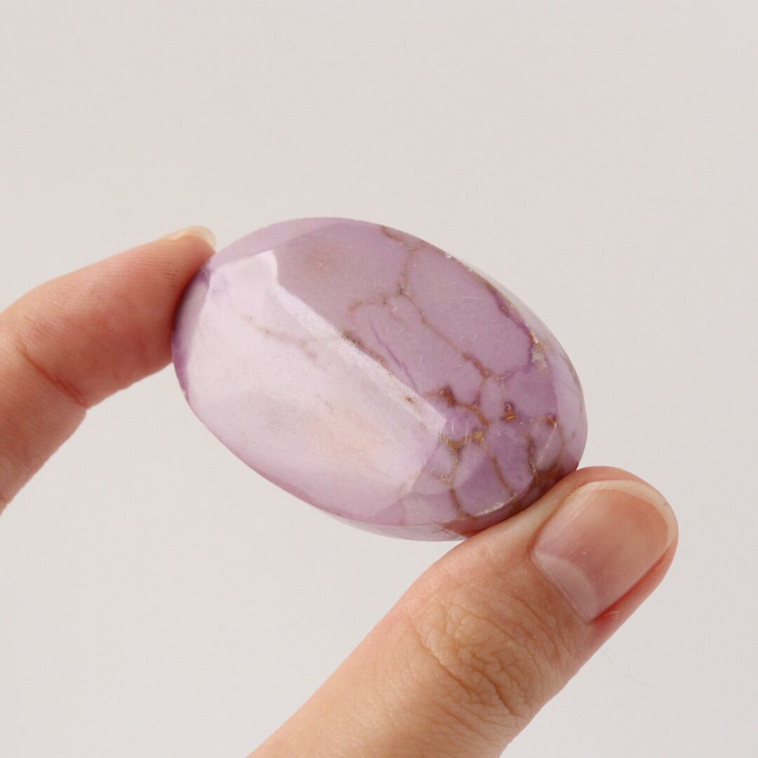 こちらは、柔らかいパープルの色味と模様の美しさが際立つフォスフォシデライトの握り石。