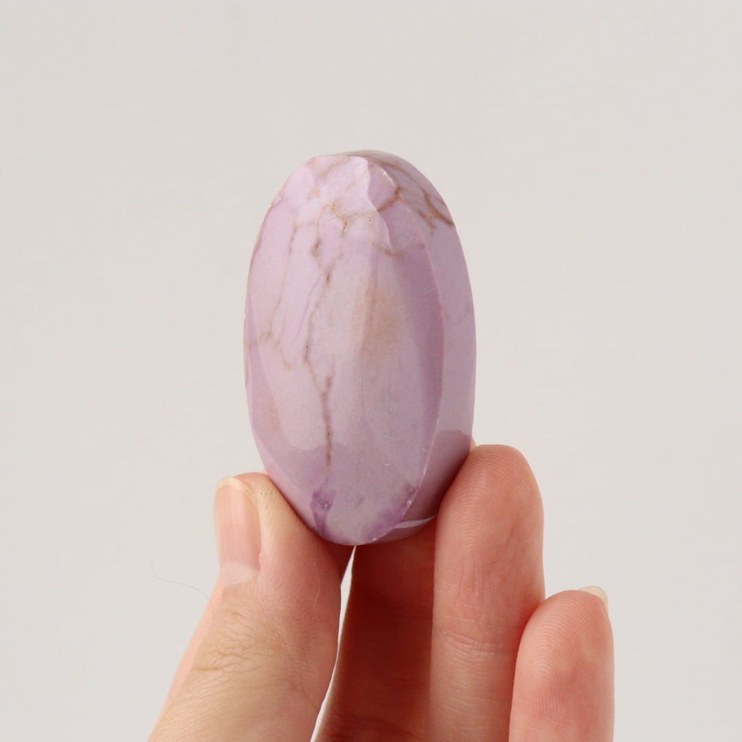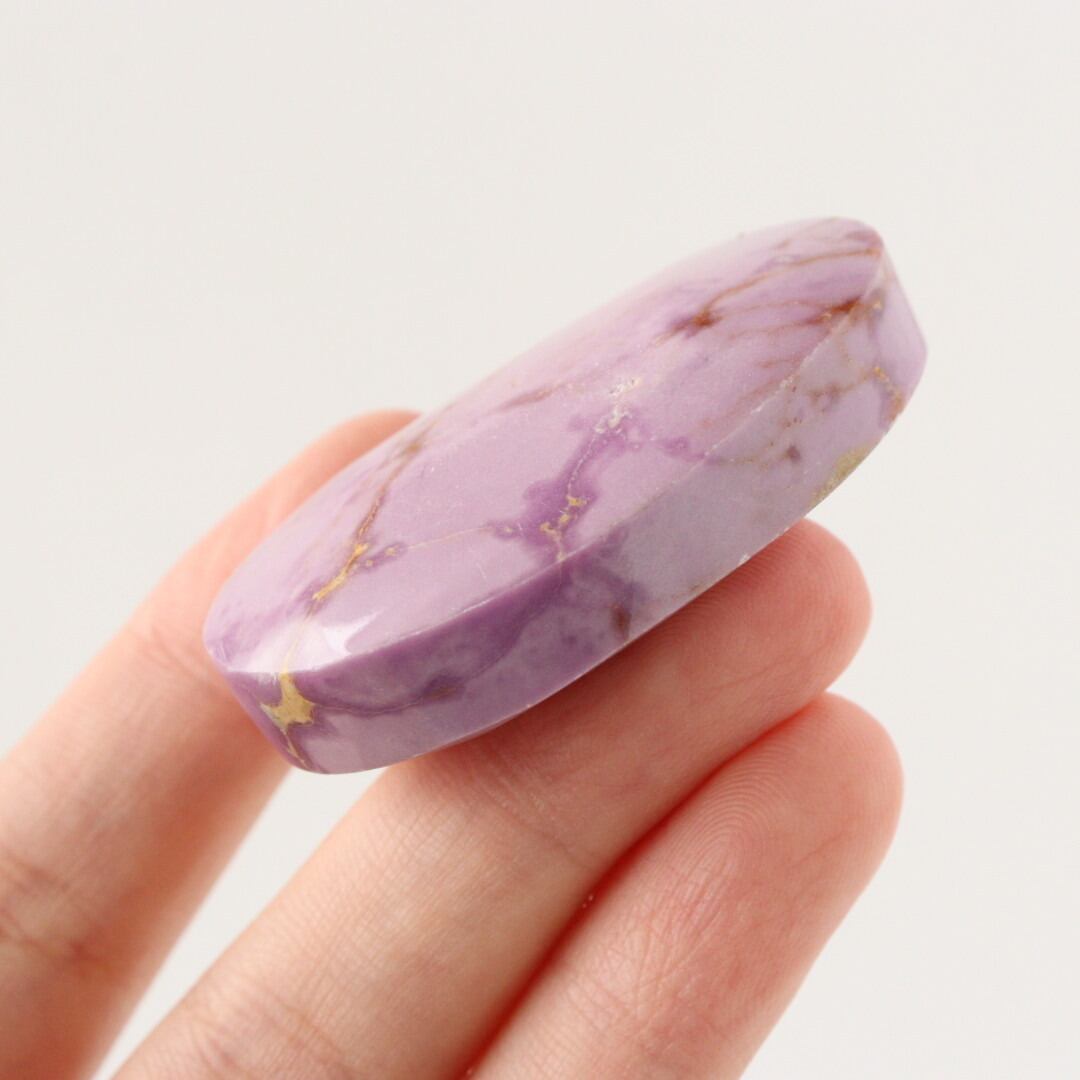 落ち着いたマットな色合いが魅力の、フォスフォシデライトの握り石。柔らかなパープルに浮かび上がる模様が美しく、独特のカラーリングも魅力です。