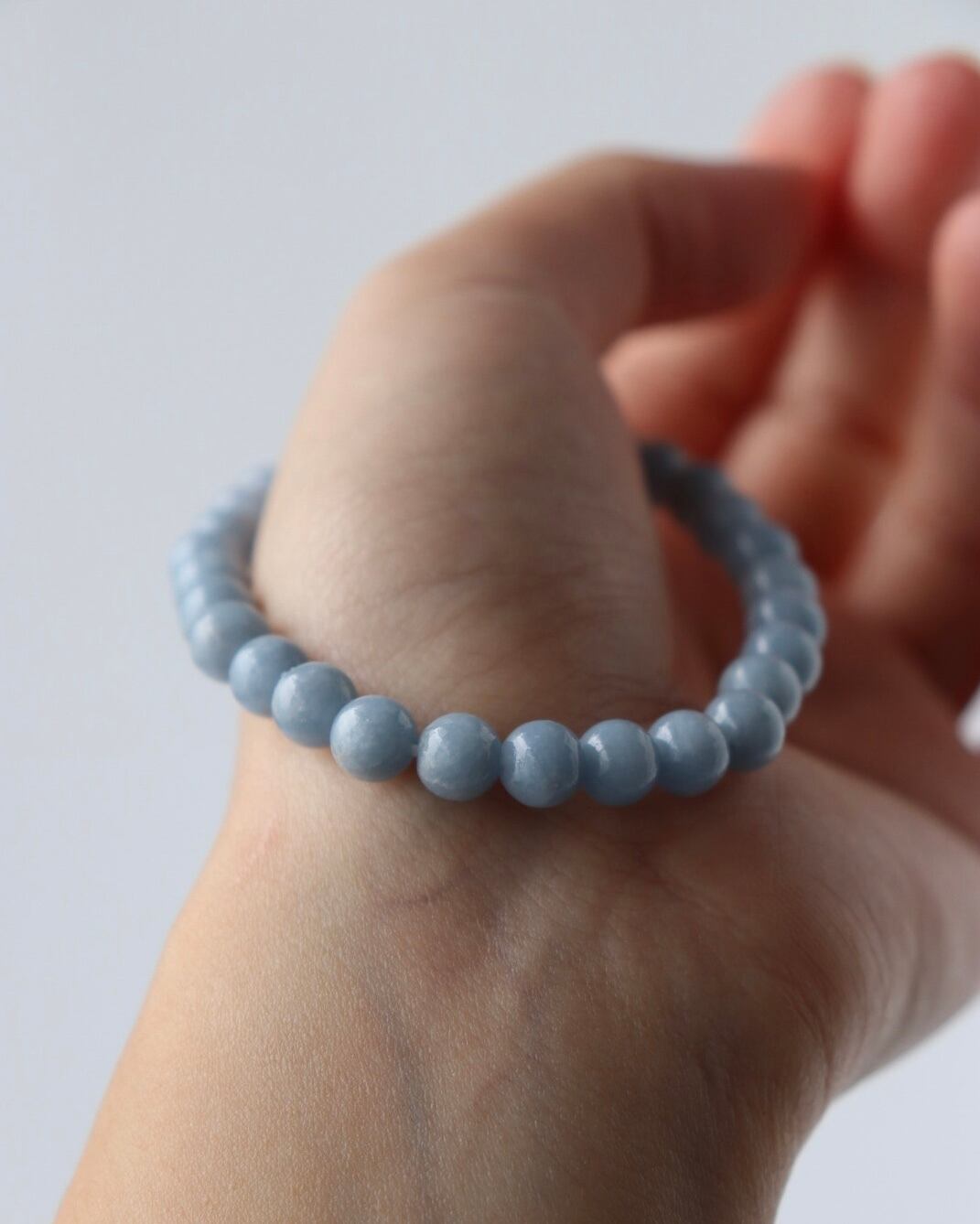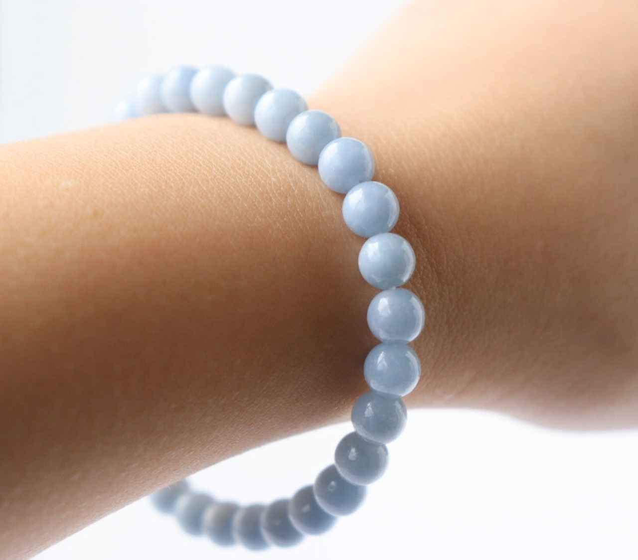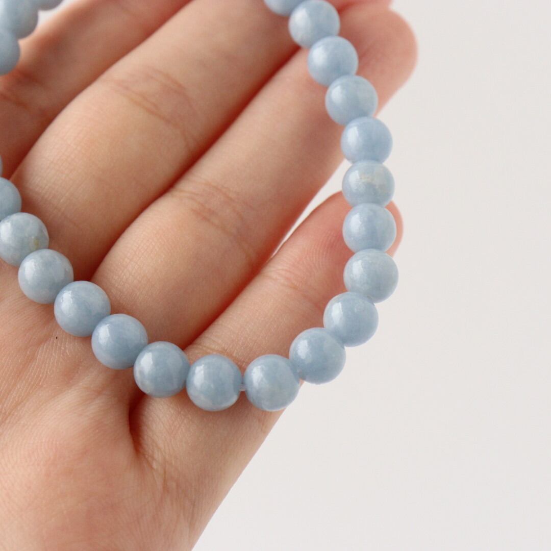 柔らかな空の色のような優しいブルーが魅力の、エンジェライトのブレスレット。