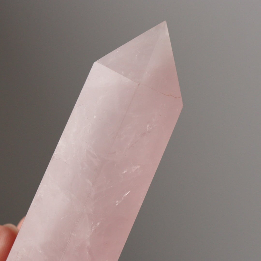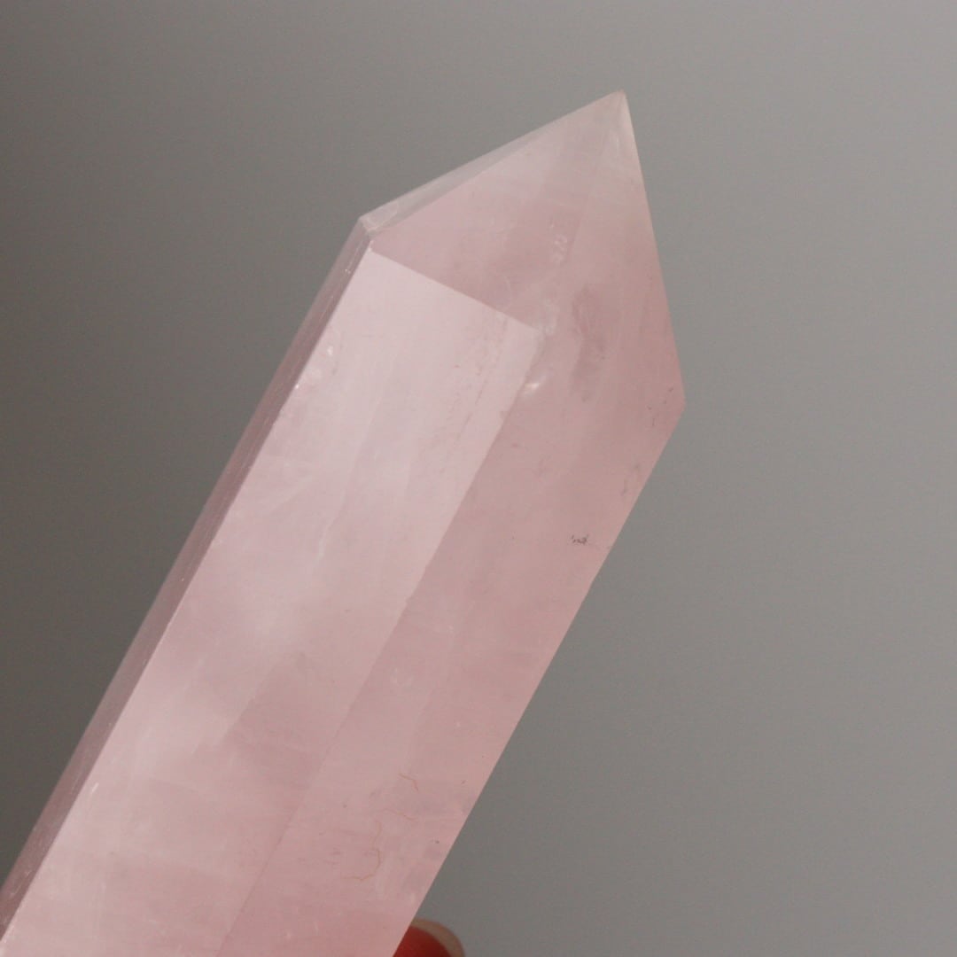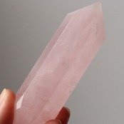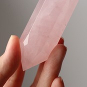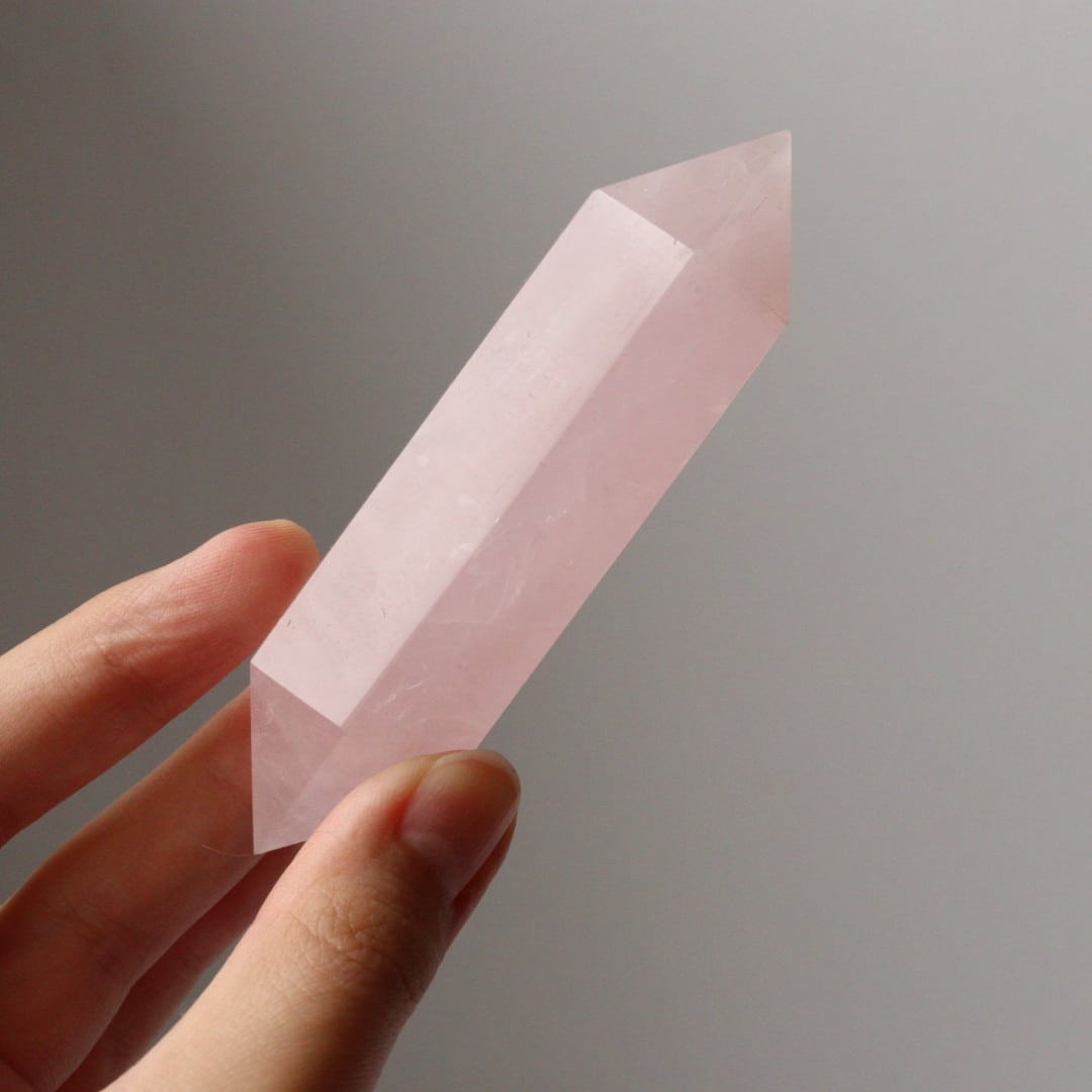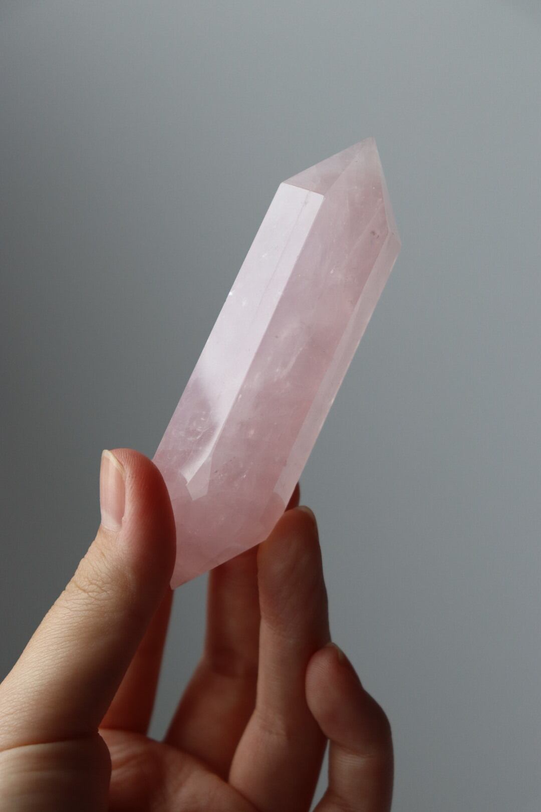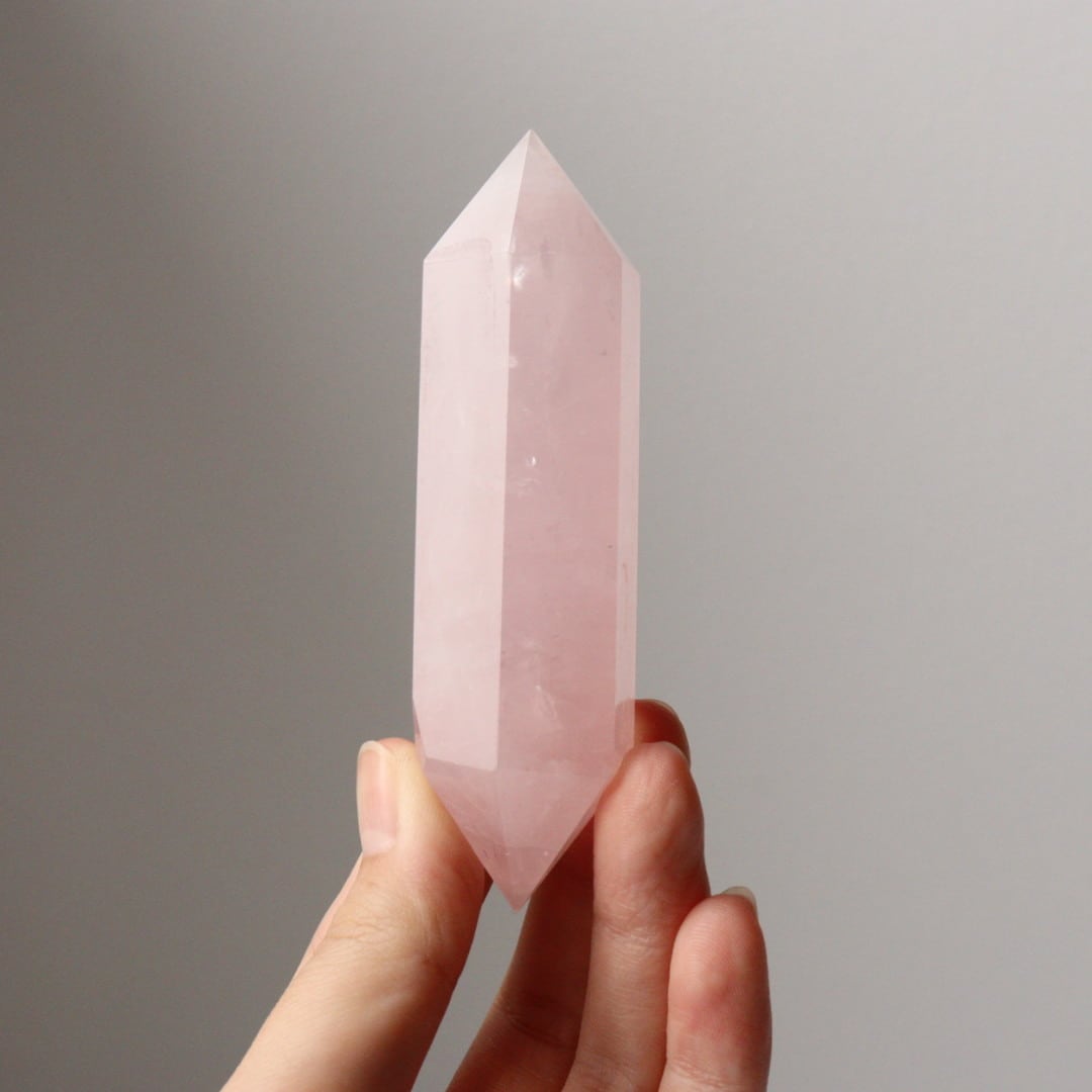 こちらは、両端が尖ったダブルポイントの形に磨かれたローズクォーツ。
