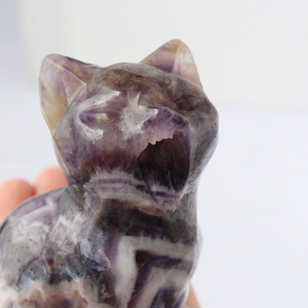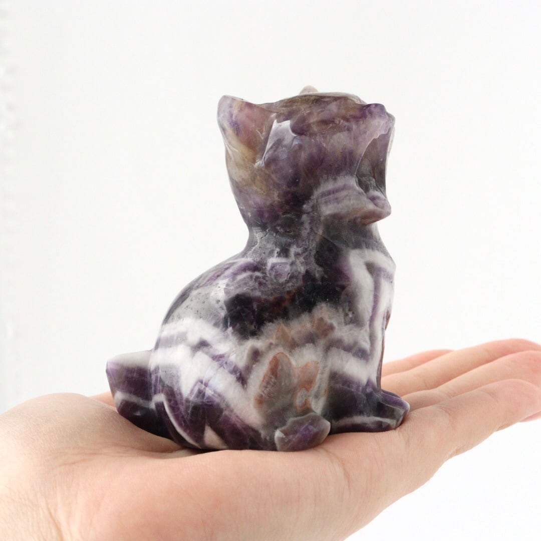 シェブロンアメシストならではの美しい模様がねこの体全体に描き出されています。
