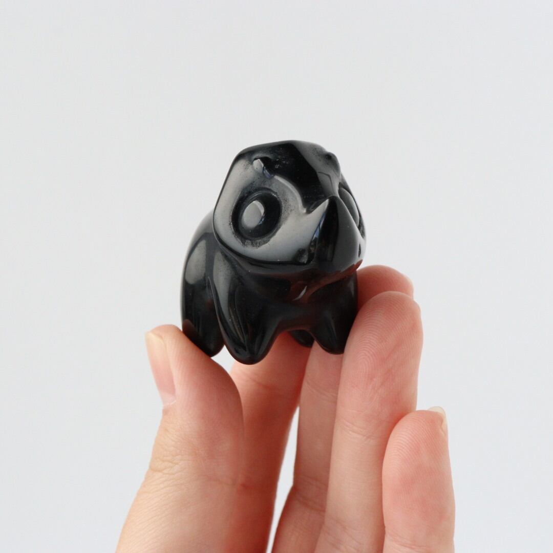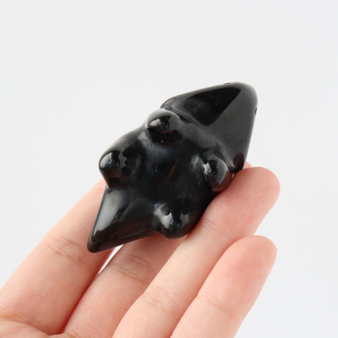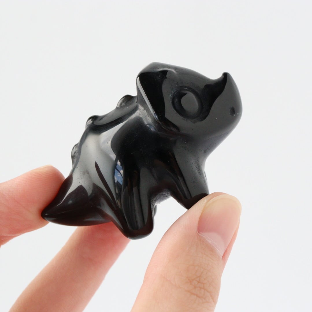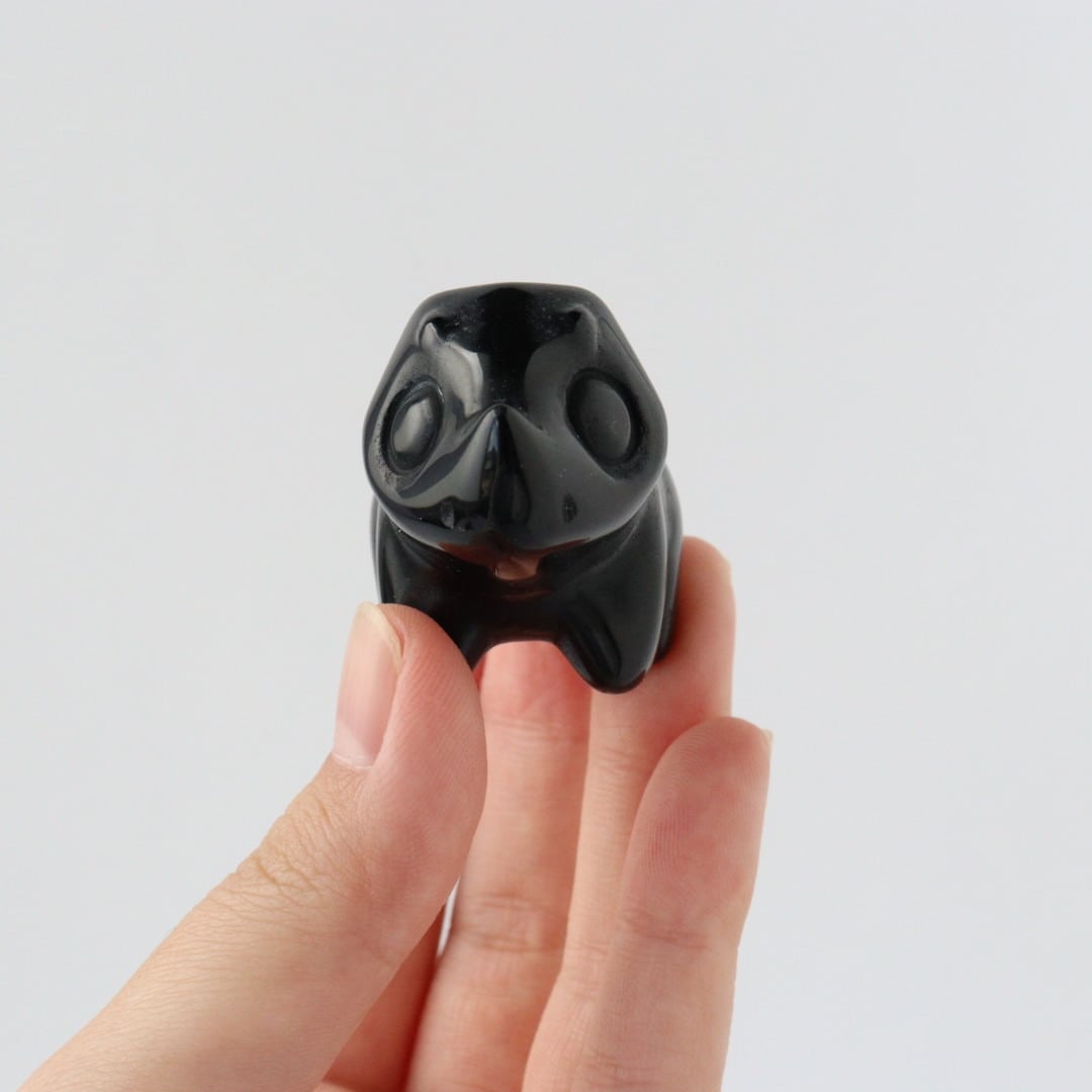 こちらは、丸みのあるフォルムと大きな瞳が印象的なブラックオブシディアンのトリケラトプス。角度によって光沢が艶やかな表情が変化し、可愛らしさと石の力強さが同時に楽しめます。