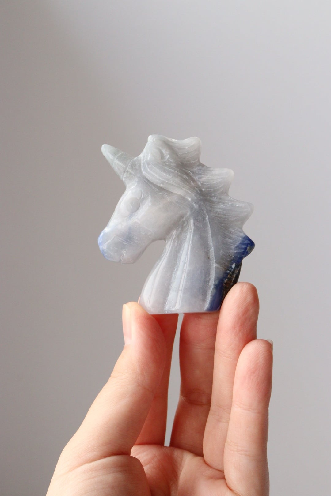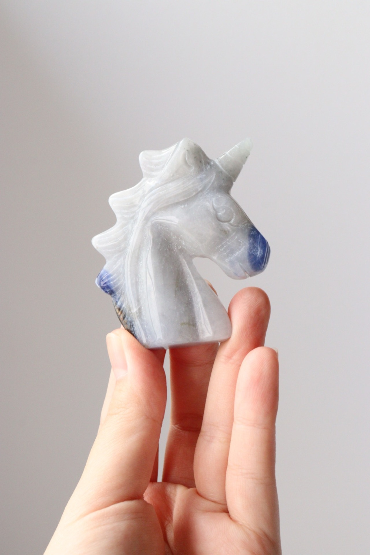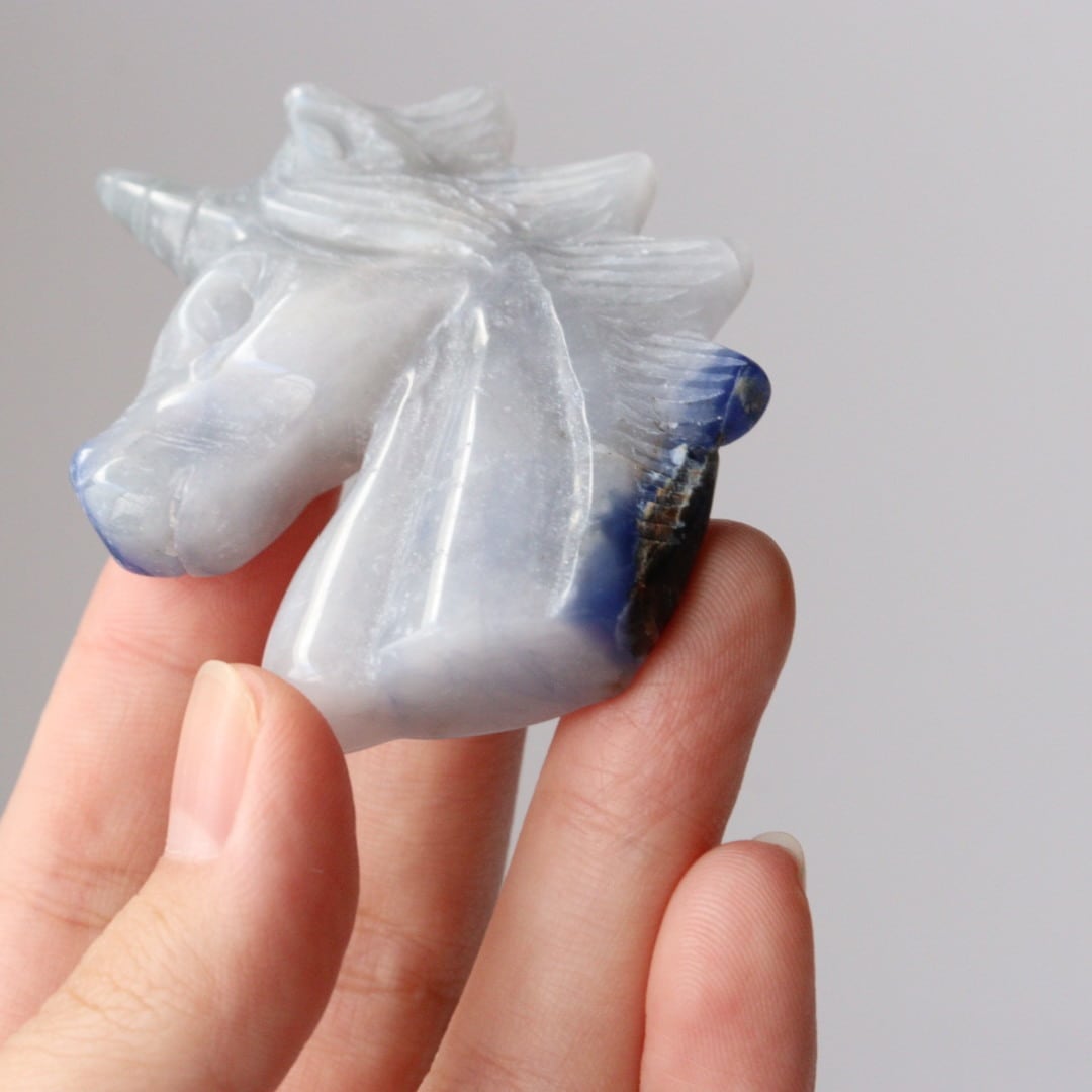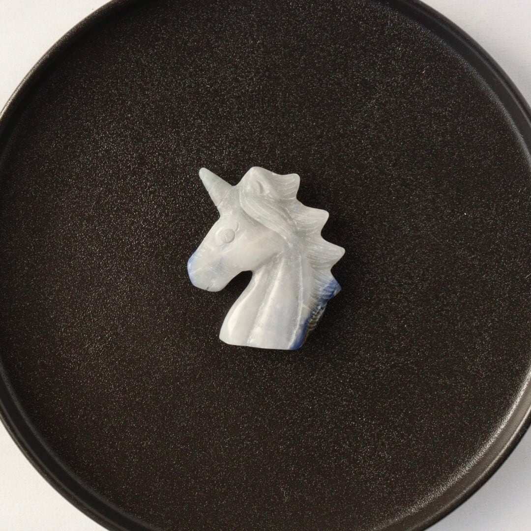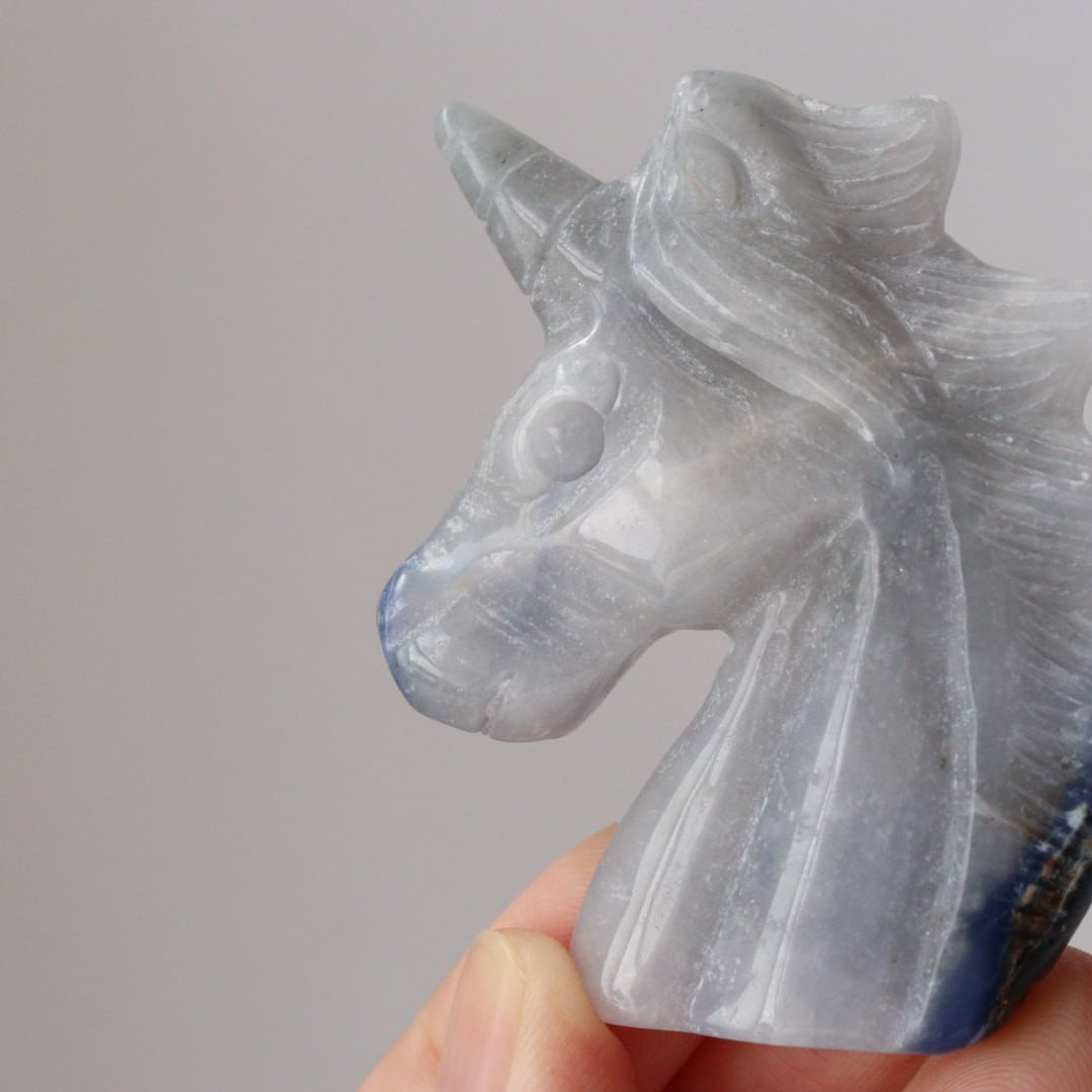 こちらは、淡いブルーグレーがめずらしいソーダライトのユニコーン。