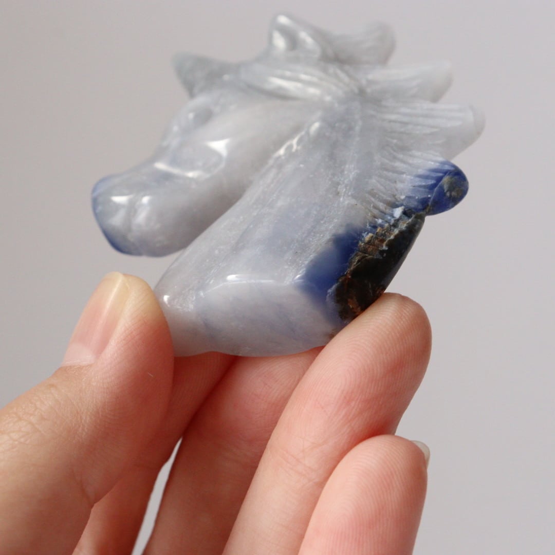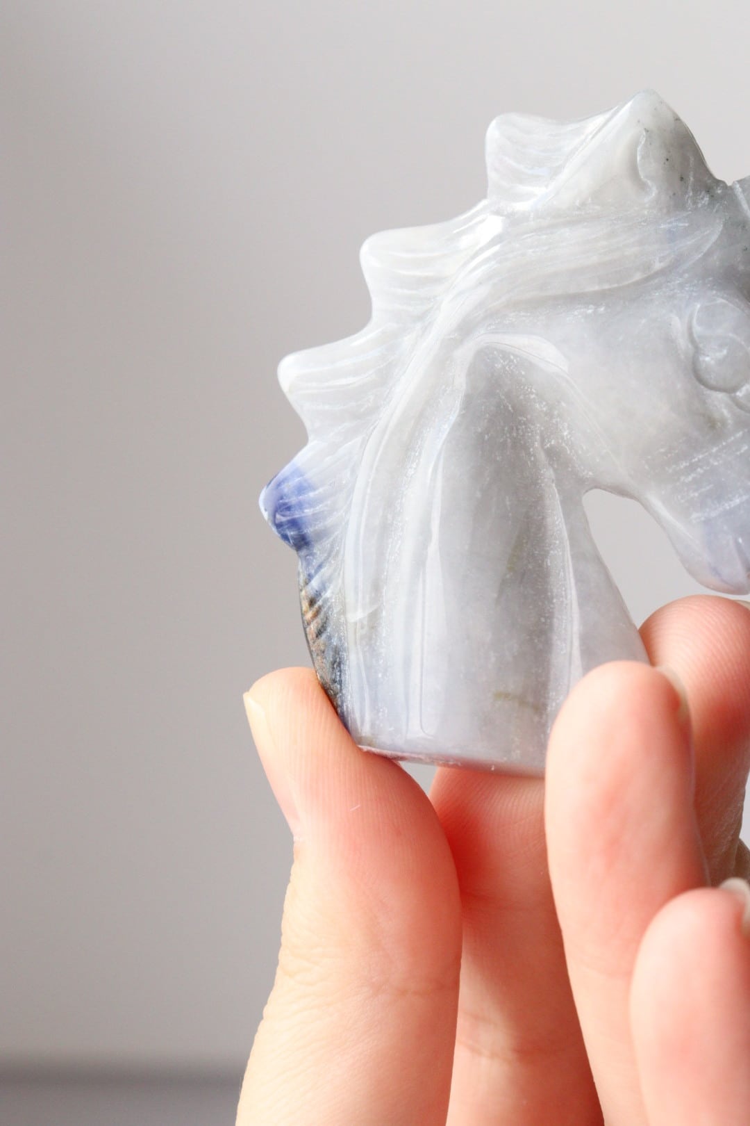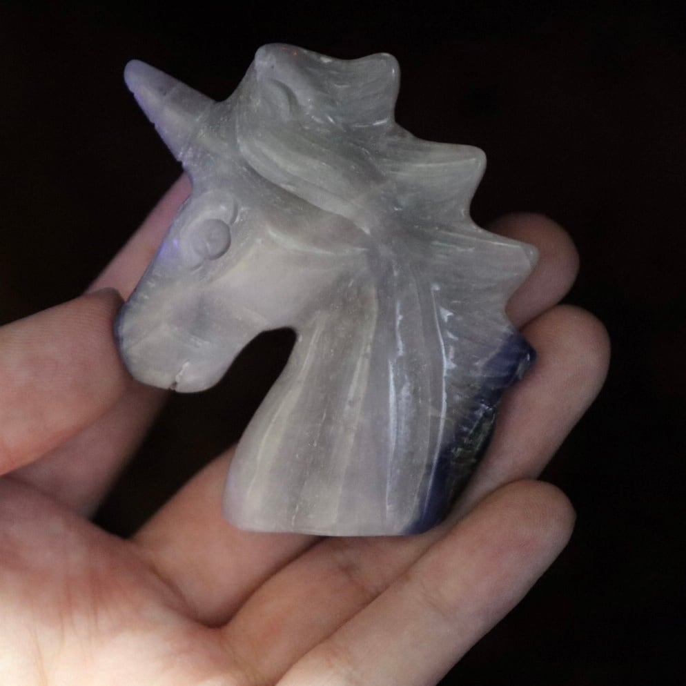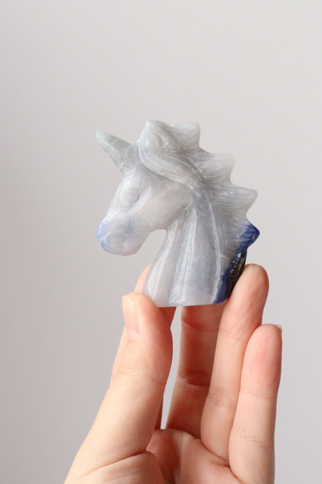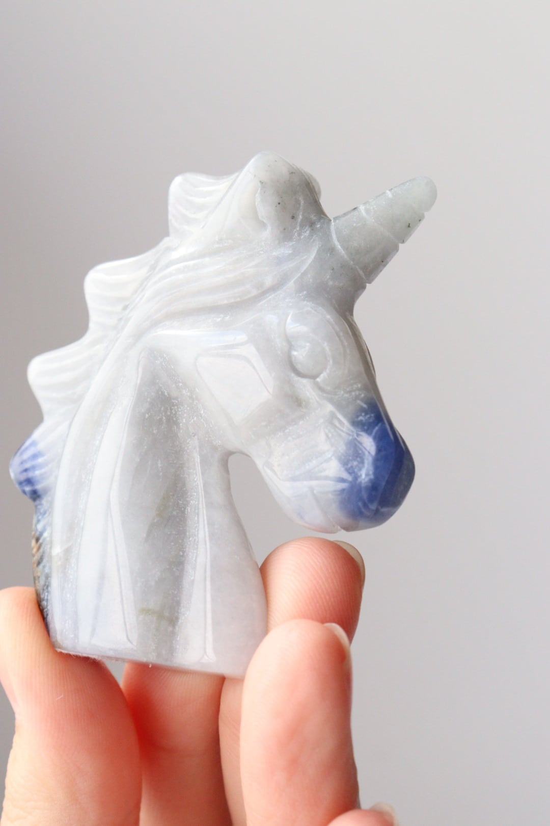 こちらは、淡いブルーグレーがめずらしいソーダライトのユニコーン。