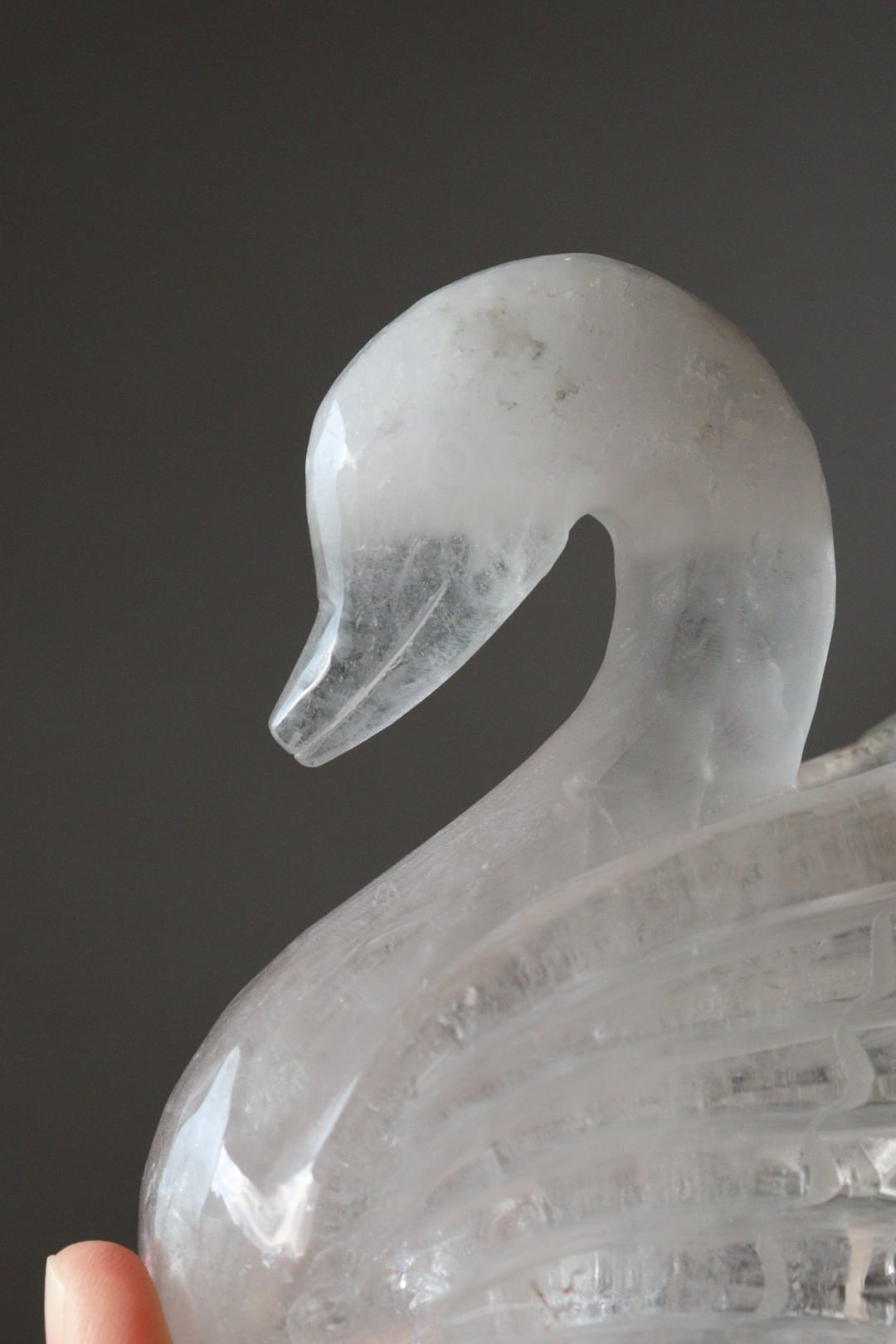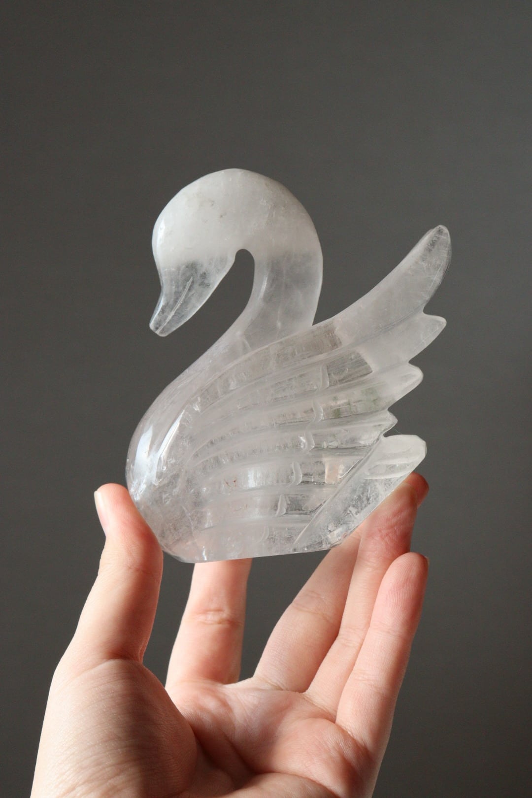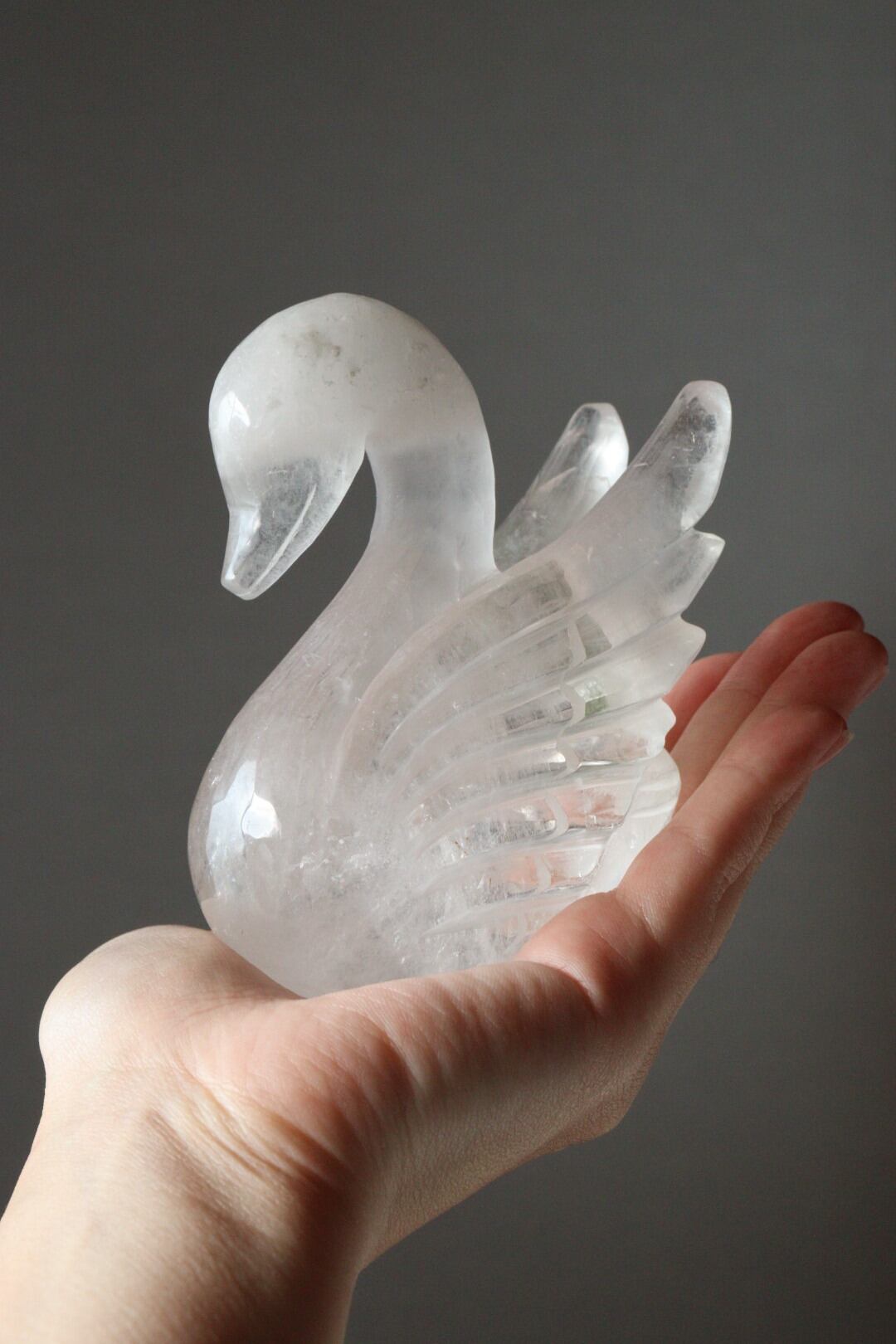 澄んだ輝きが広がる、クリアクォーツの白鳥。