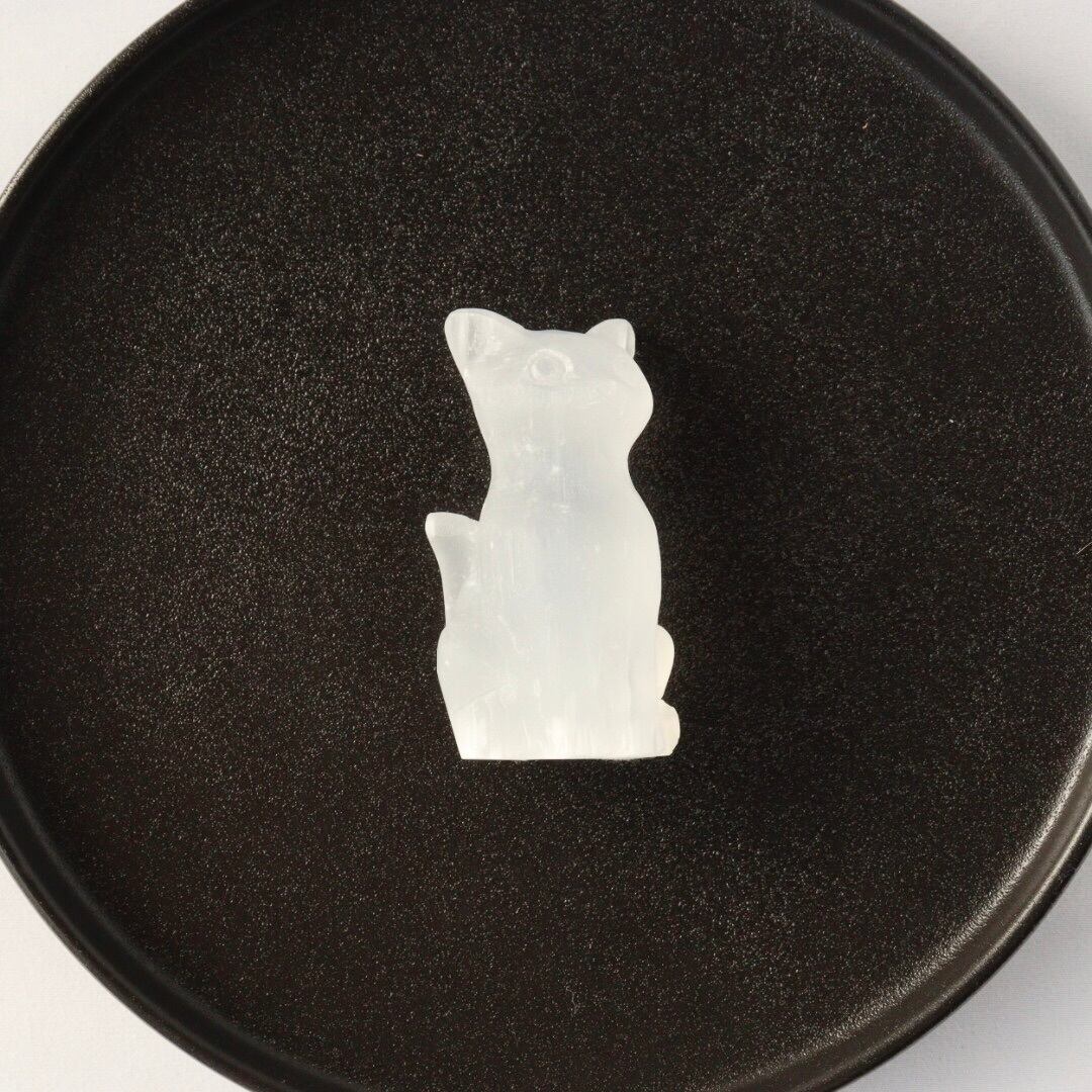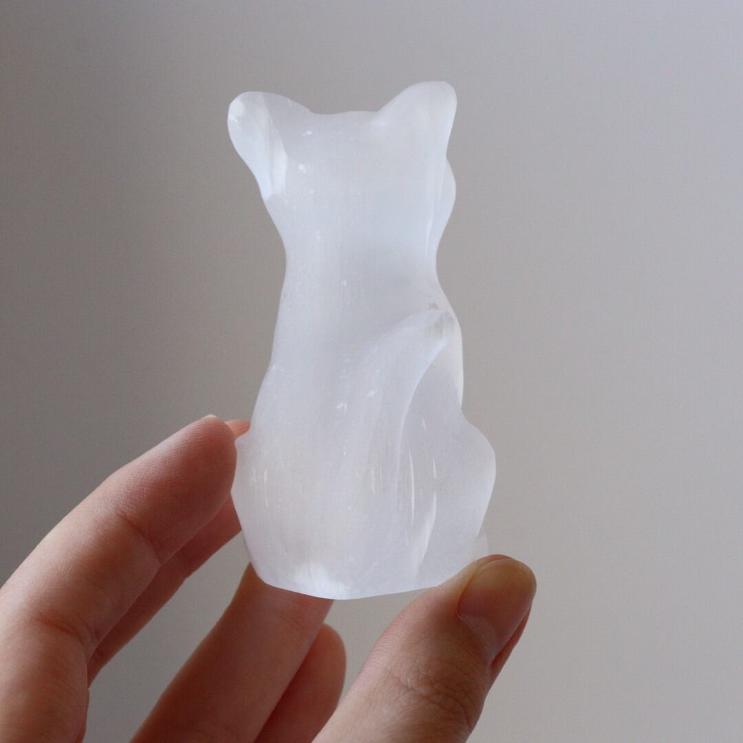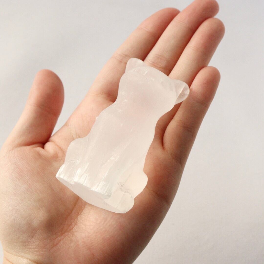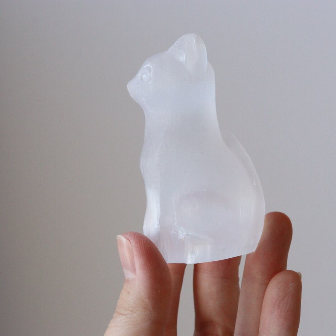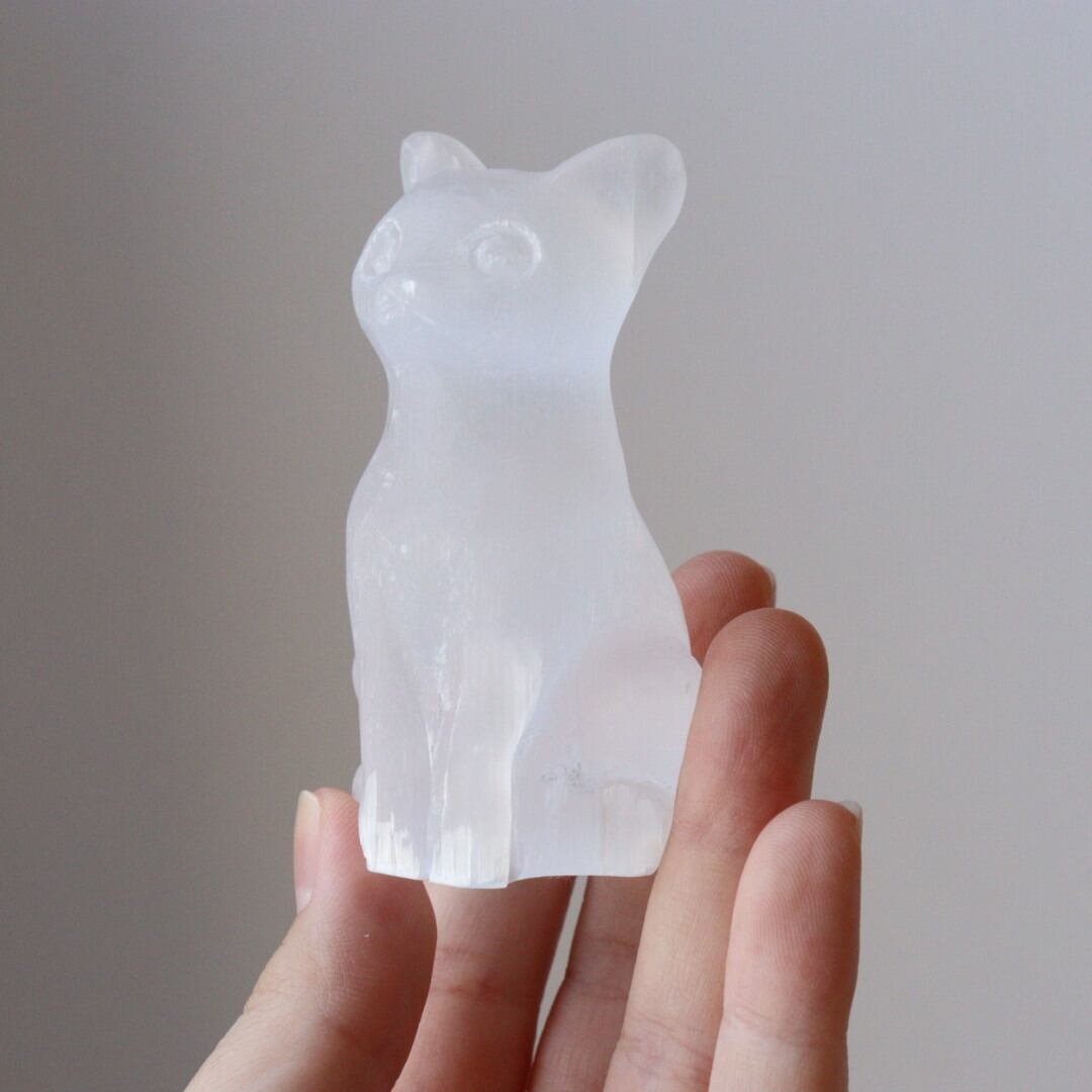 こちらは、半透明の結晶美が際立つセレナイトのねこ。