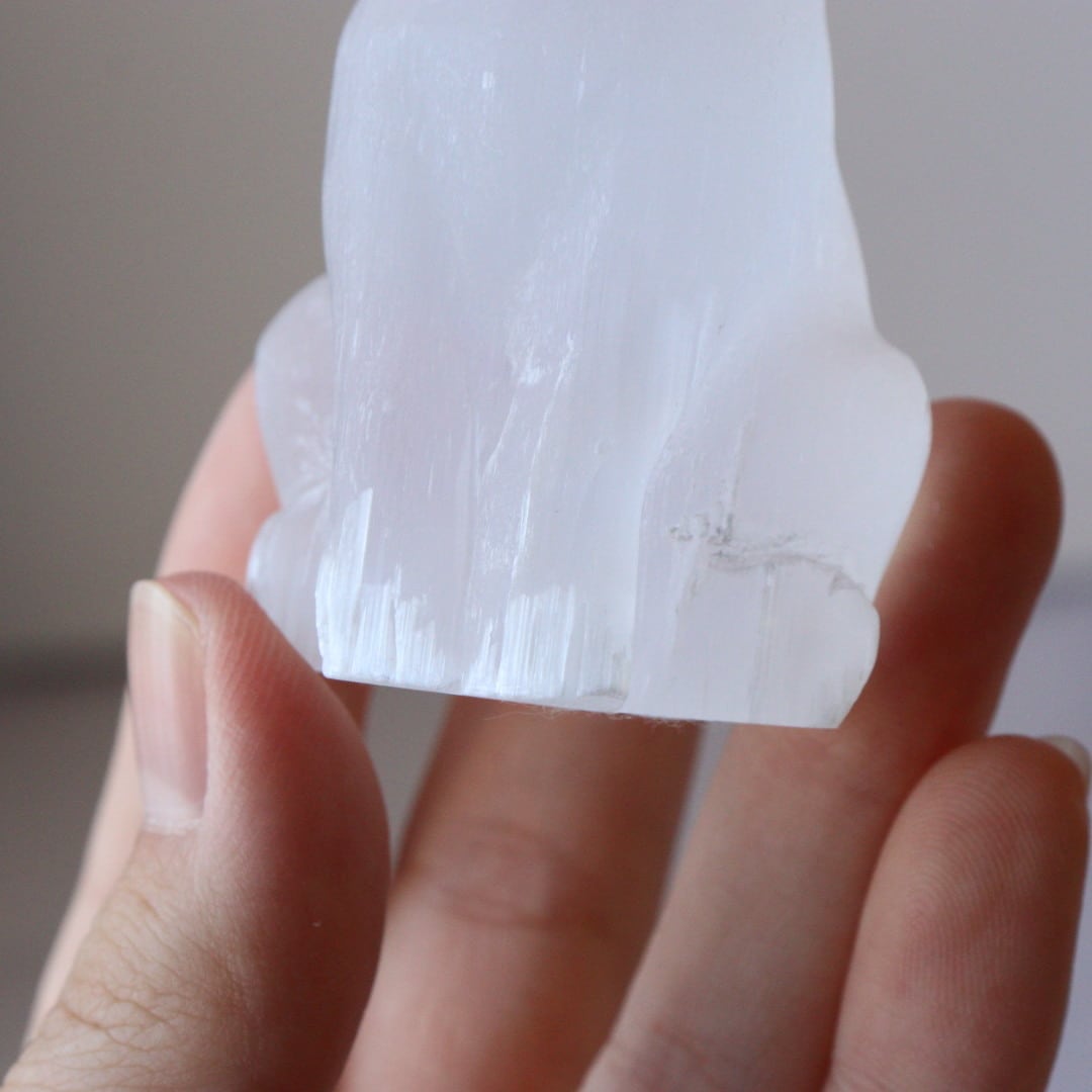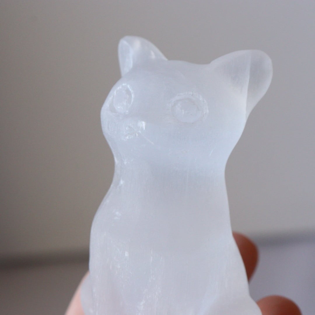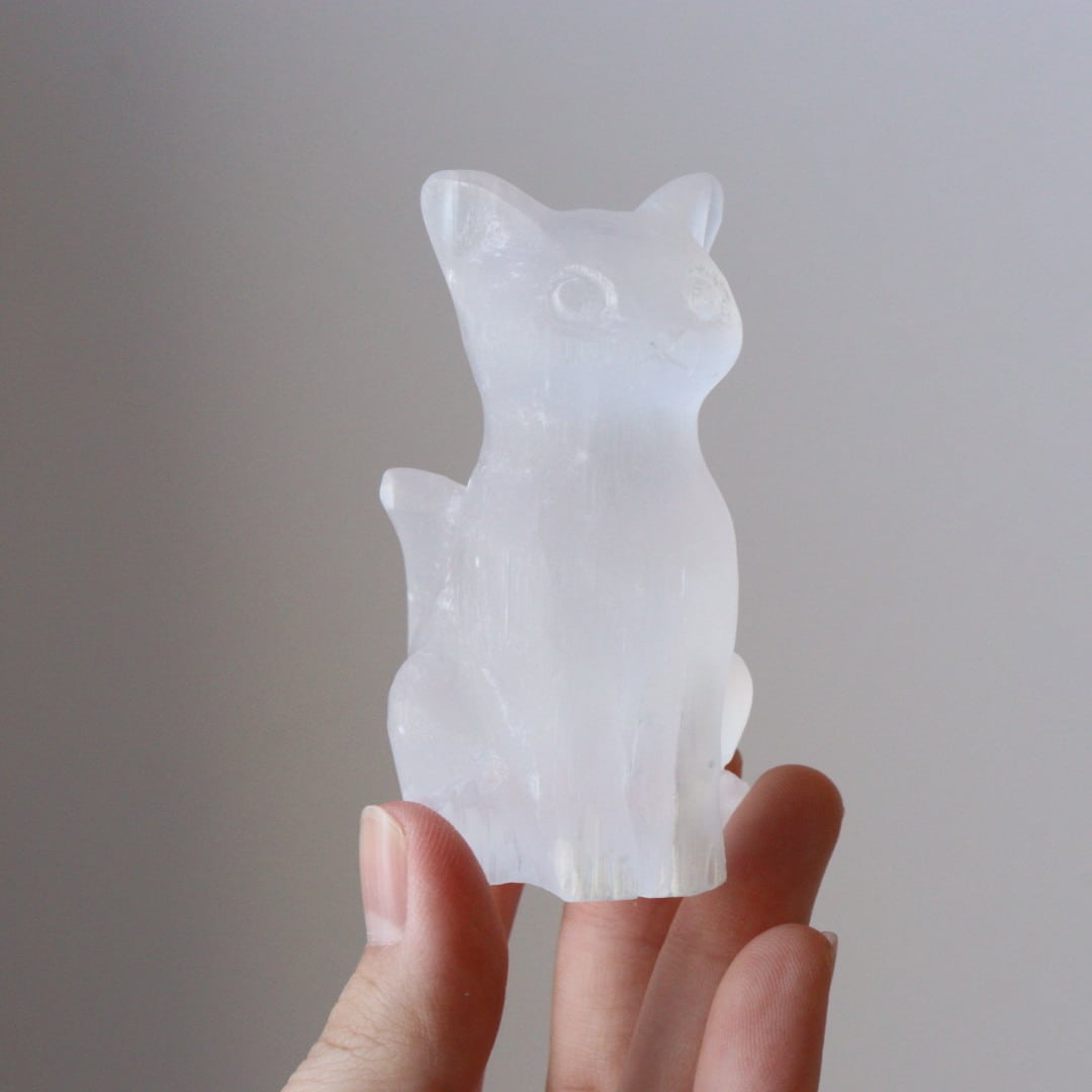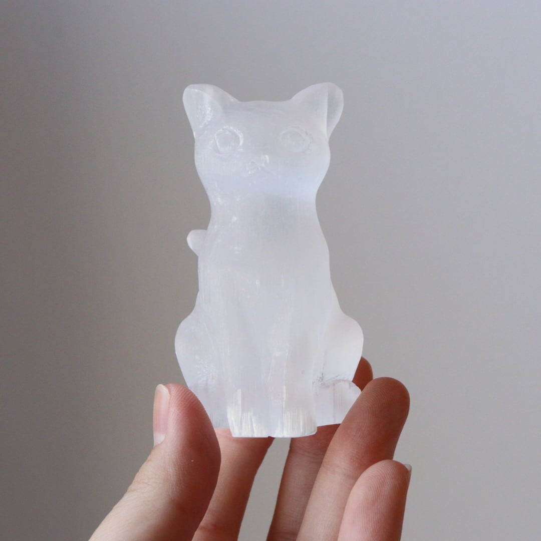 こちらは、半透明の結晶美が際立つセレナイトのねこ。
