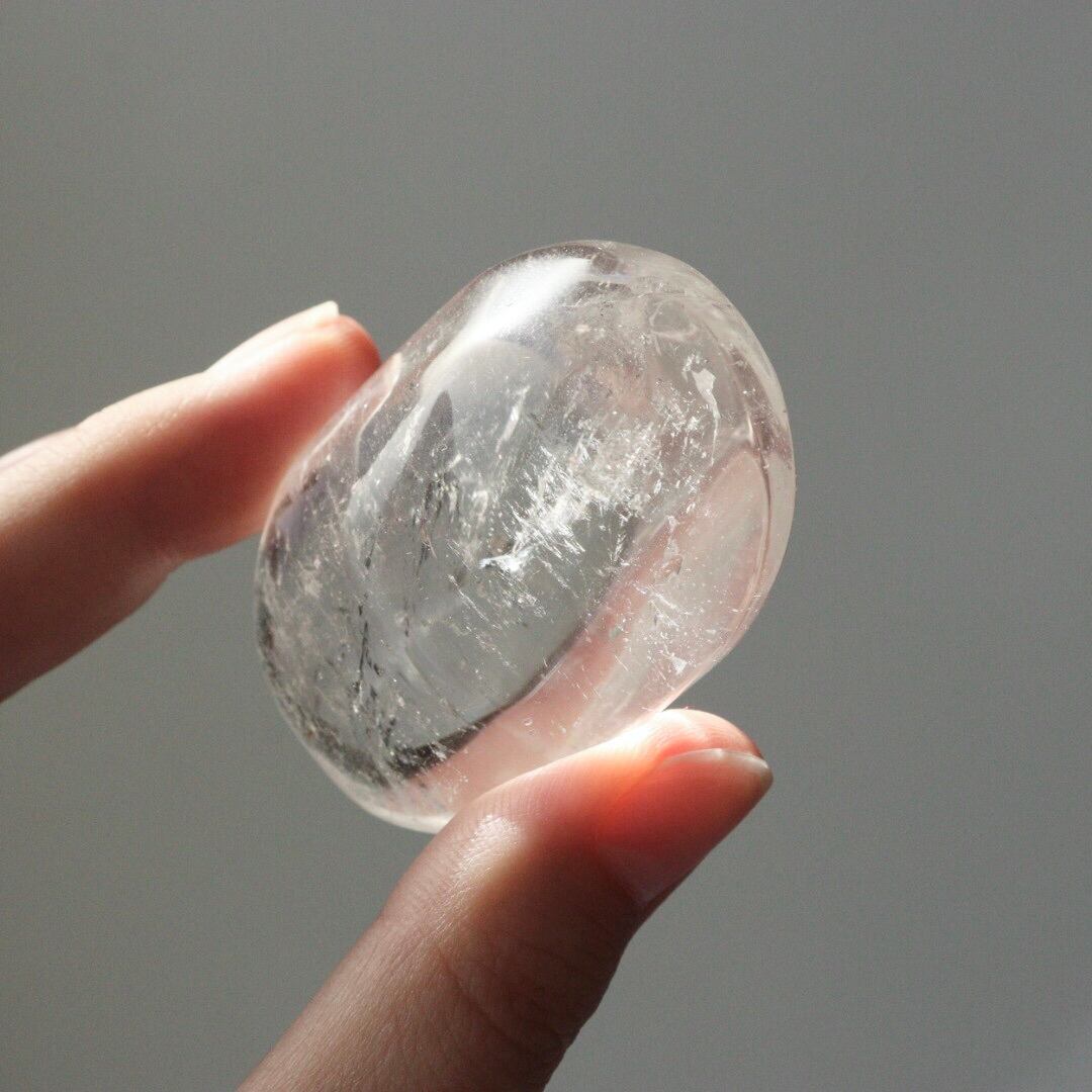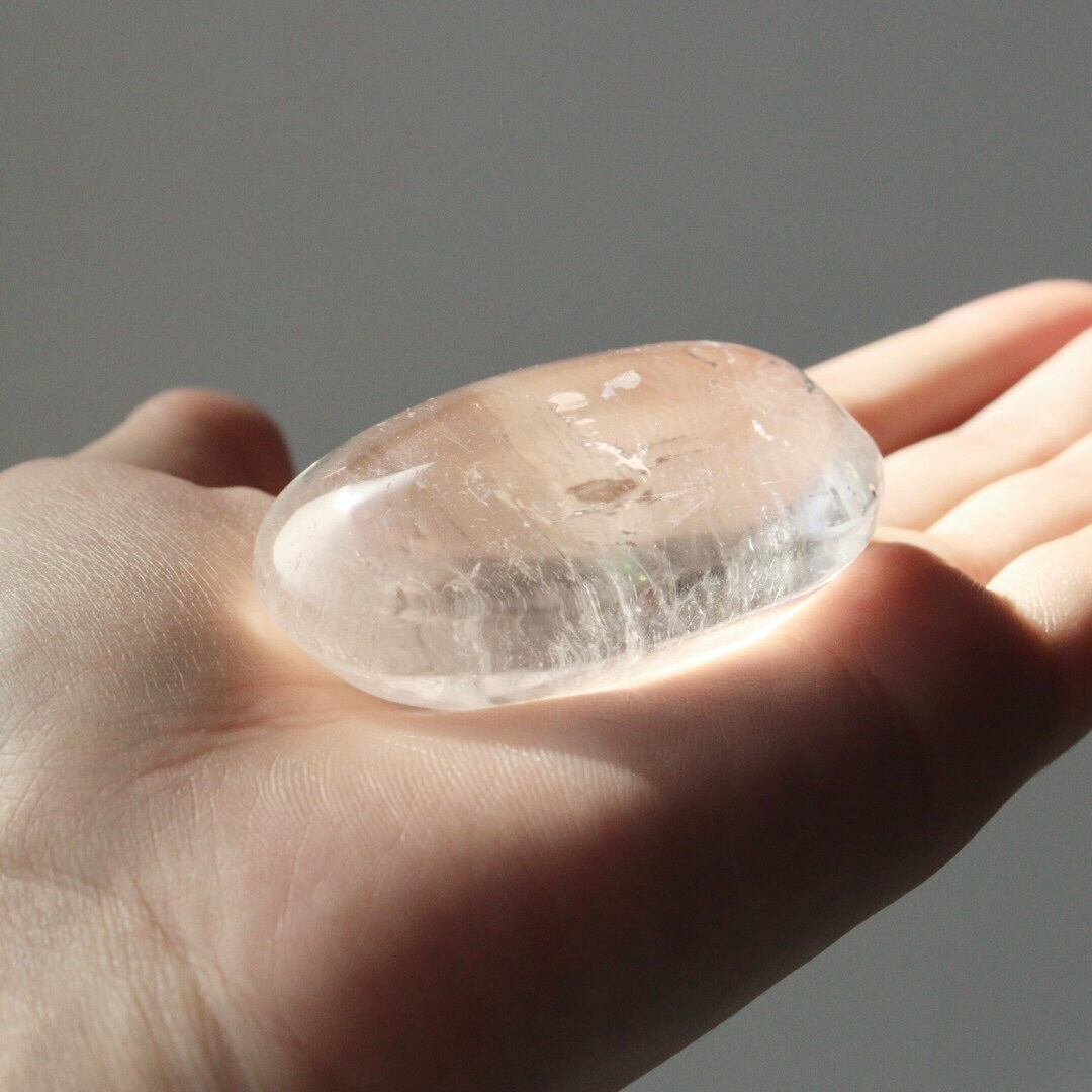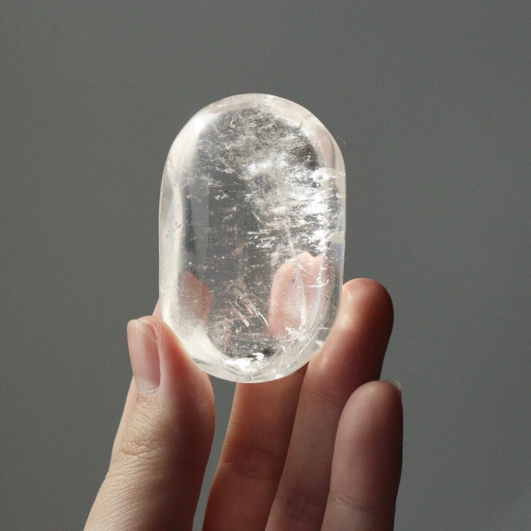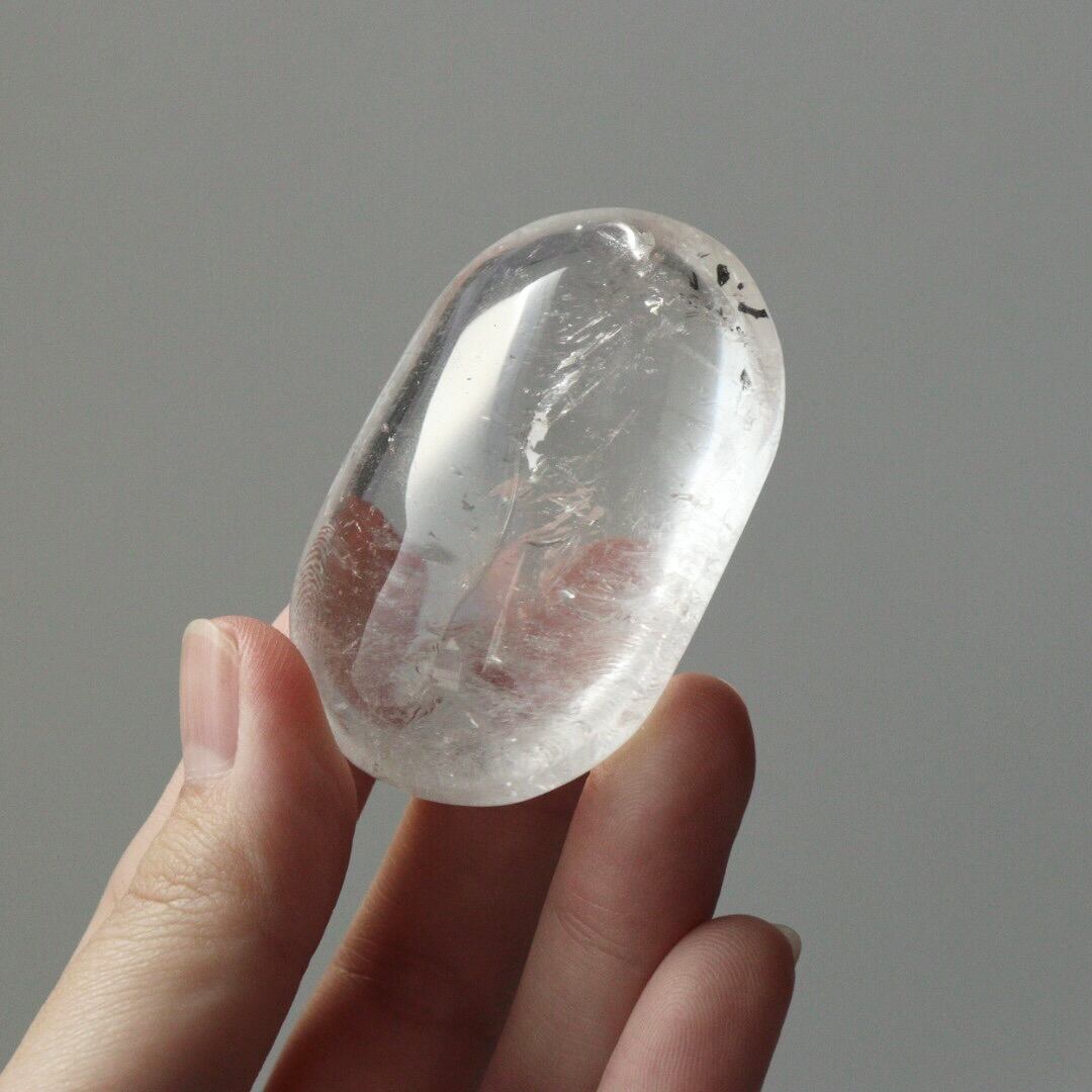 ぽってりとしたフォルムに驚くほどの透明感をもつ、クリアクォーツの握り石。