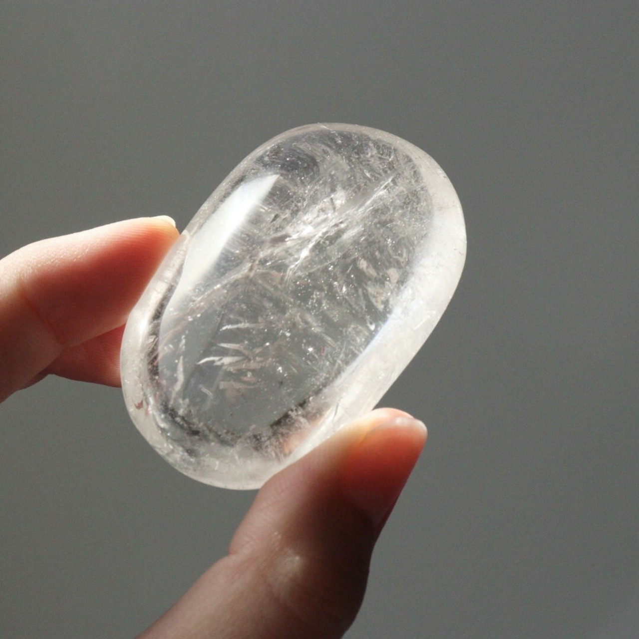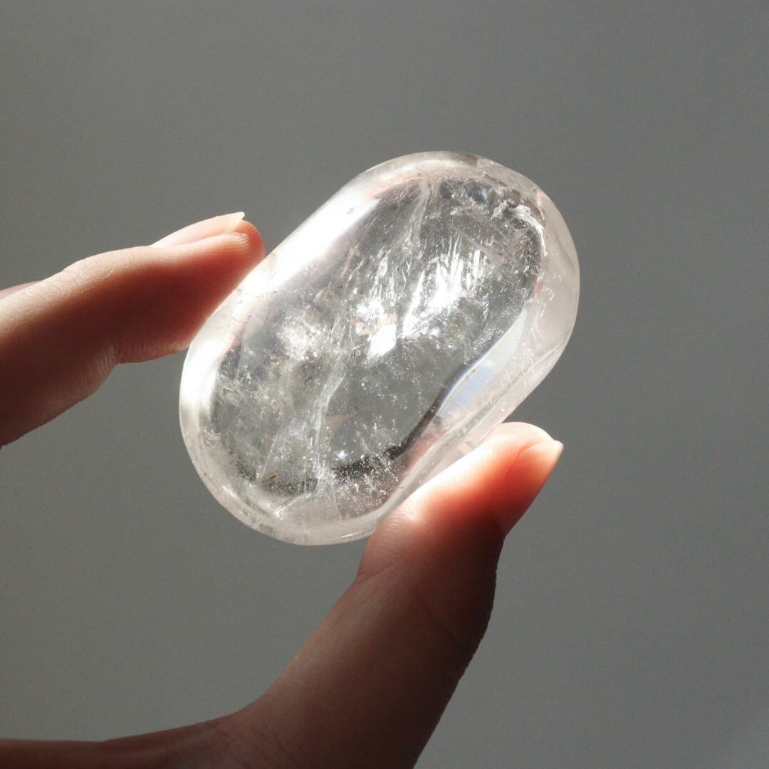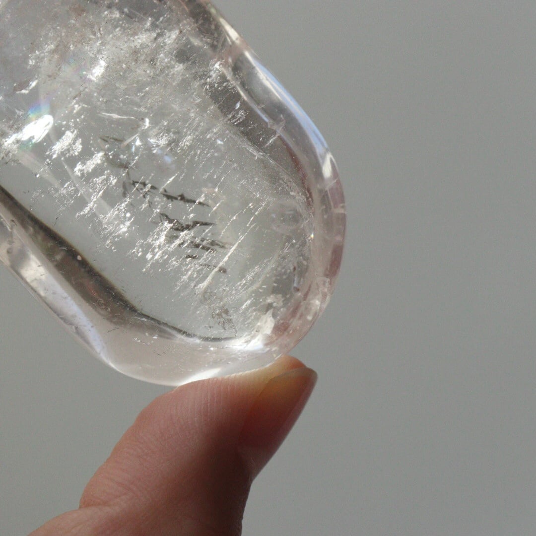 ぽってりとしたフォルムに驚くほどの透明感をもつ、クリアクォーツの握り石。