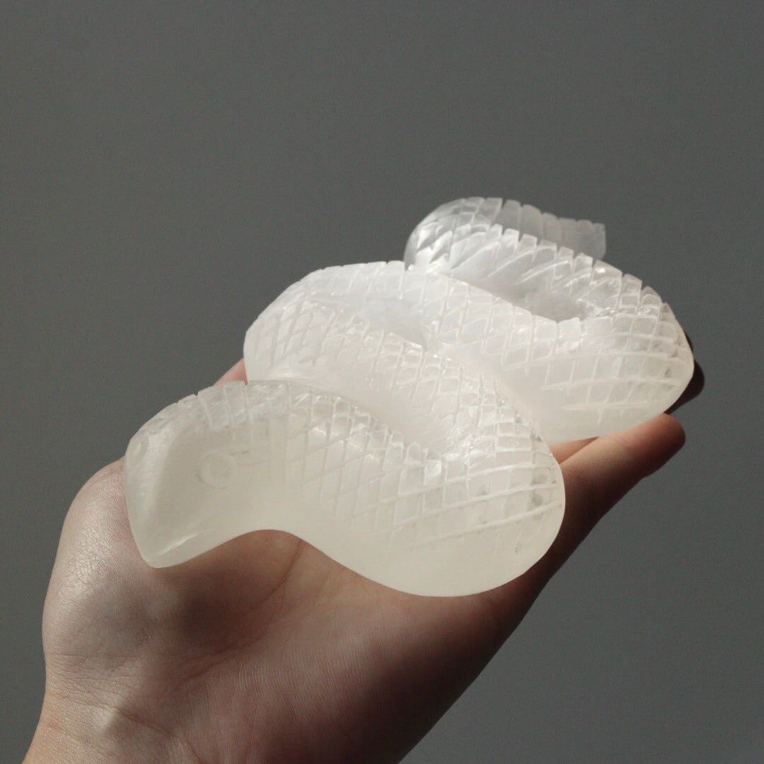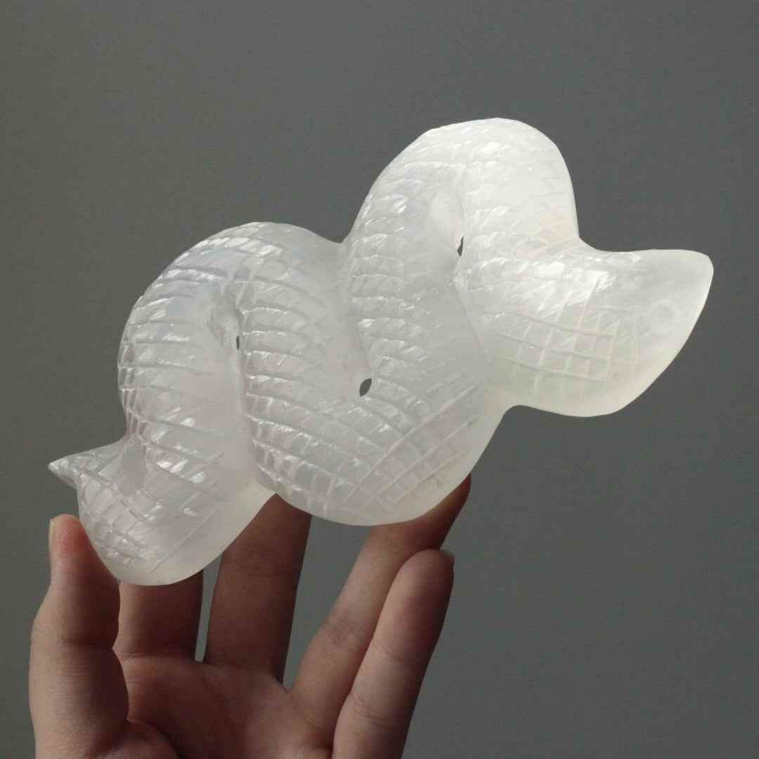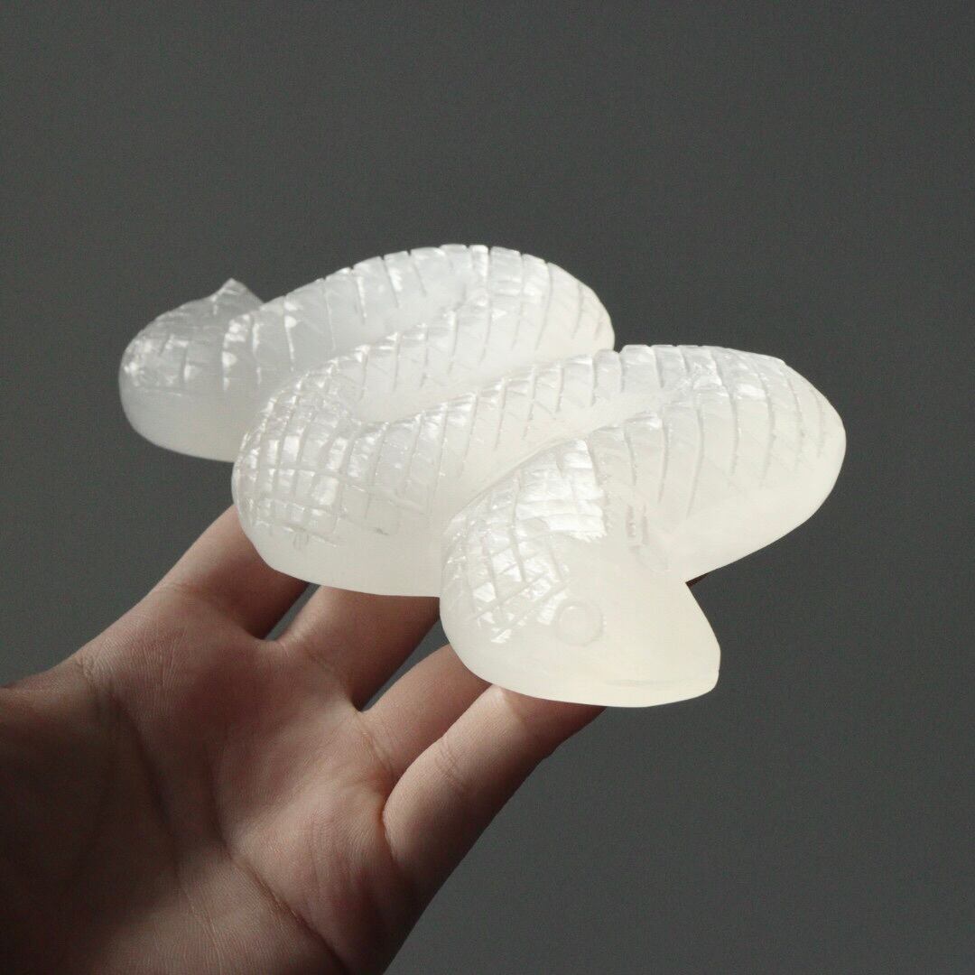 こちらの白蛇は、セレナイトらしい半透明の光をまとう美しいひとつ。
