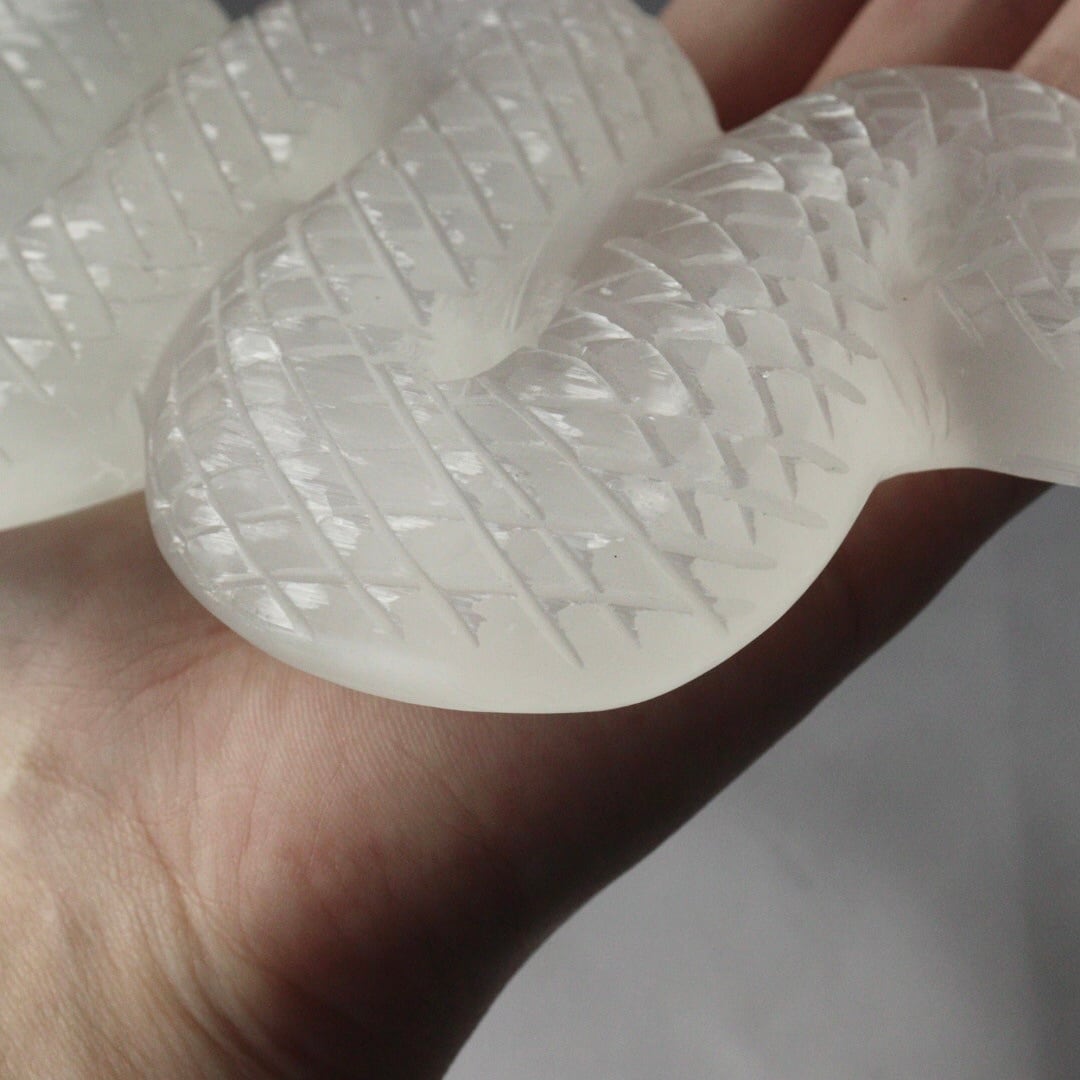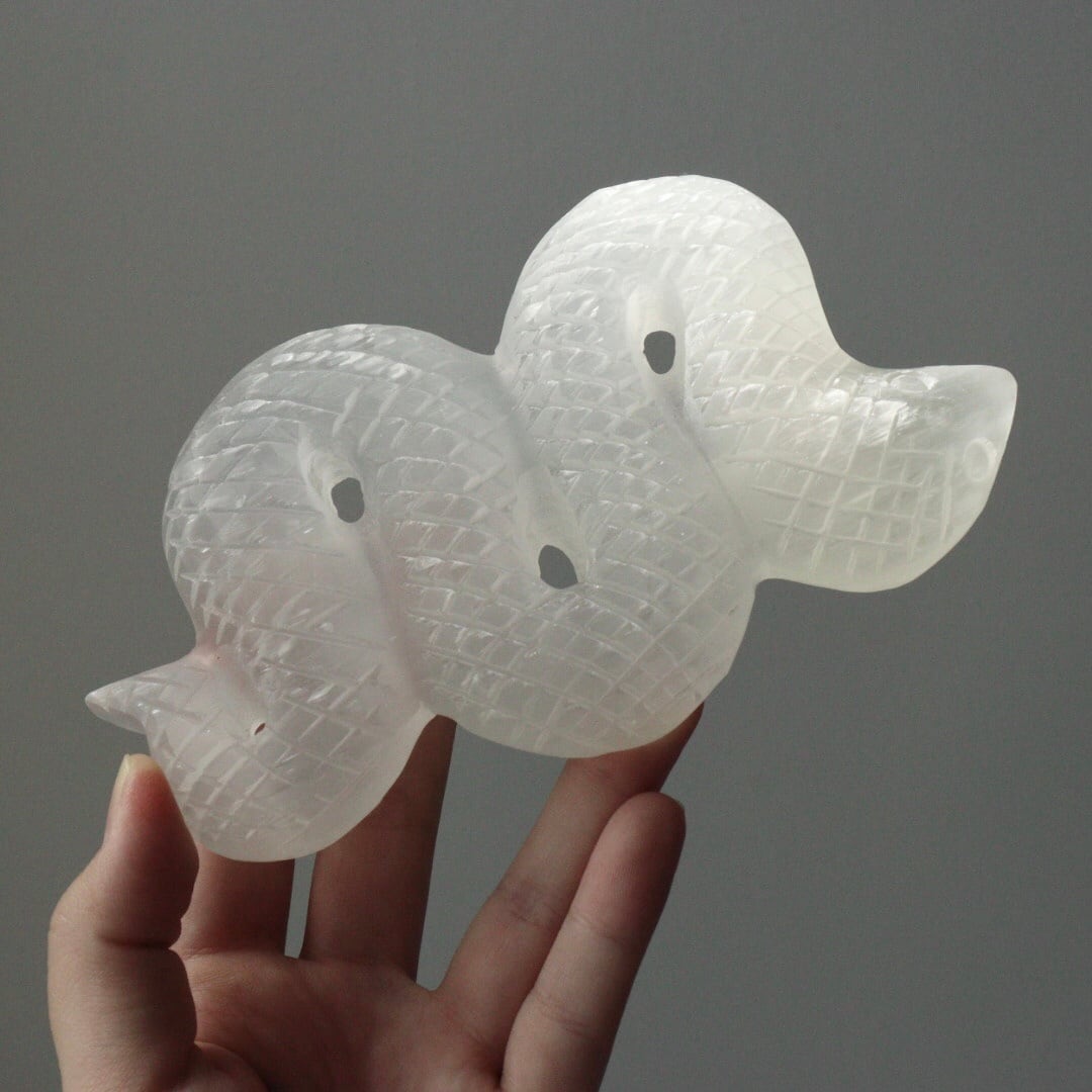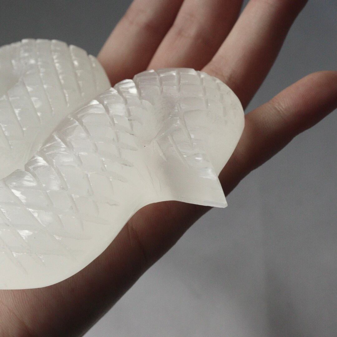 こちらの白蛇は、セレナイトらしい半透明の光をまとう美しいひとつ。