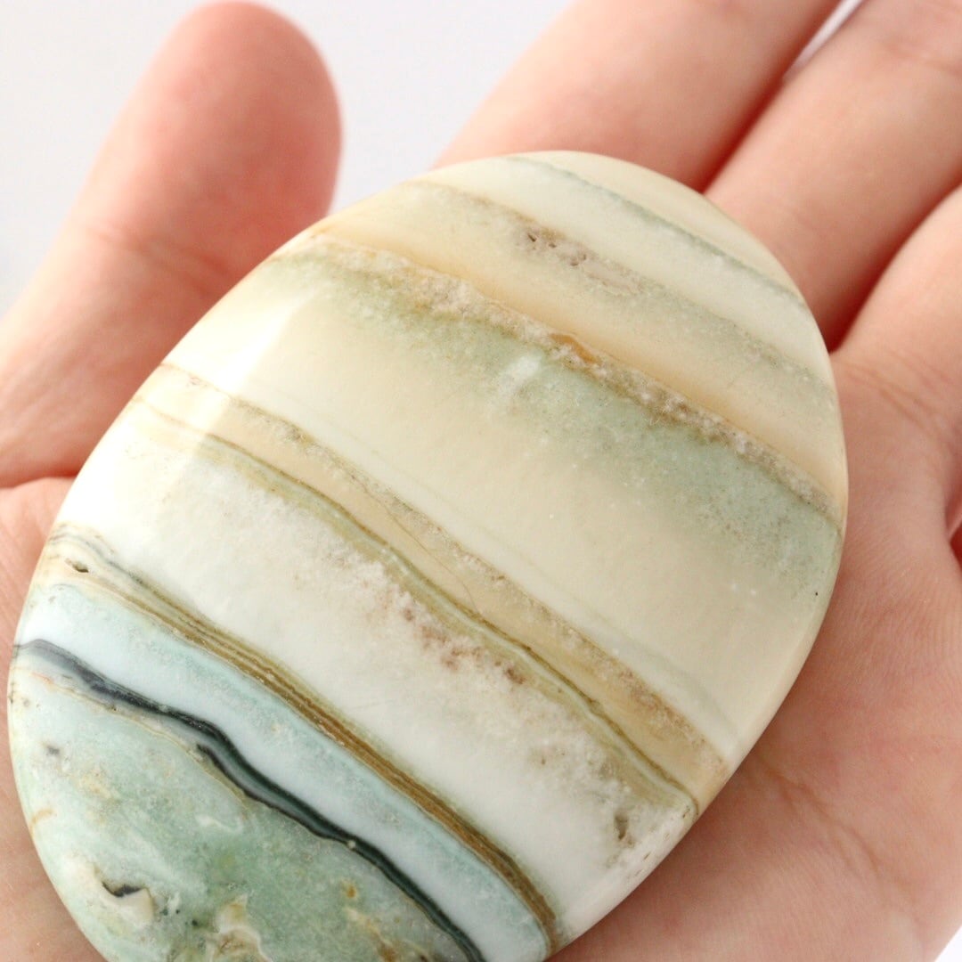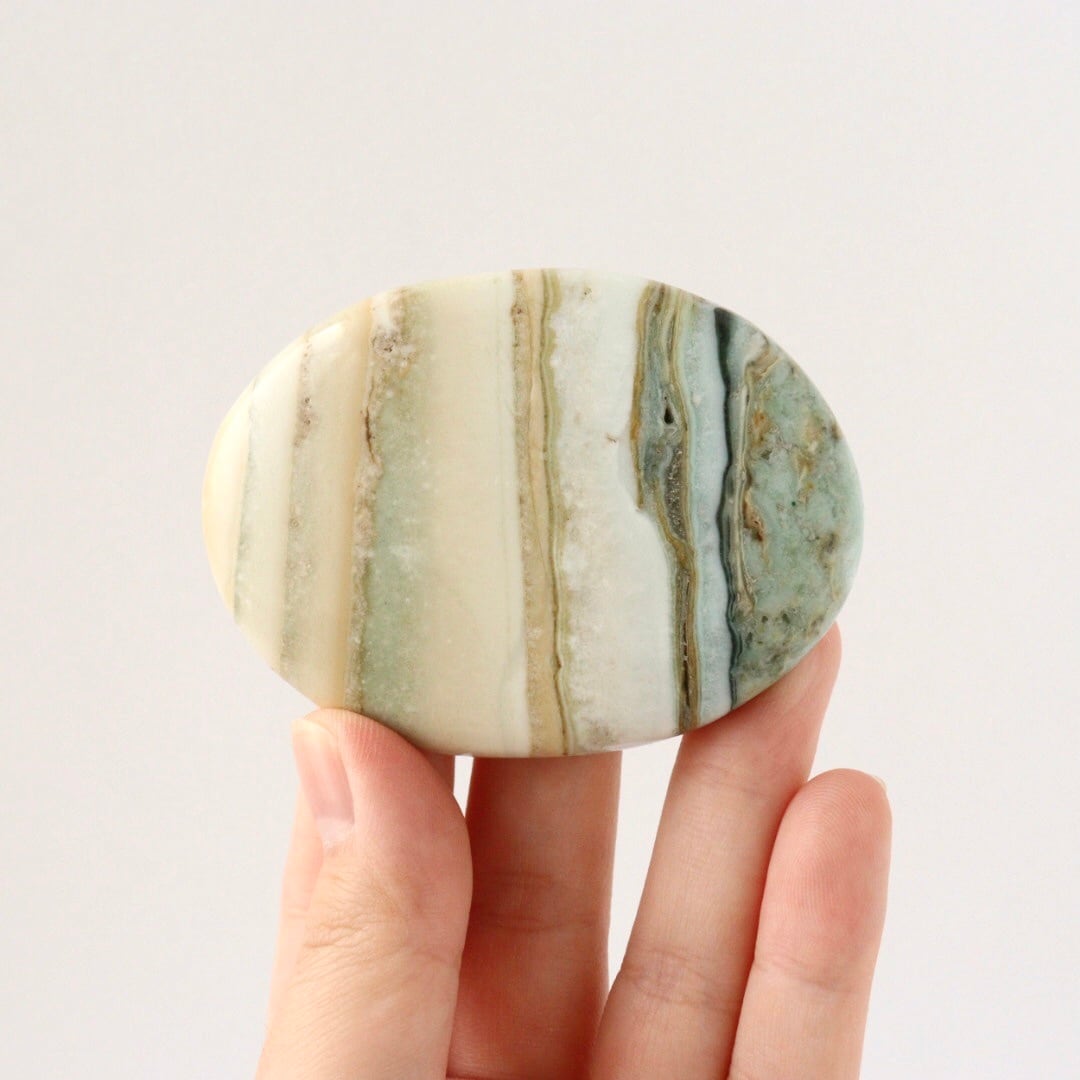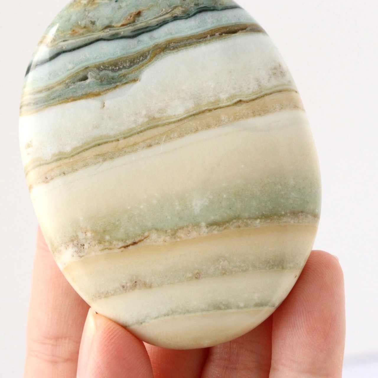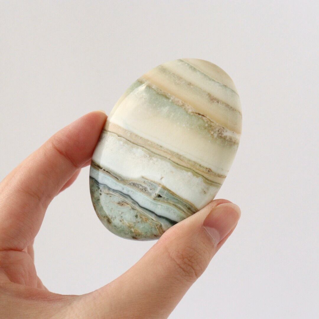 木漏れ日がそのまま石になったような、あたたかみのあるイエローグリーンバンデッドジャスパーの握り石。