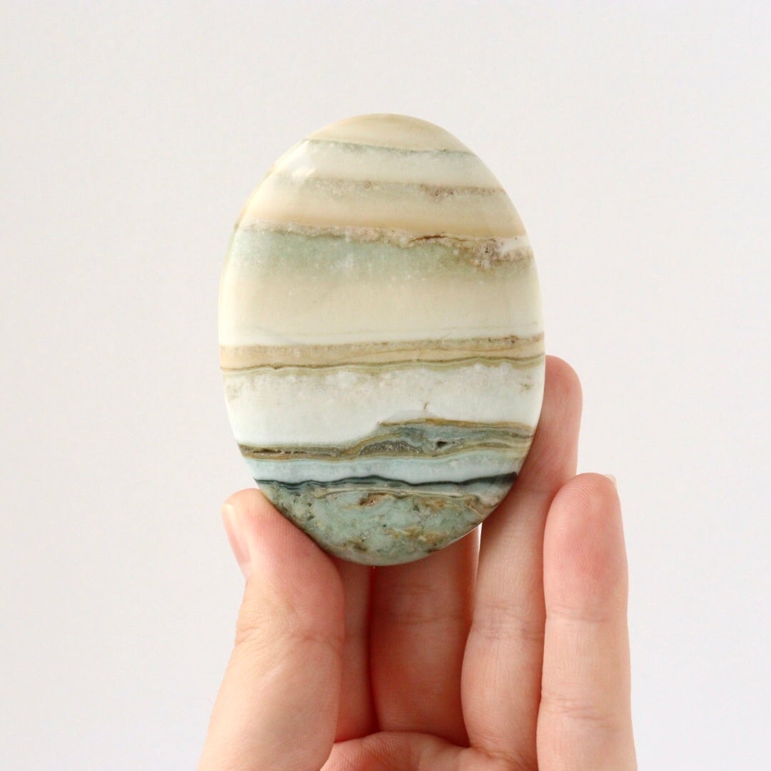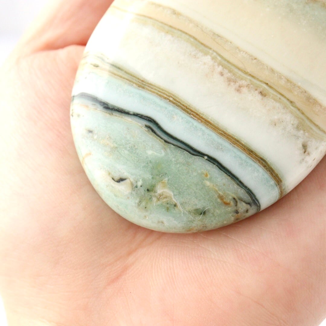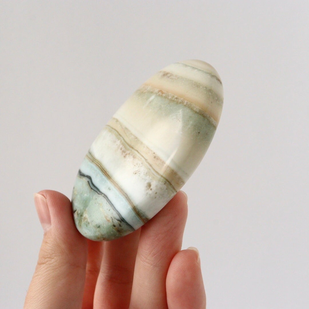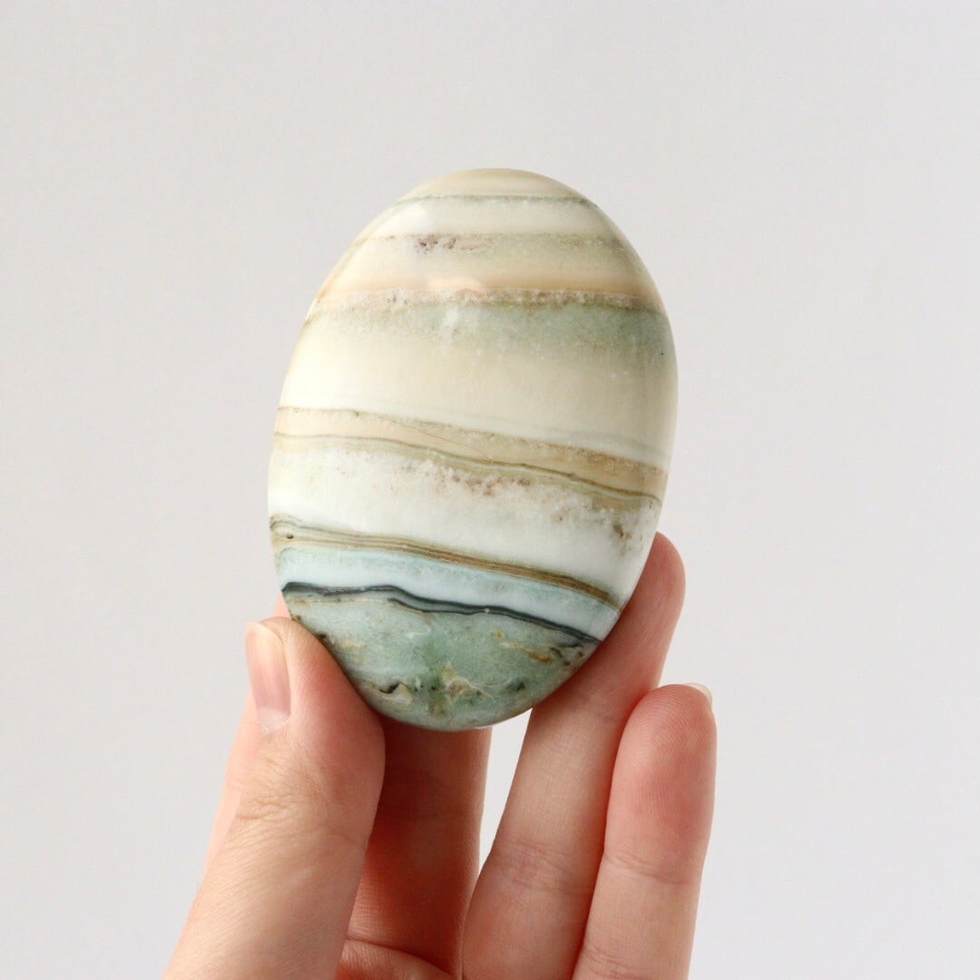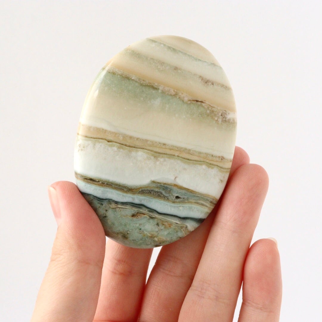 木漏れ日がそのまま石になったような、あたたかみのあるイエローグリーンバンデッドジャスパーの握り石。