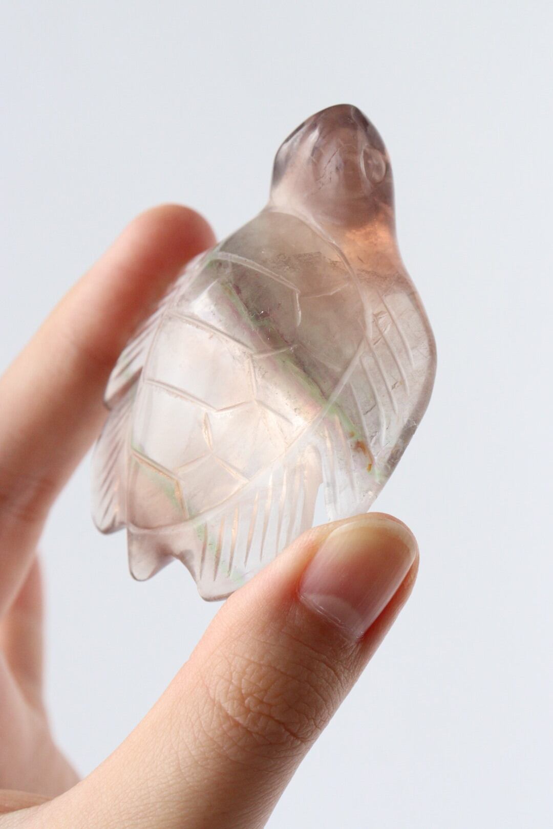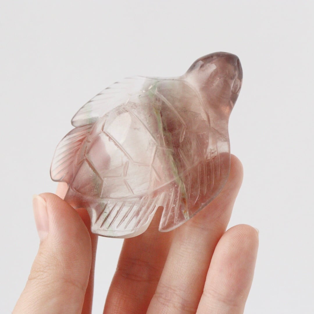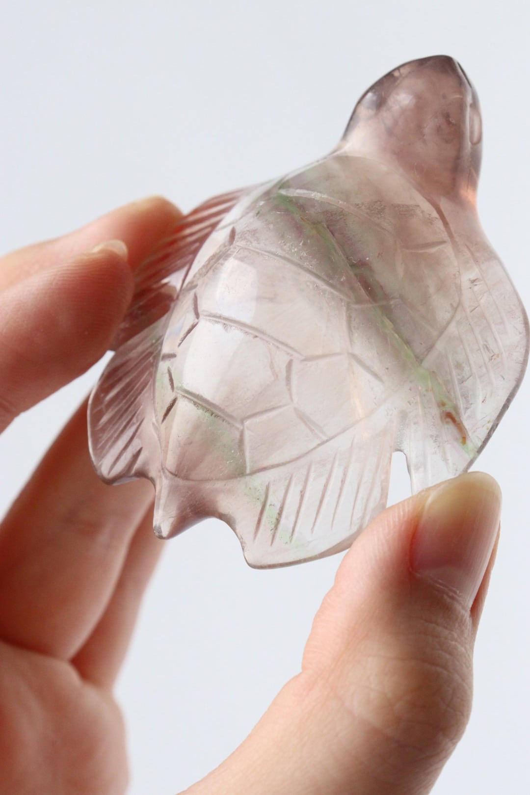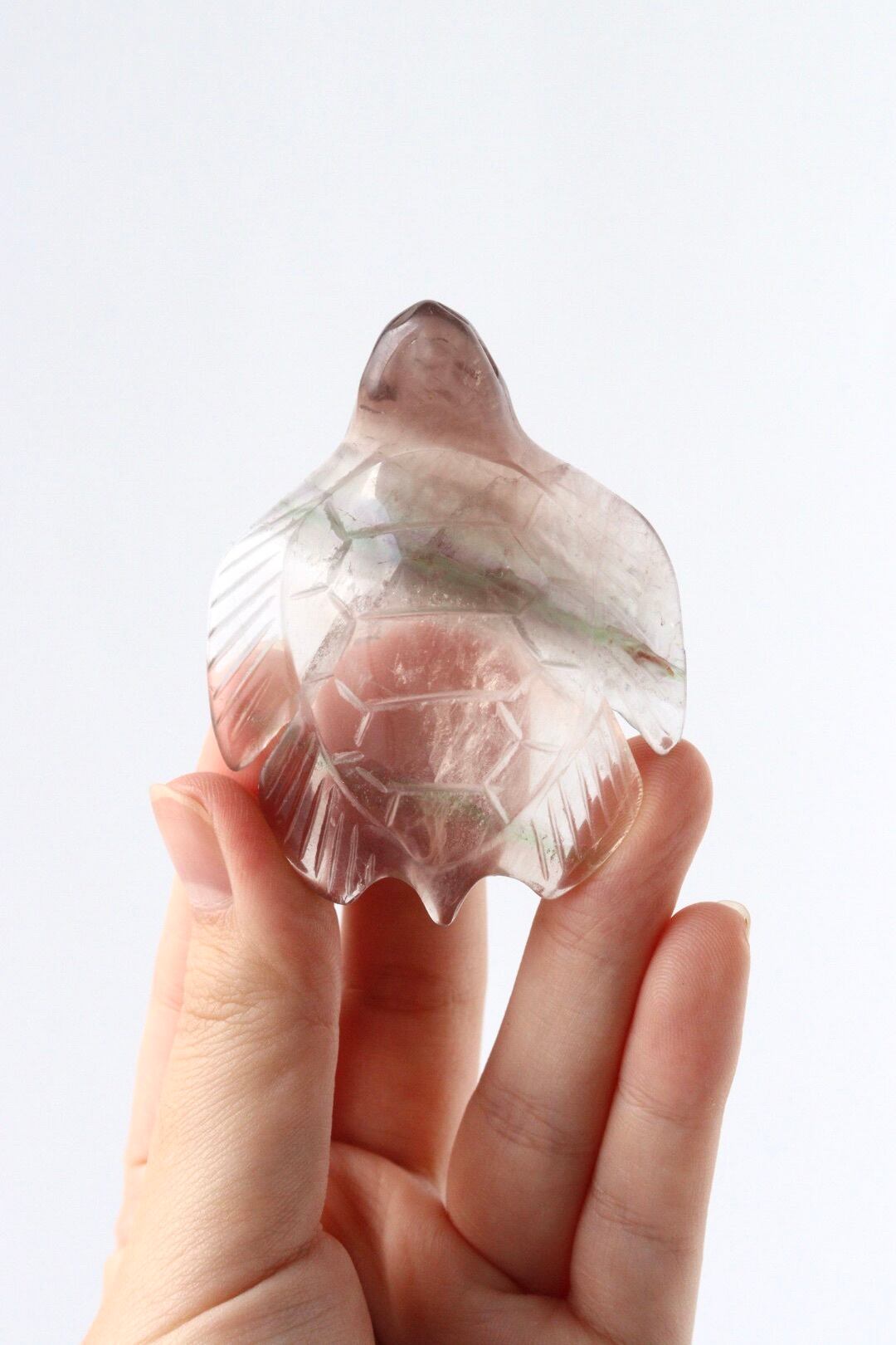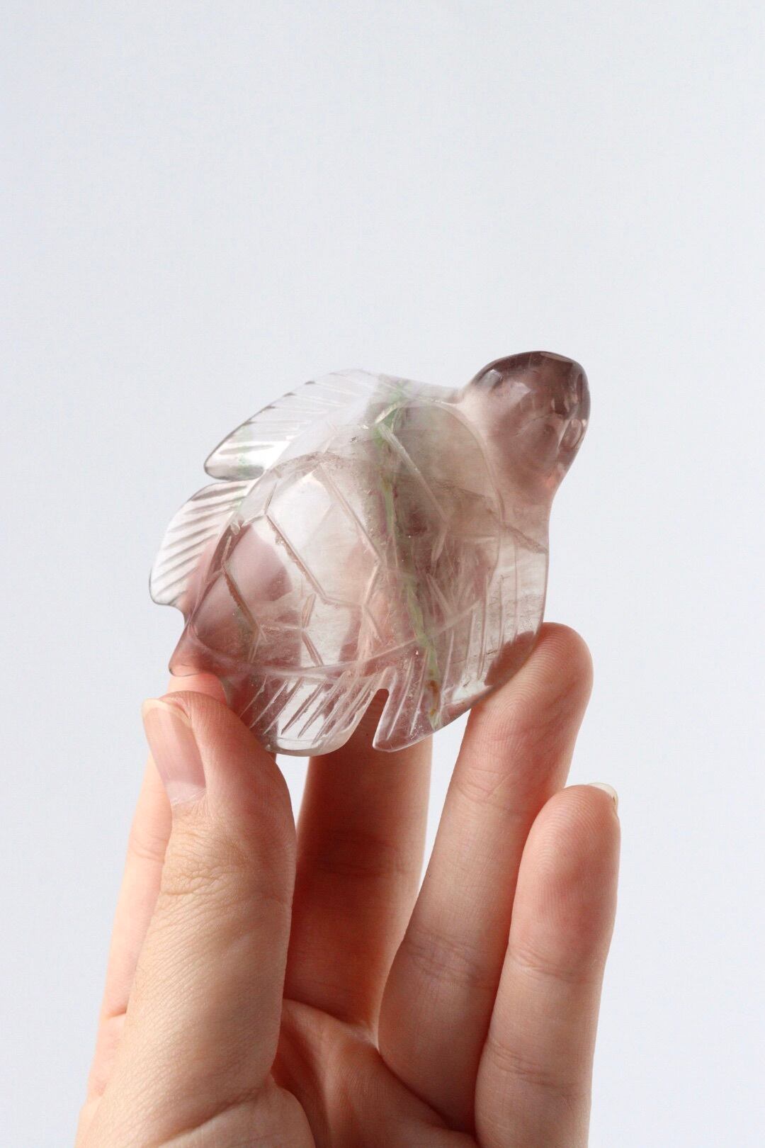 こちらは、淡いパープルカラーと、クリアでレンズのような透明感を持つクオーツ部分のコントラストが魅力のウミガメ。