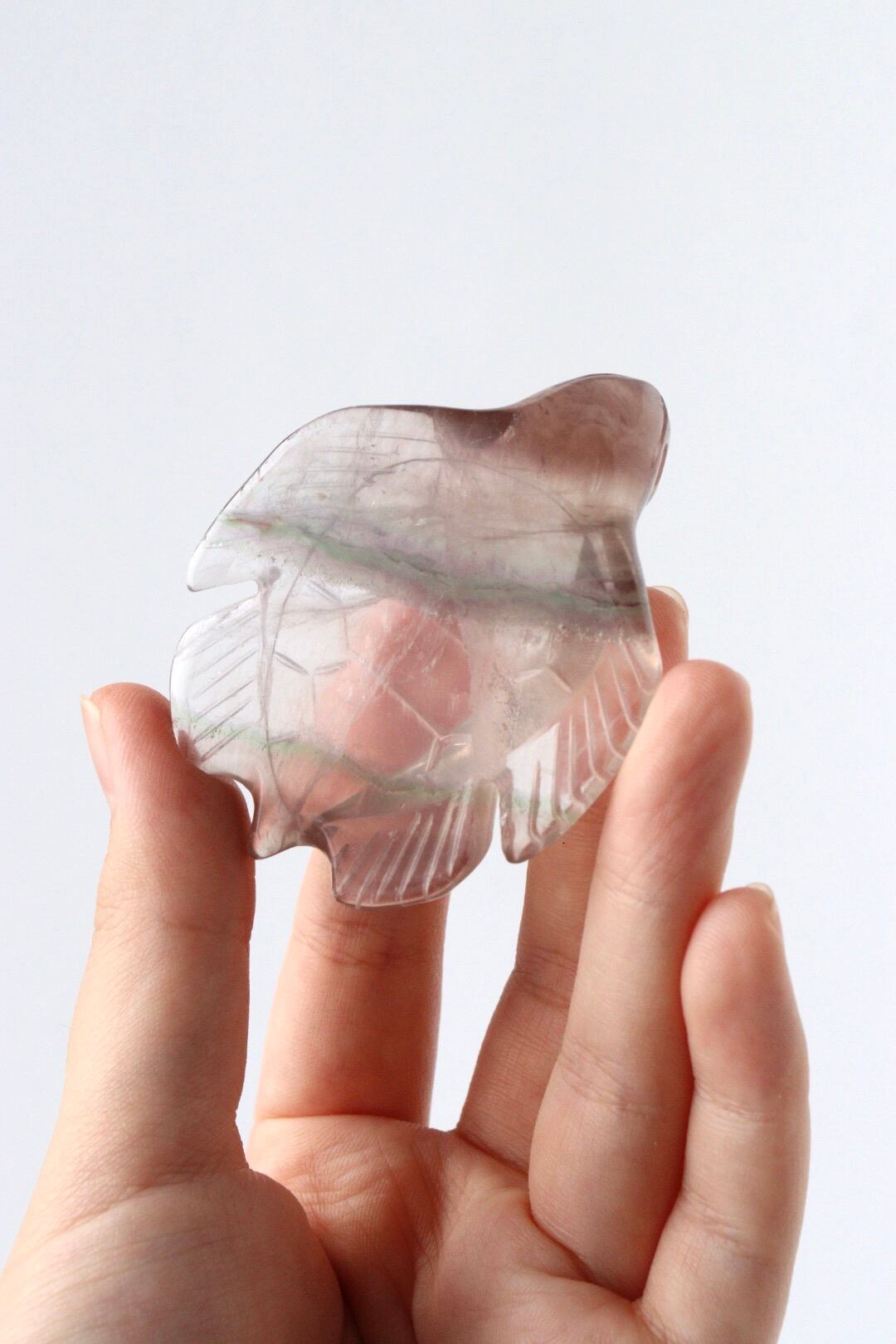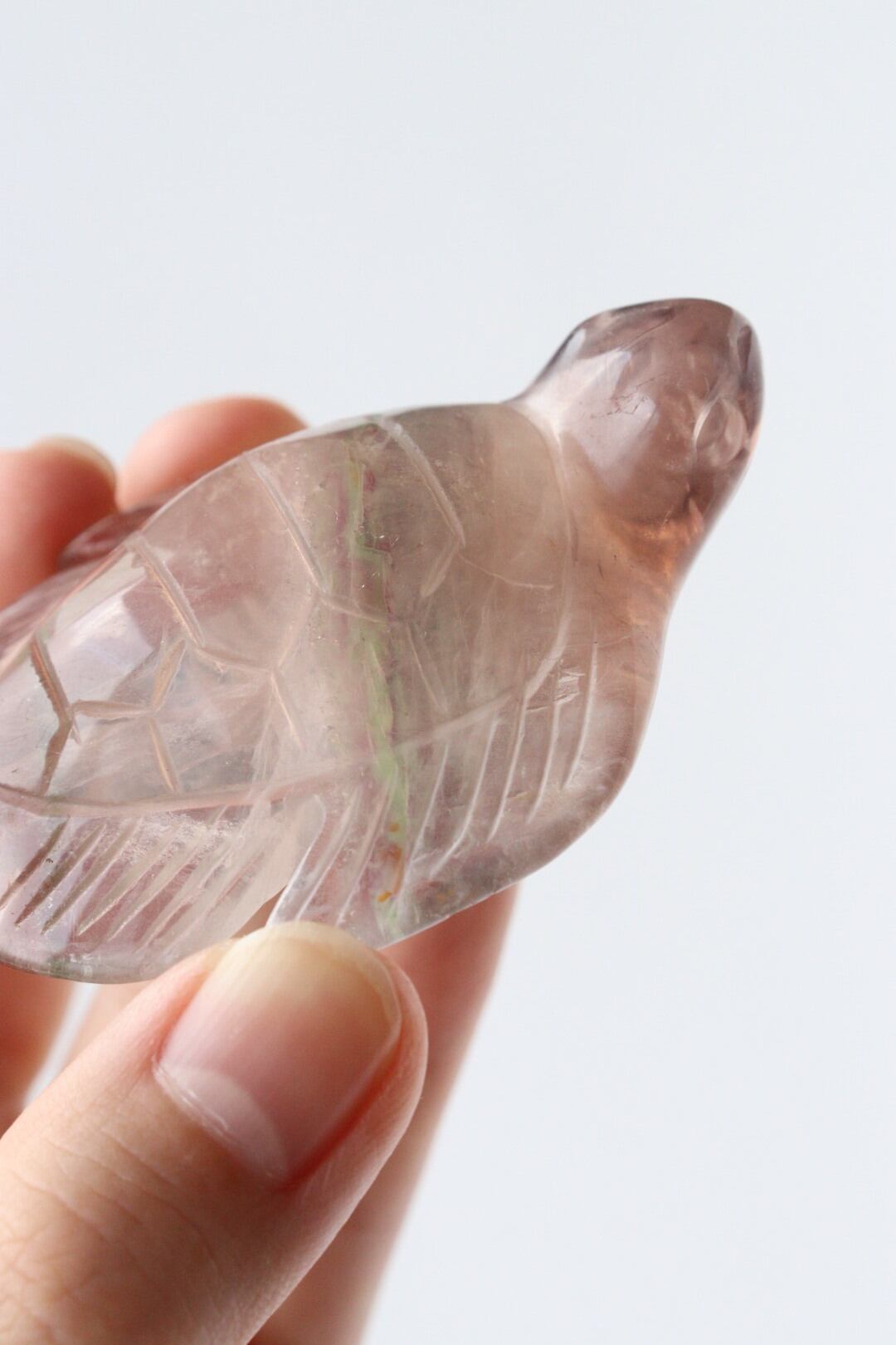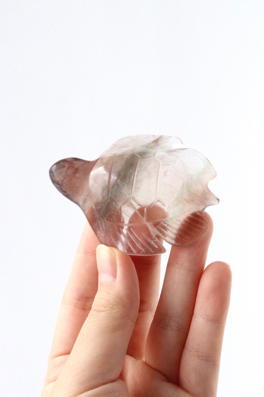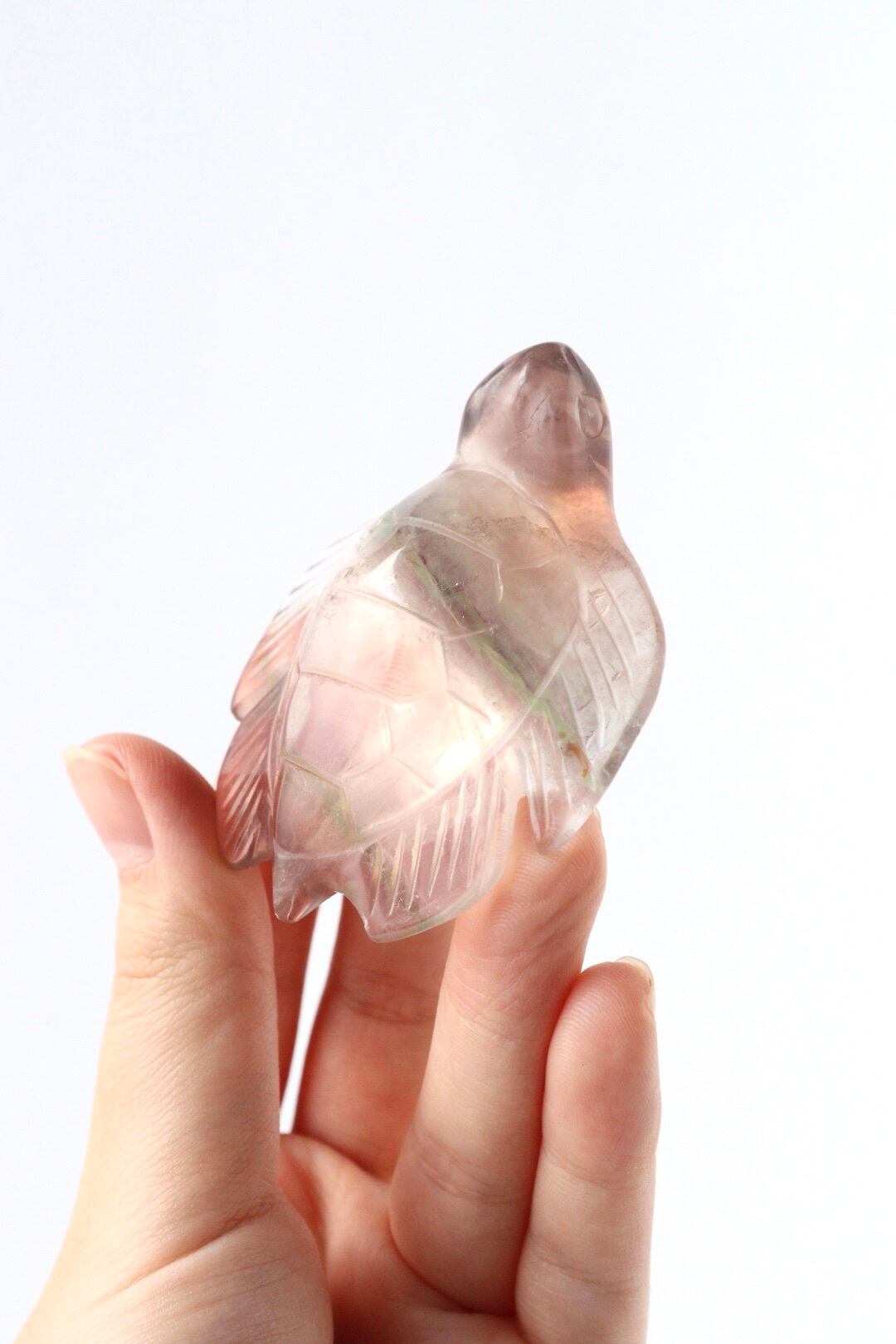 こちらは、淡いパープルカラーと、クリアでレンズのような透明感を持つクオーツ部分のコントラストが魅力のウミガメ。