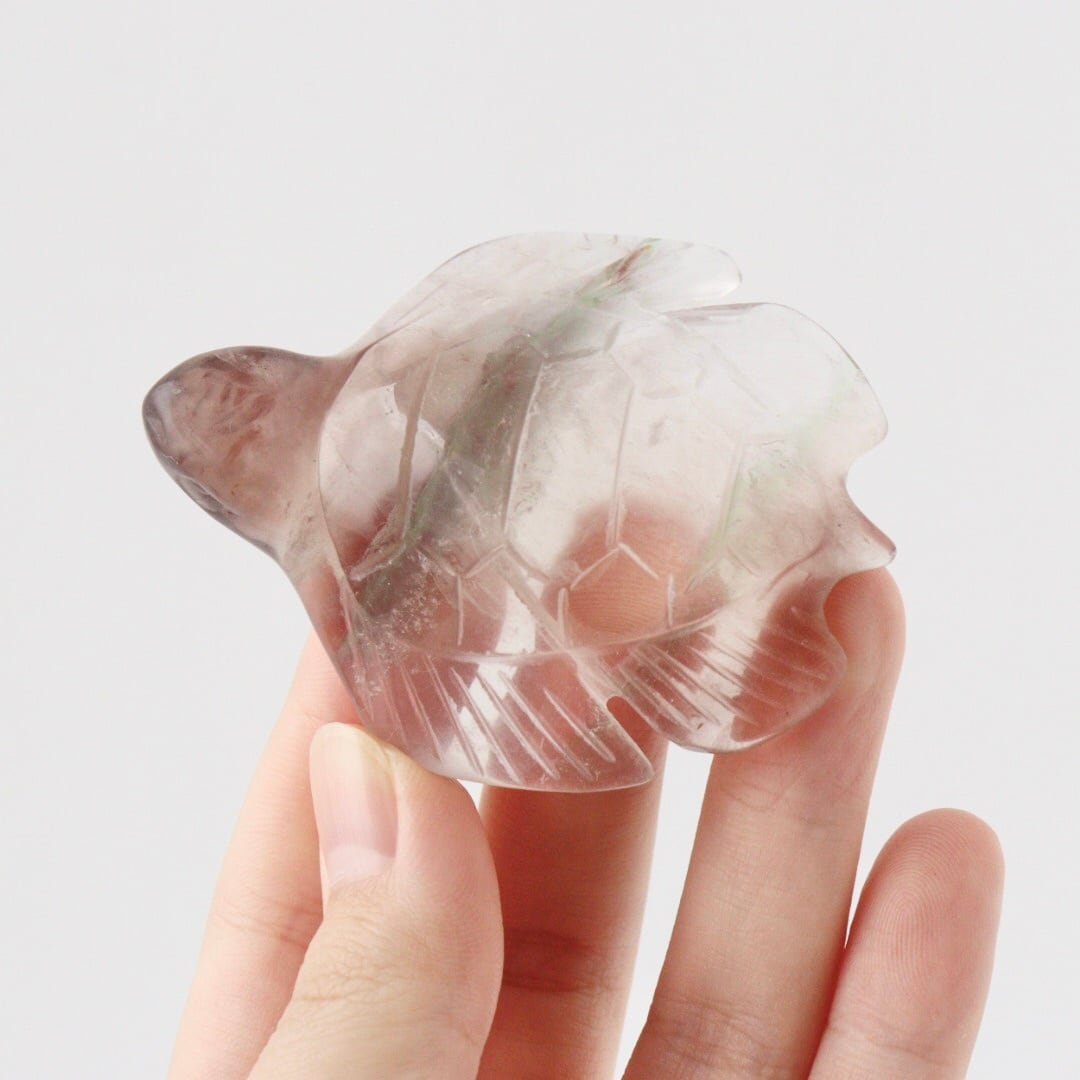 小さめのサイズ感ながら、甲羅や手足のラインが丁寧に表現されており、光を透かすと内部の構造がきらりと浮かび上がる美しいカービングになっています。