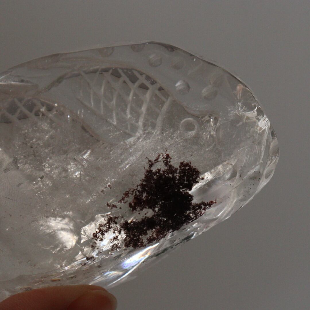 透明度の高いクリアな世界の中に、植物のような模様がそっと広がるガーデンクォーツのさかな。