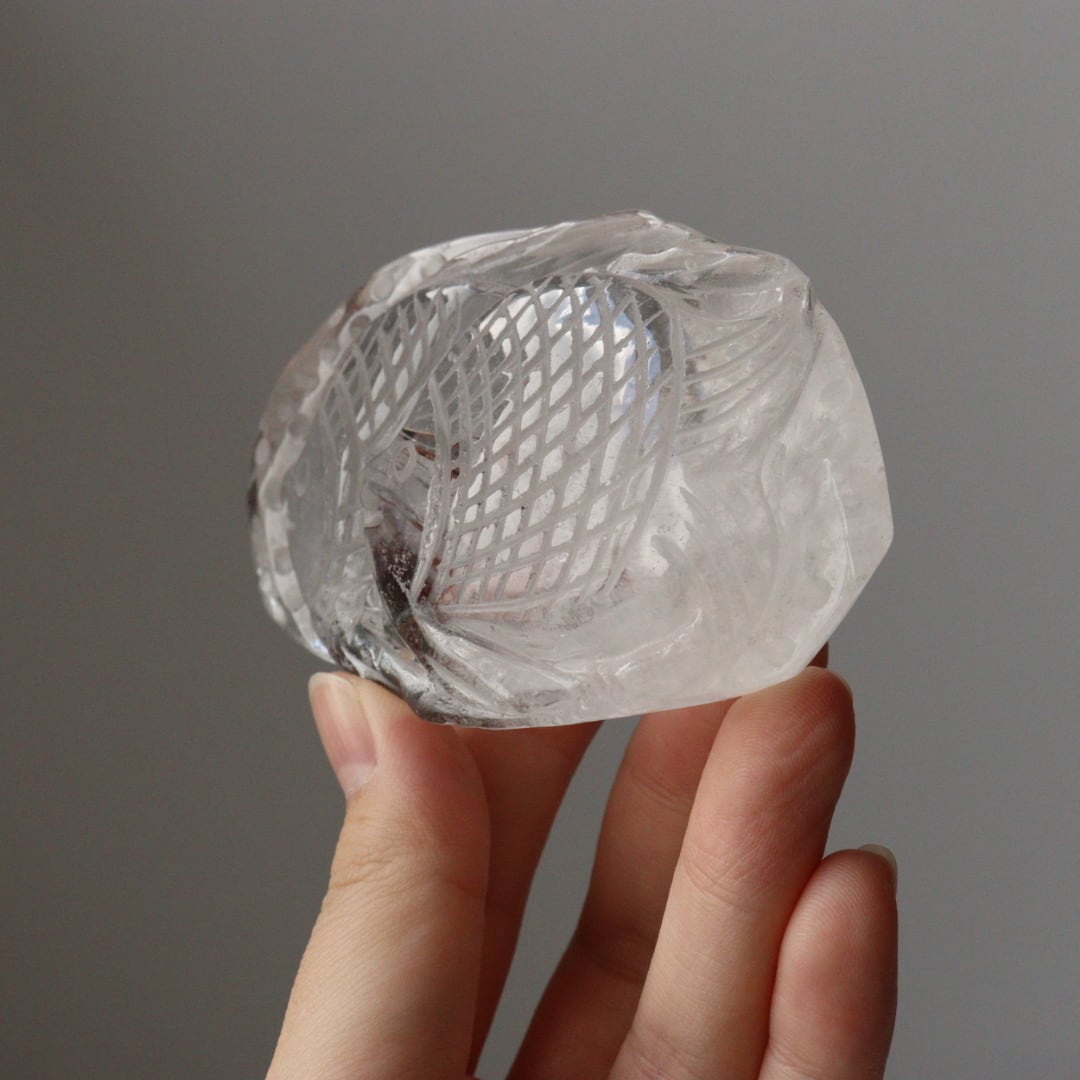 透明感とインクルージョン、彫刻が調和した、大変美しいカービングです。