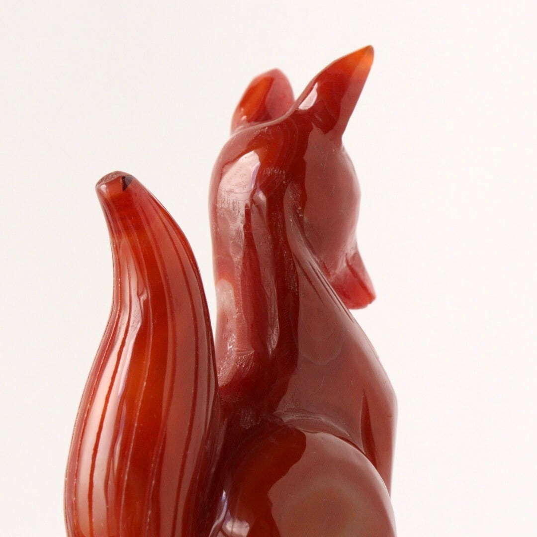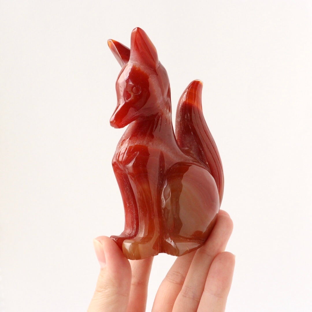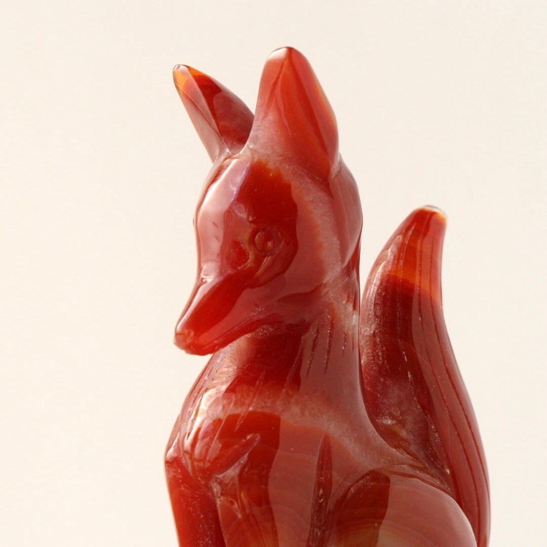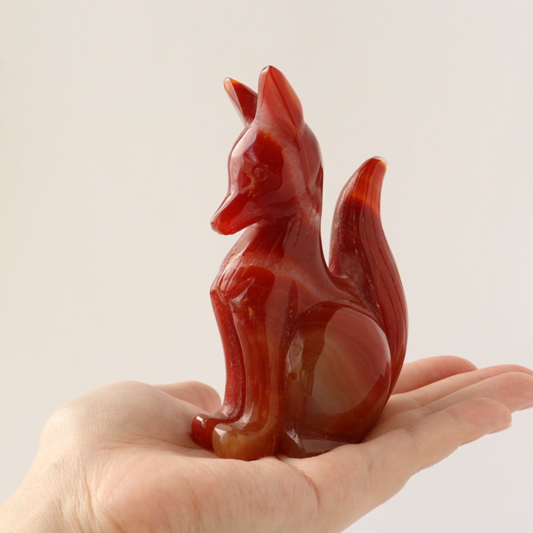 燃えるような赤の縞模様が印象的な、大きなレッドアゲートのきつね。