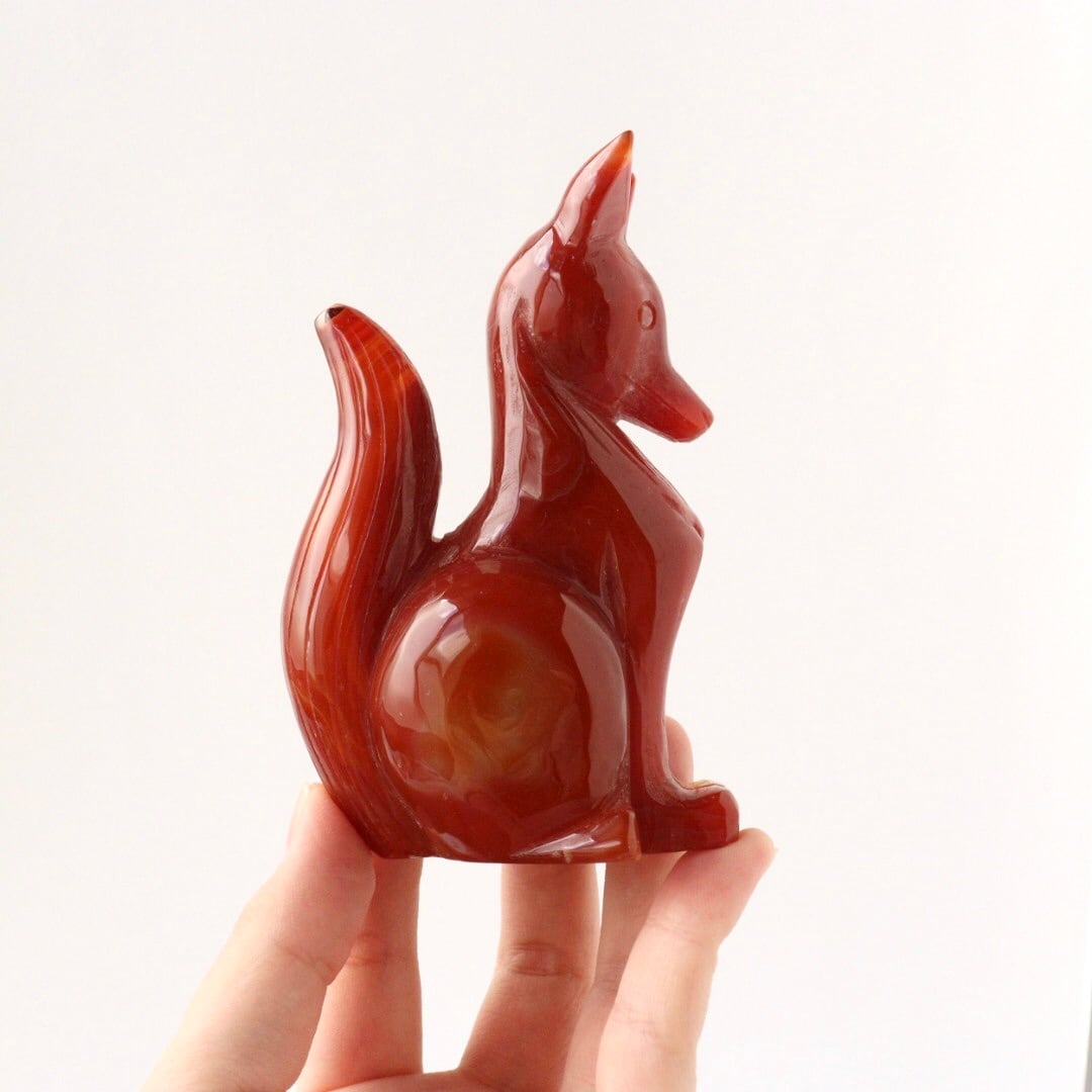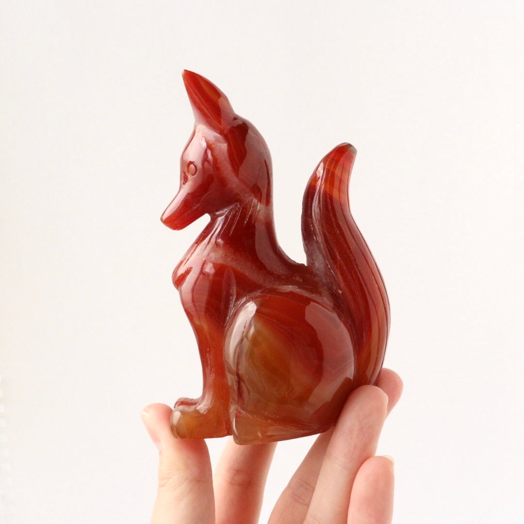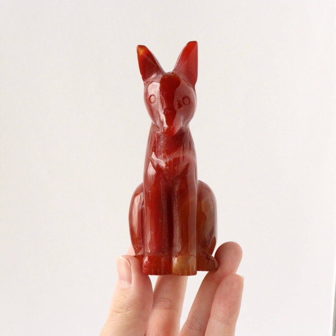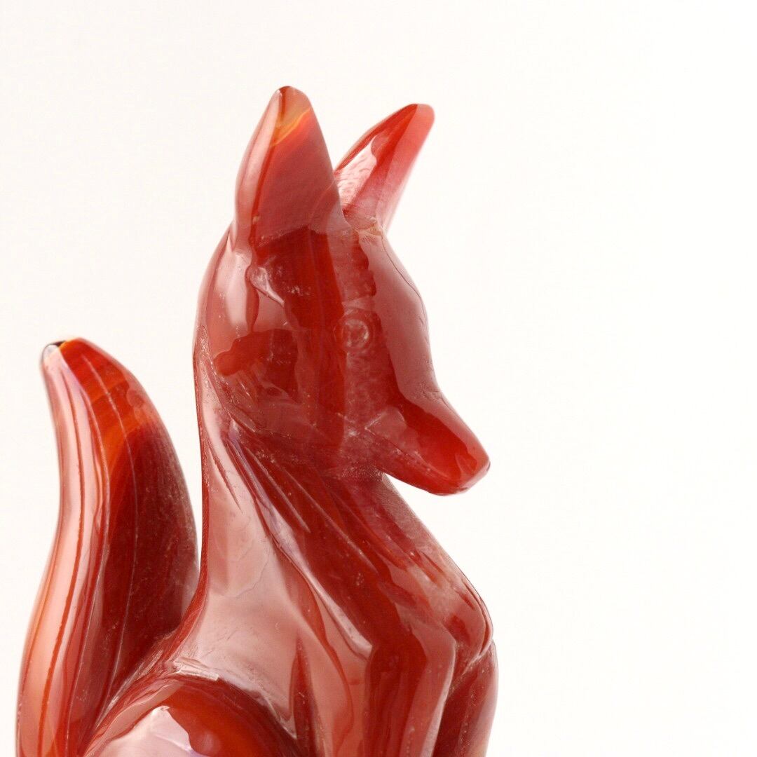 燃えるような赤の縞模様が印象的な、大きなレッドアゲートのきつね。