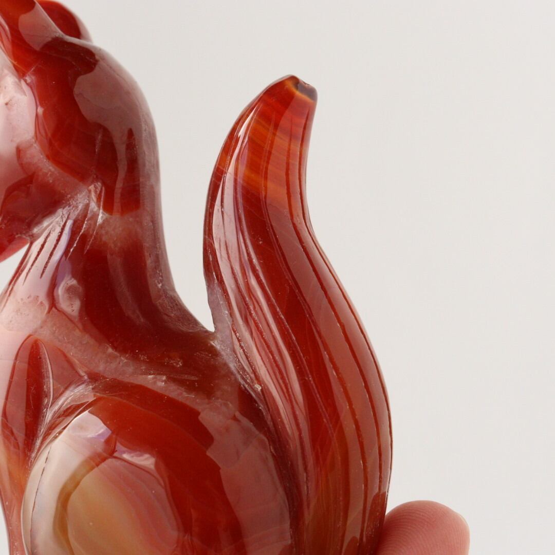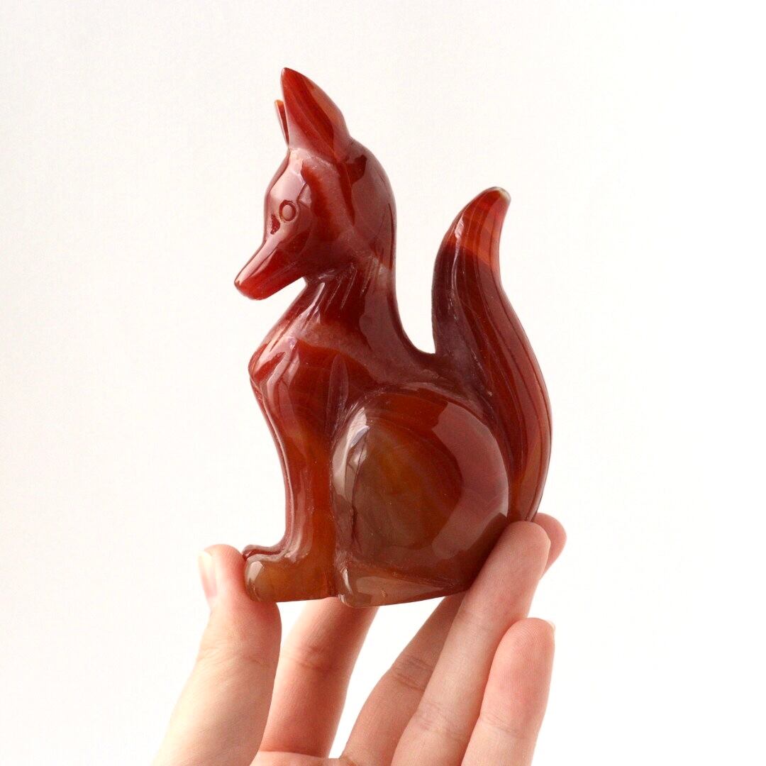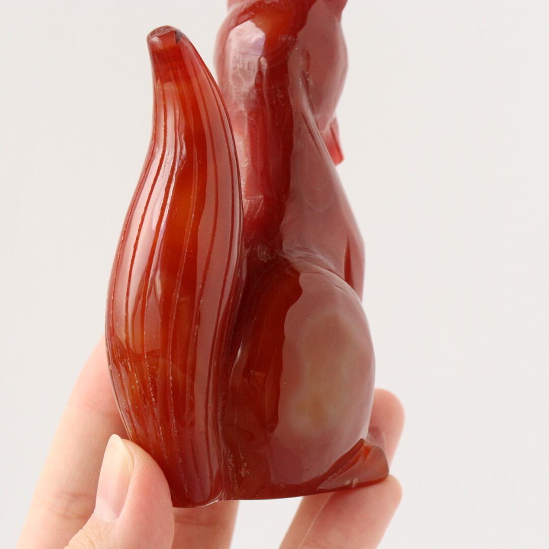 こちらは、深紅の縞模様が美しく浮かび上がるレッドアゲートの大きなきつね。