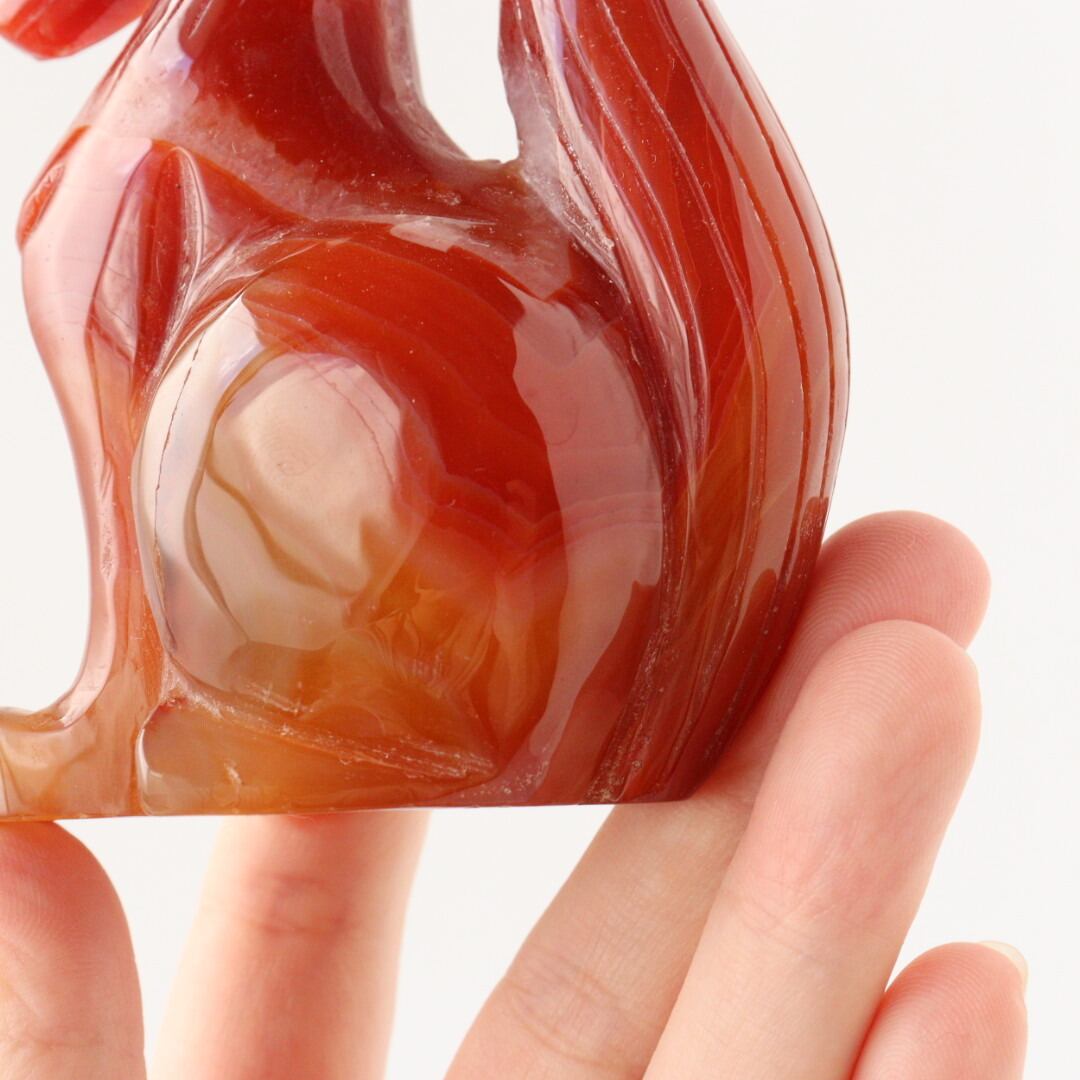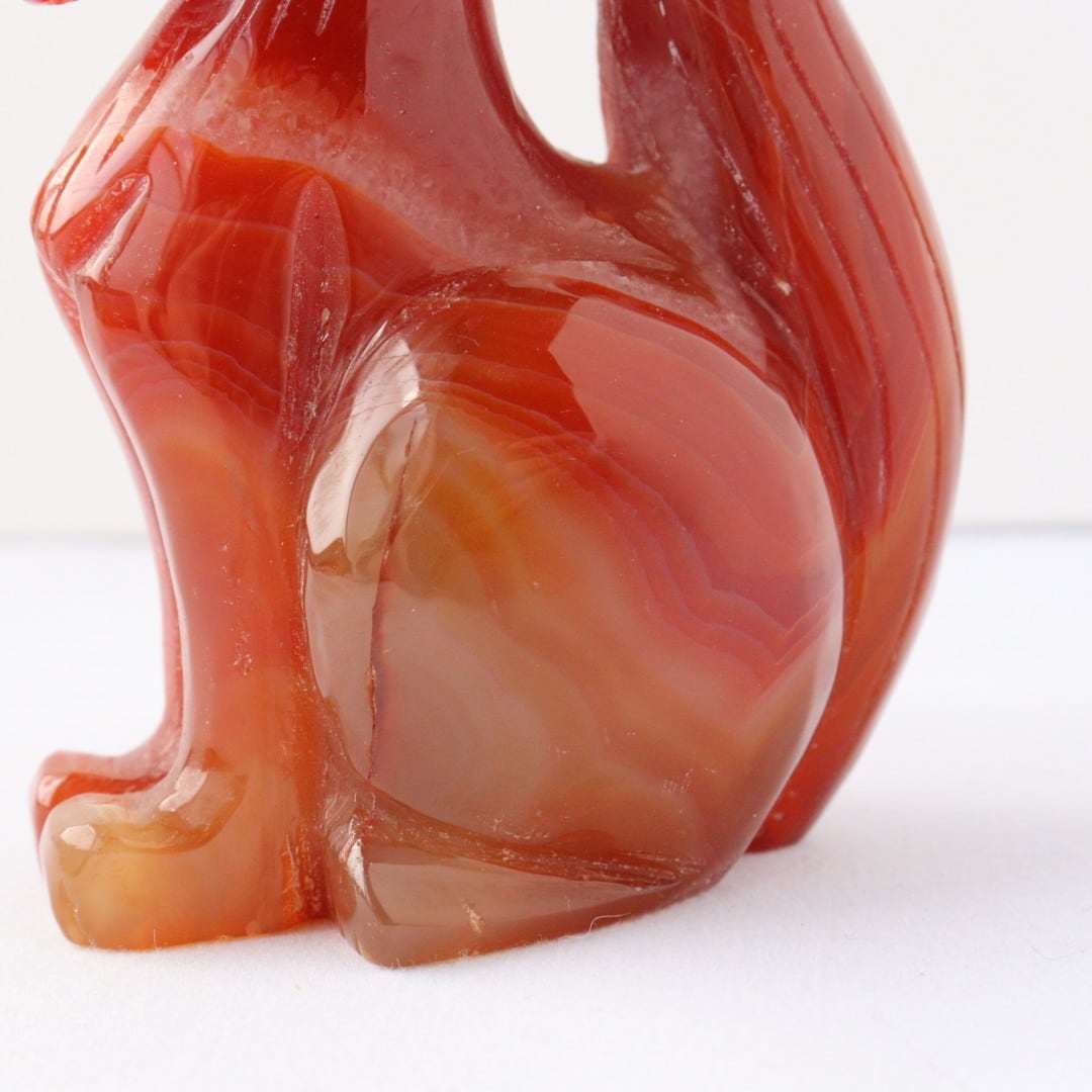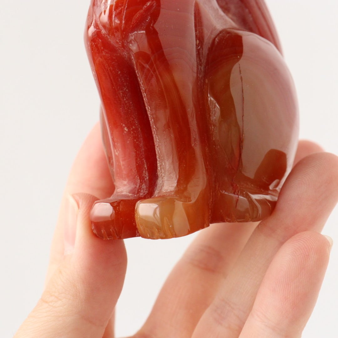こちらは、深紅の縞模様が美しく浮かび上がるレッドアゲートの大きなきつね。
