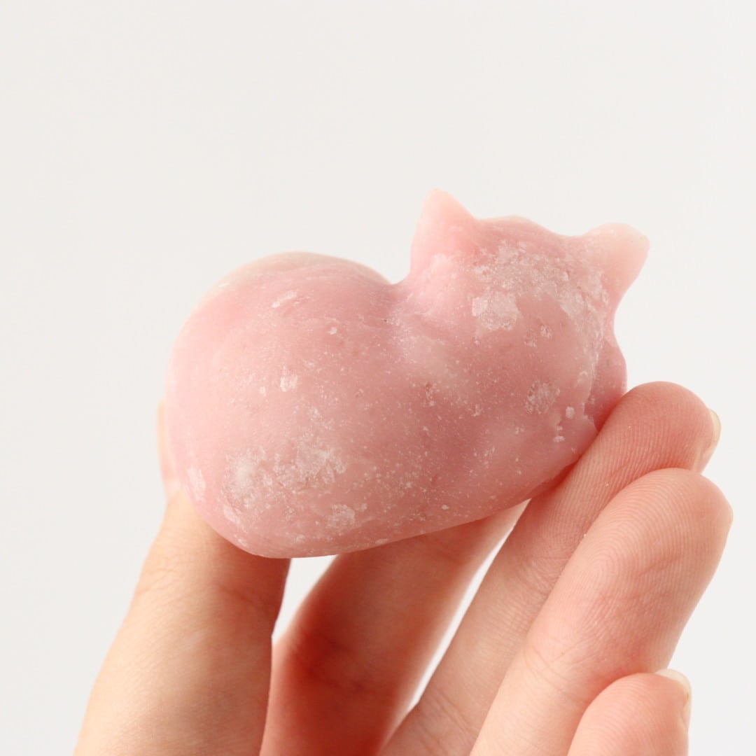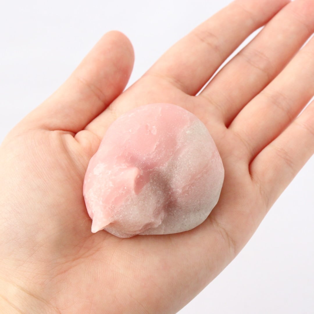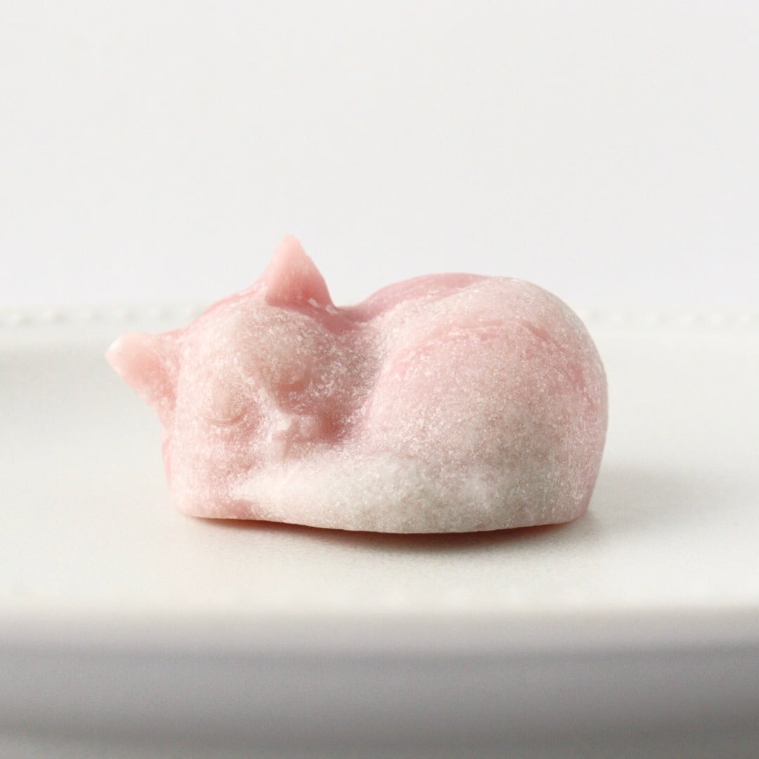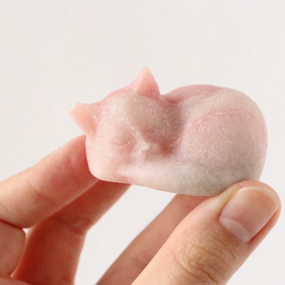 ふんわりとしたピンクとホワイトが柔らかく重なる、ピンクオパールの眠り猫。