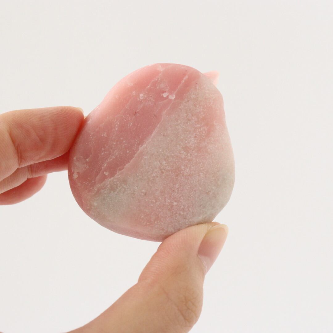 ピンクオパールは水分を含む非晶質の天然石で、マット気味のさらりとした質感と、優しい色の揺らぎが特徴。虹色の遊色のあるタイプが有名ですが、遊色をもたないコモンオパールも素朴でナチュラルな魅力があります。