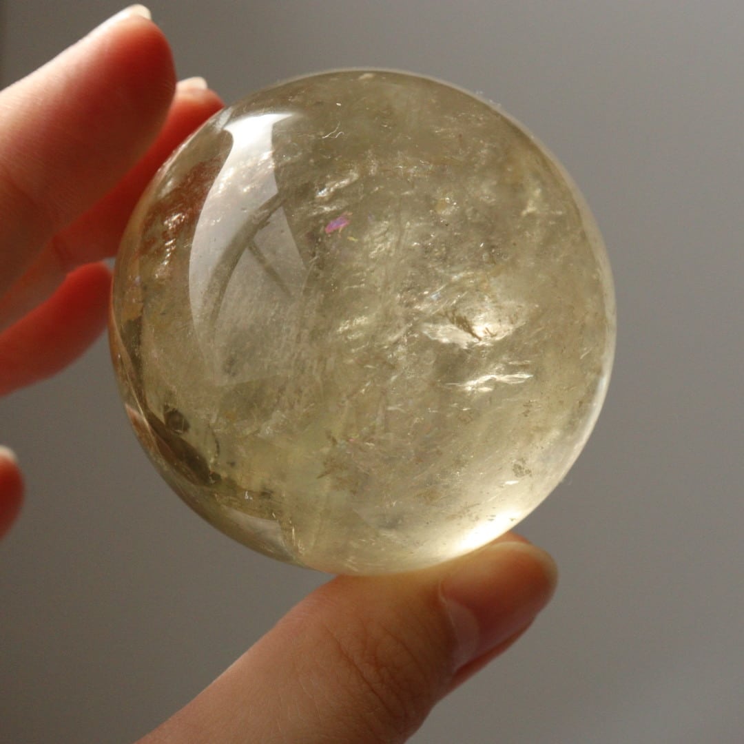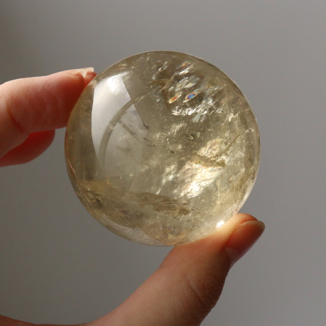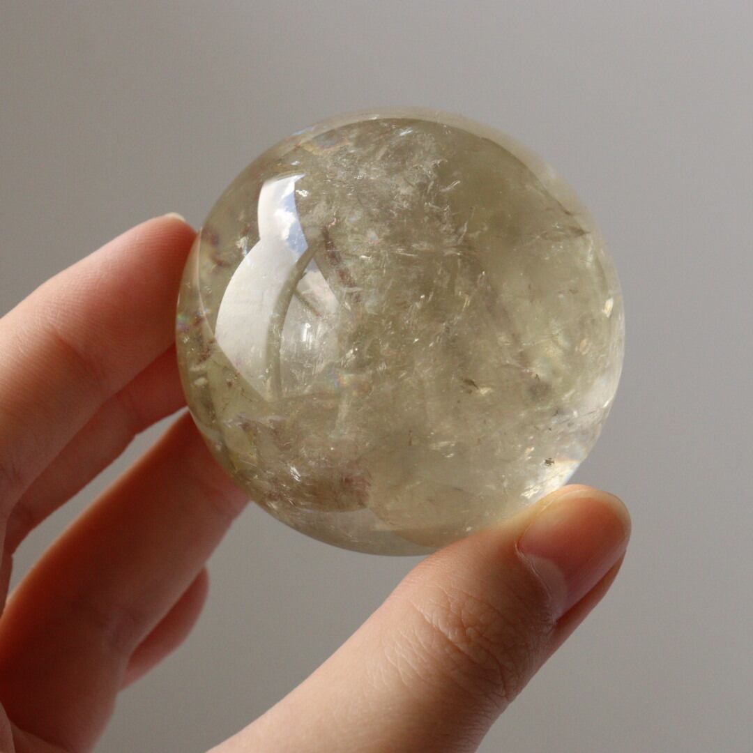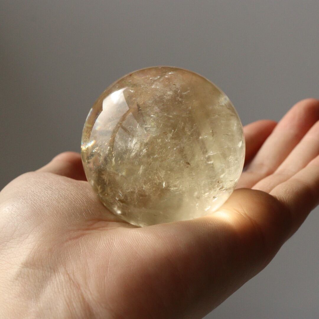 虹でいっぱいの、輝きあふれるシトリンのスフィアをお楽しみください。
