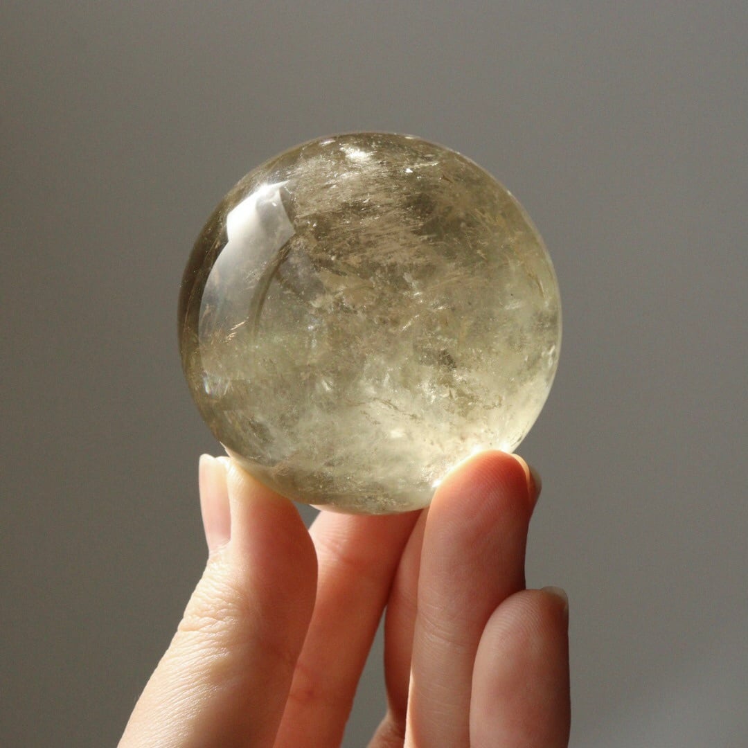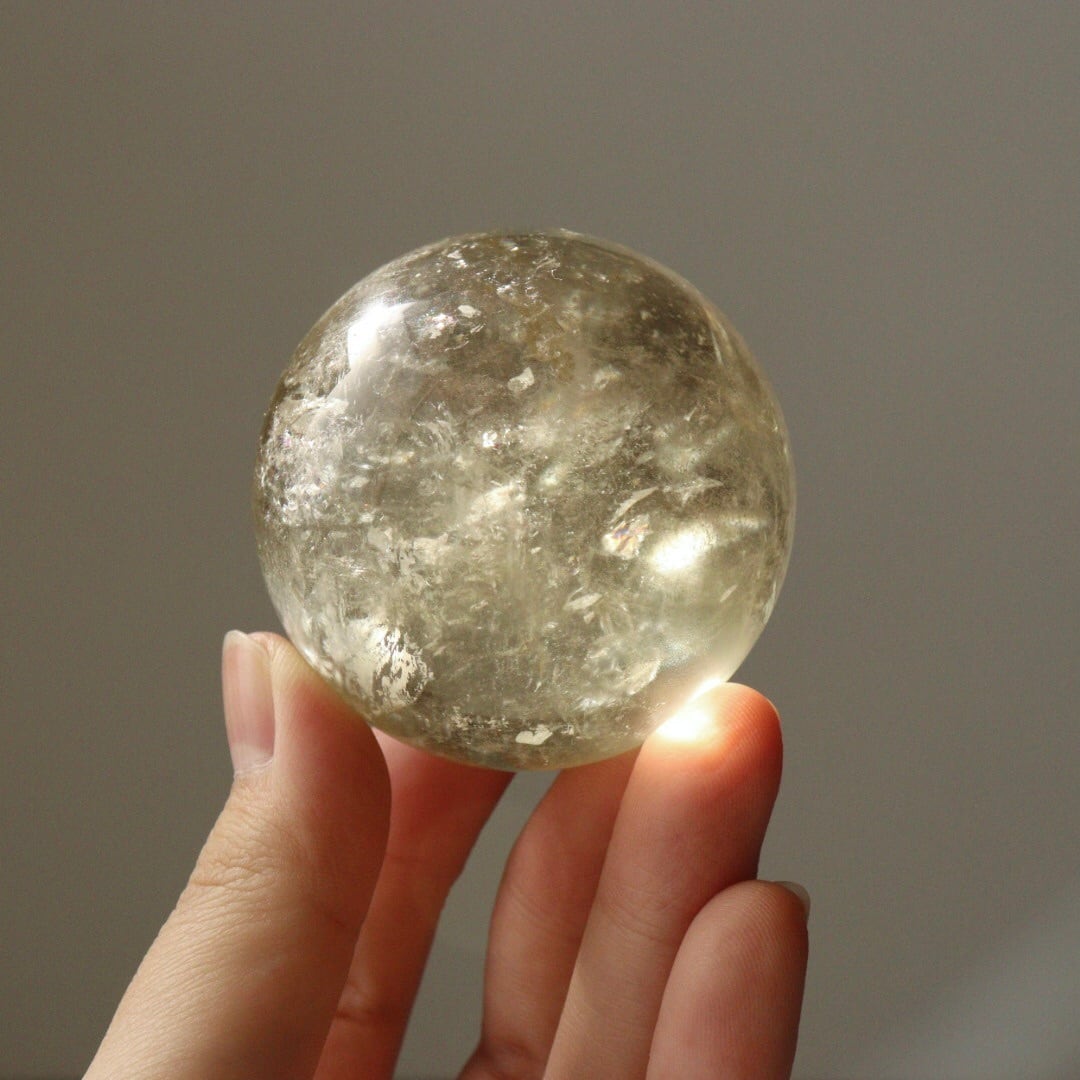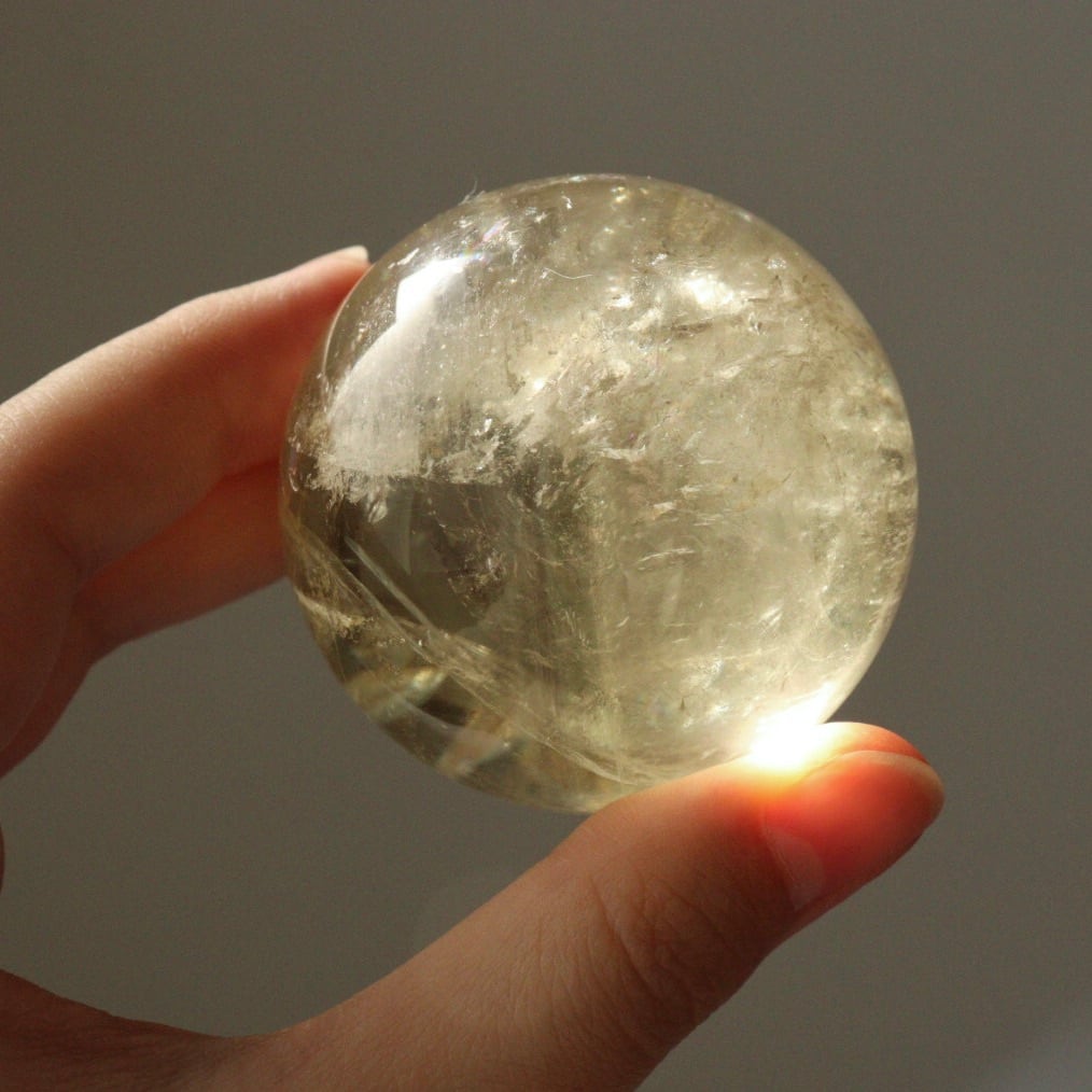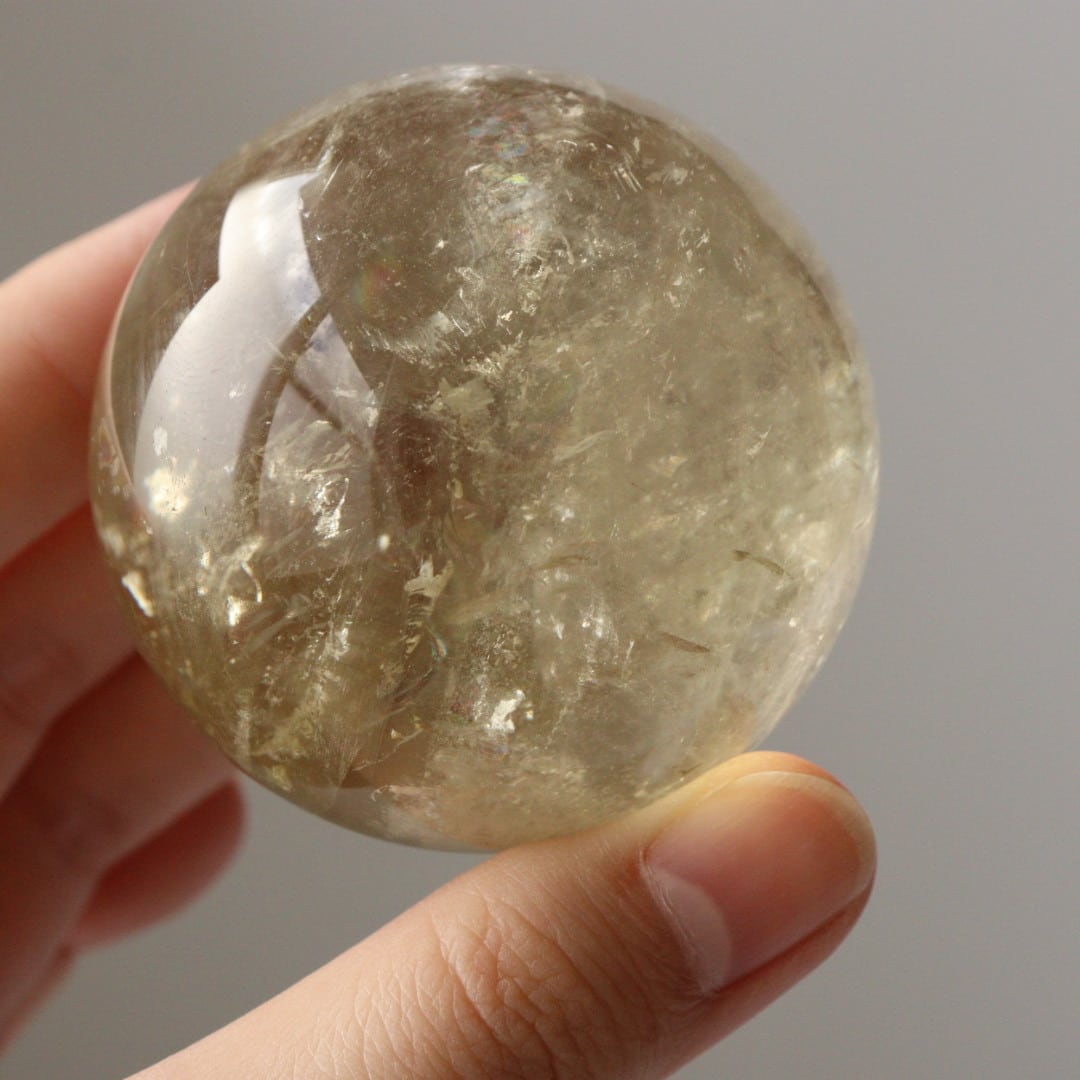 虹でいっぱいの、輝きあふれるシトリンのスフィアをお楽しみください。