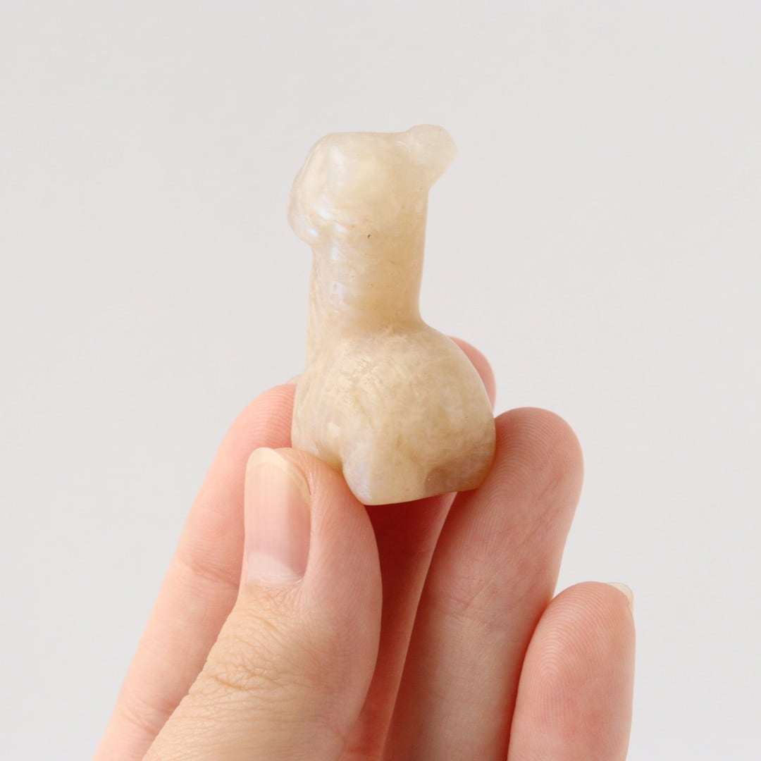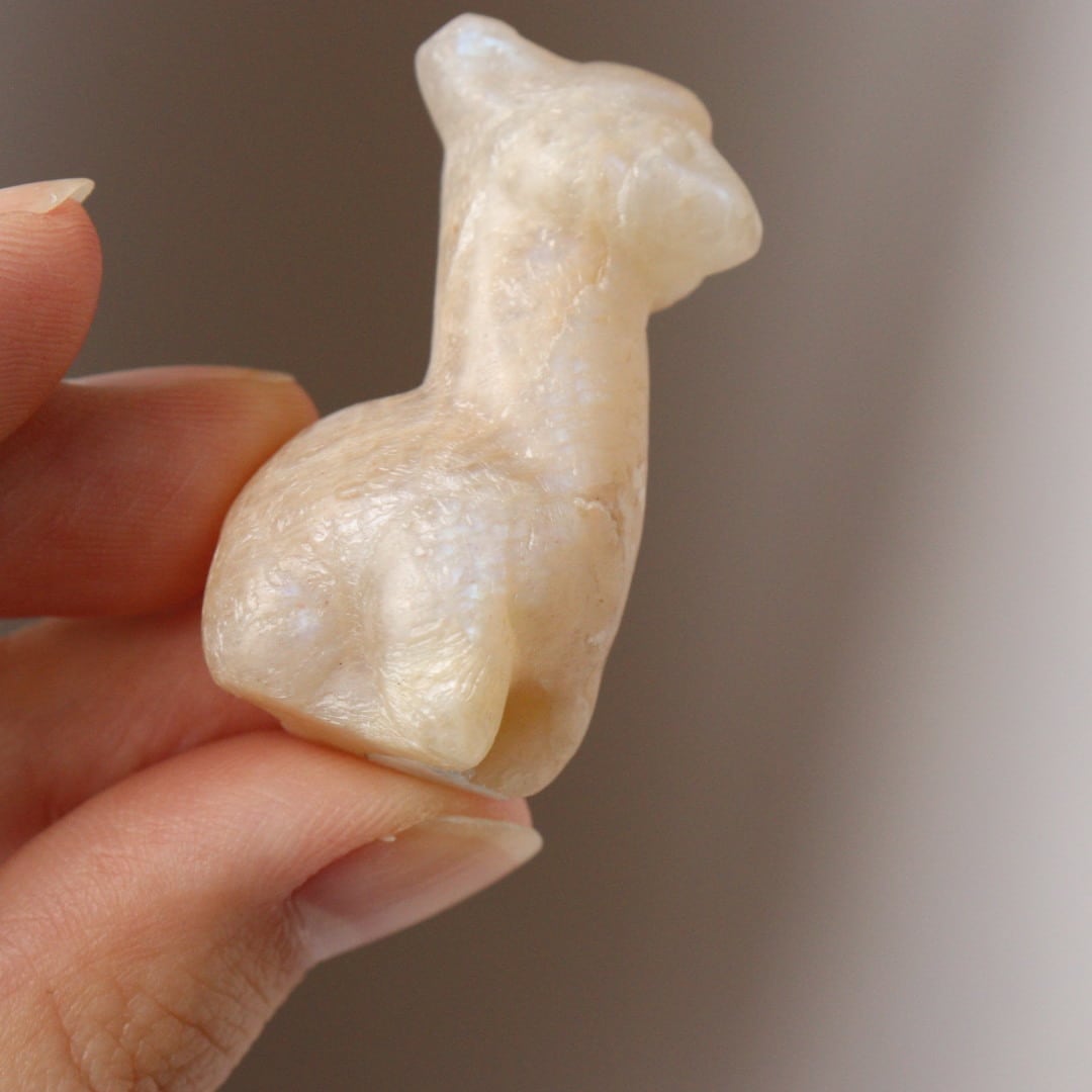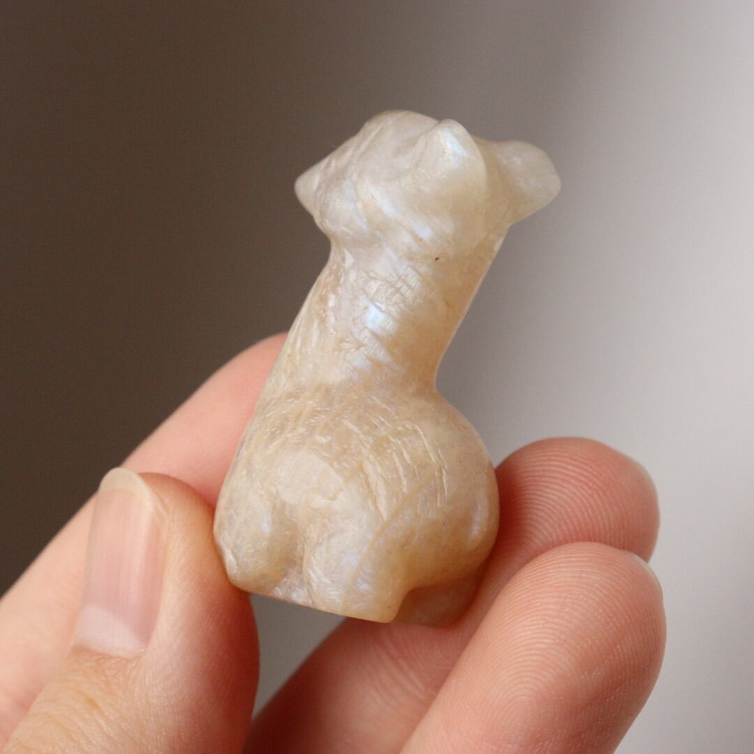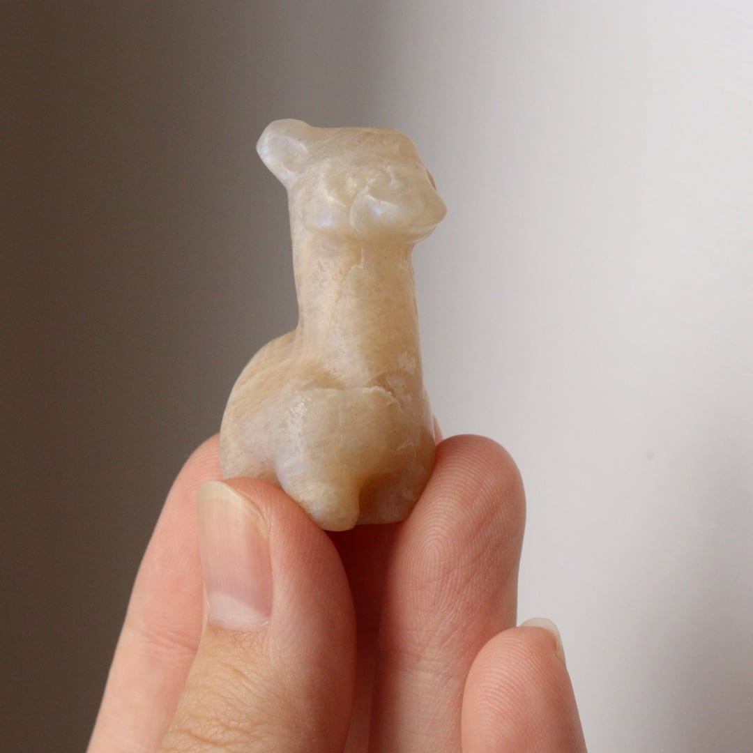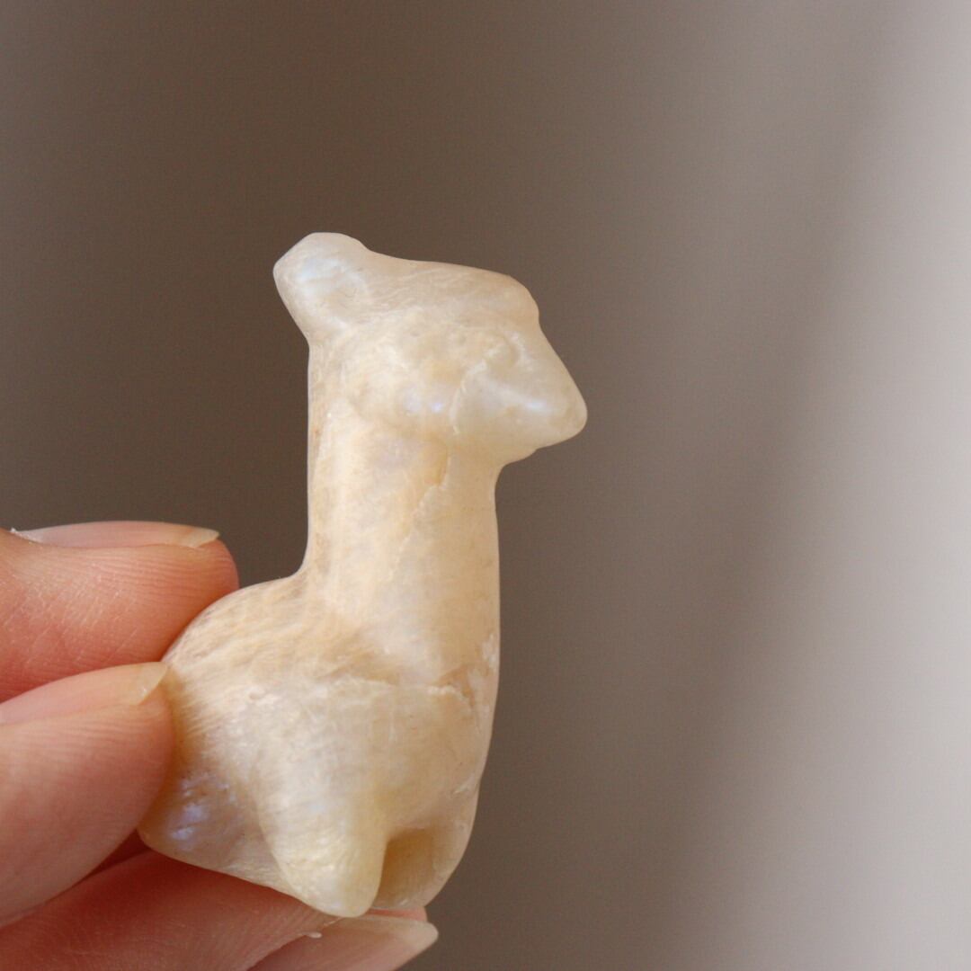 こちらは、小さなアルパカの姿に磨かれた、ホワイトムーンストーン。