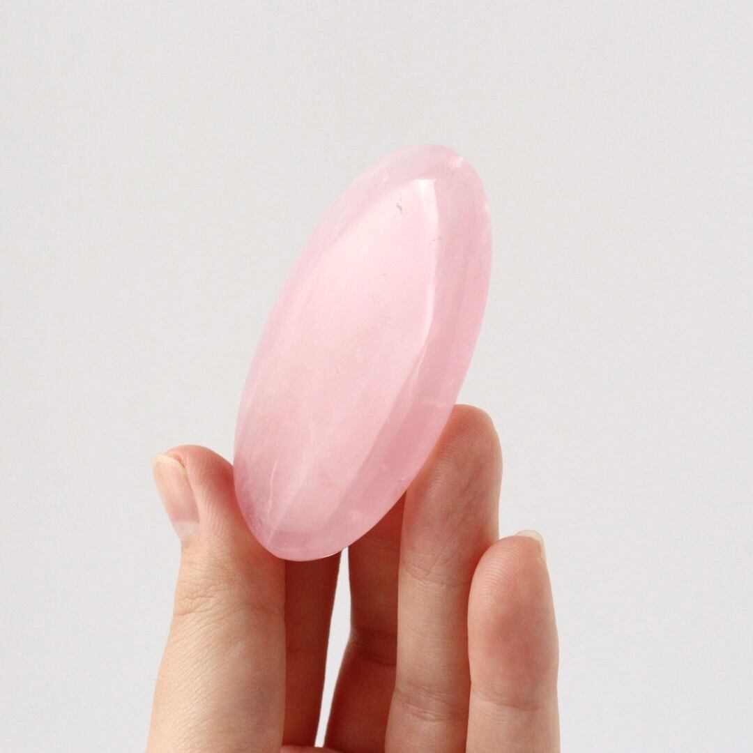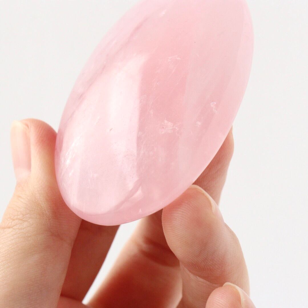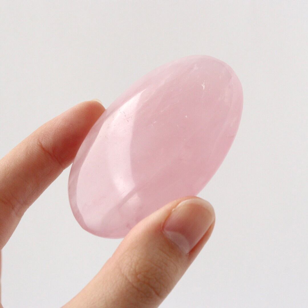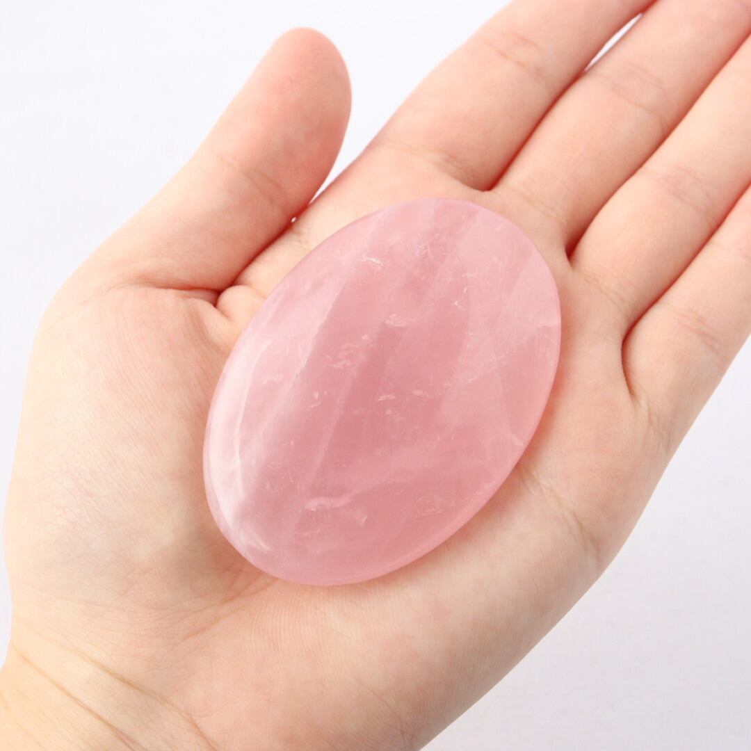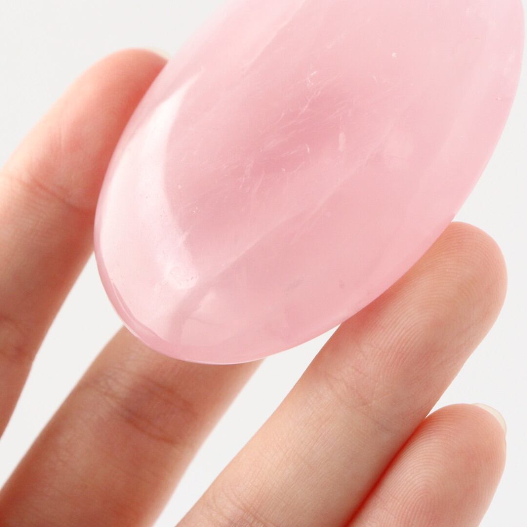 明るく華やかなピンクカラーが心をときめかせる、ローズクォーツの握り石。